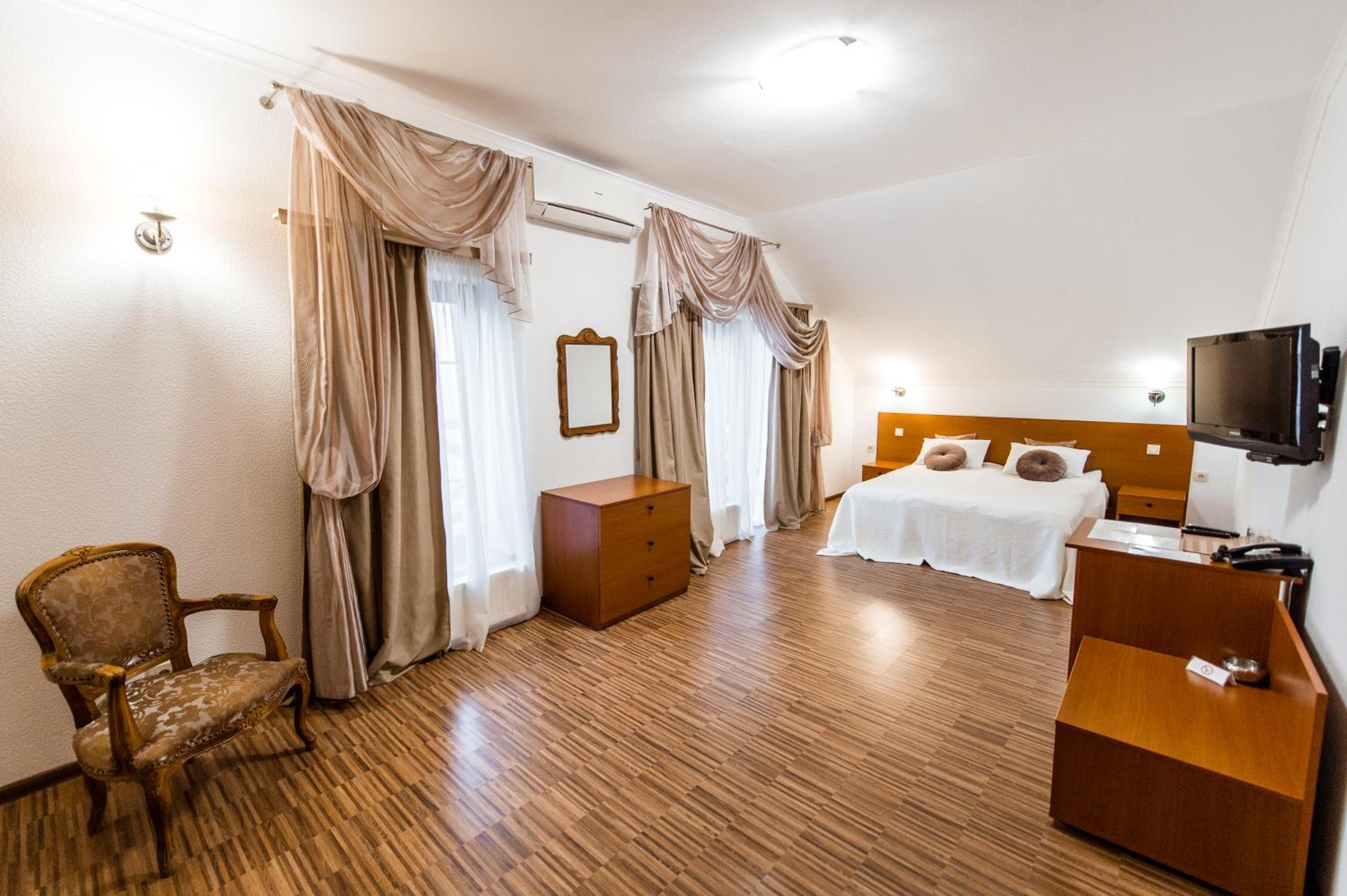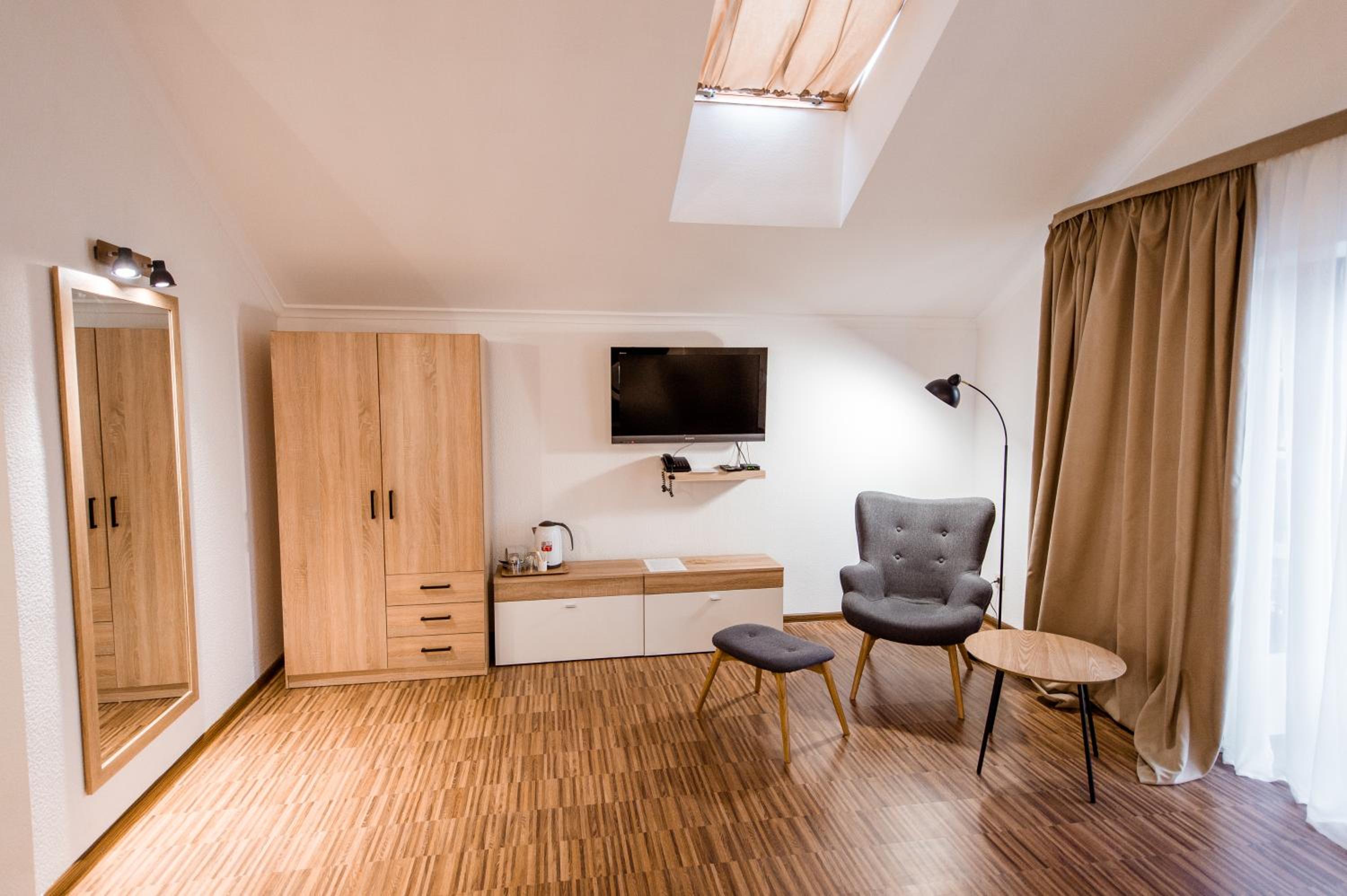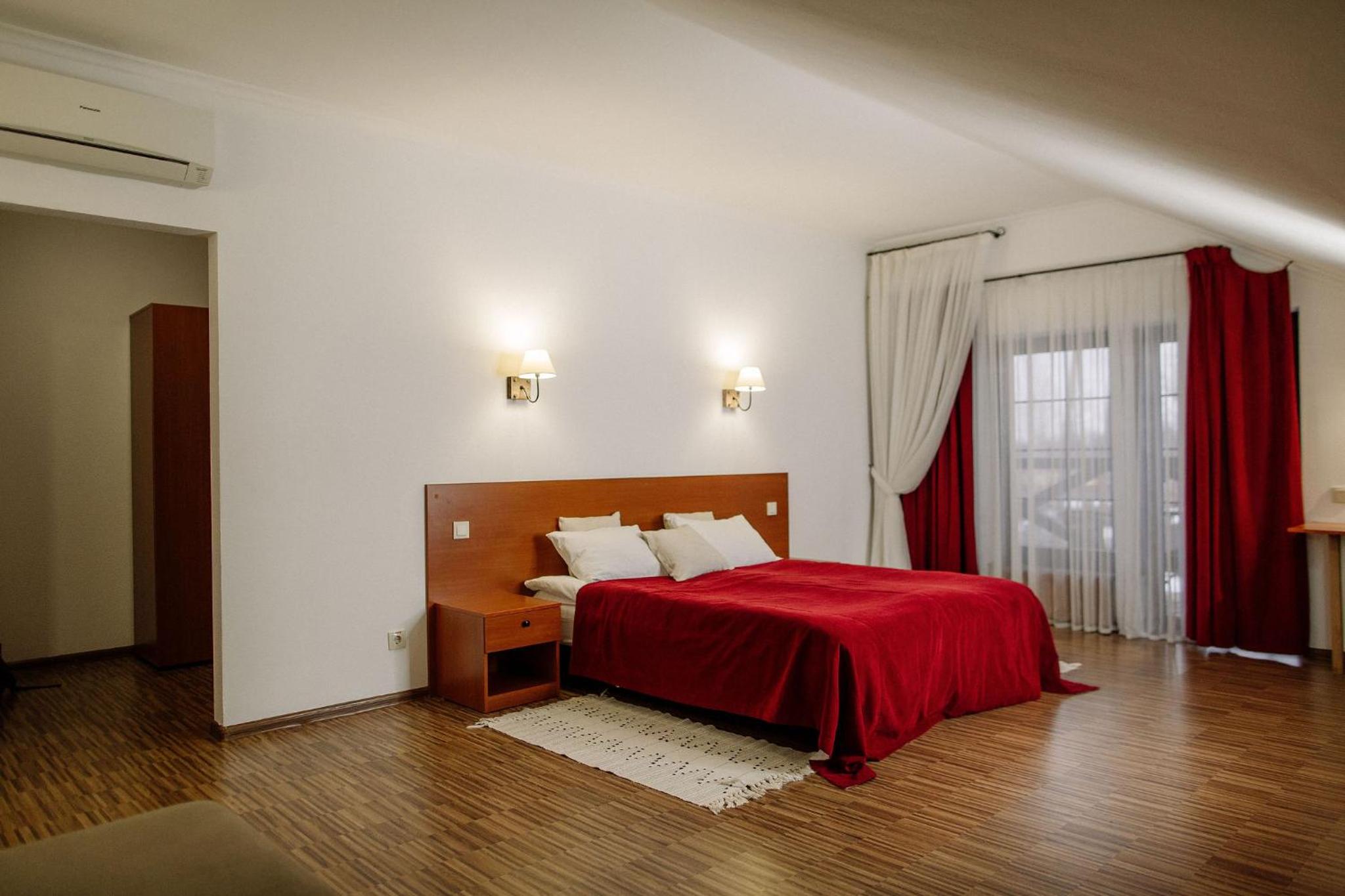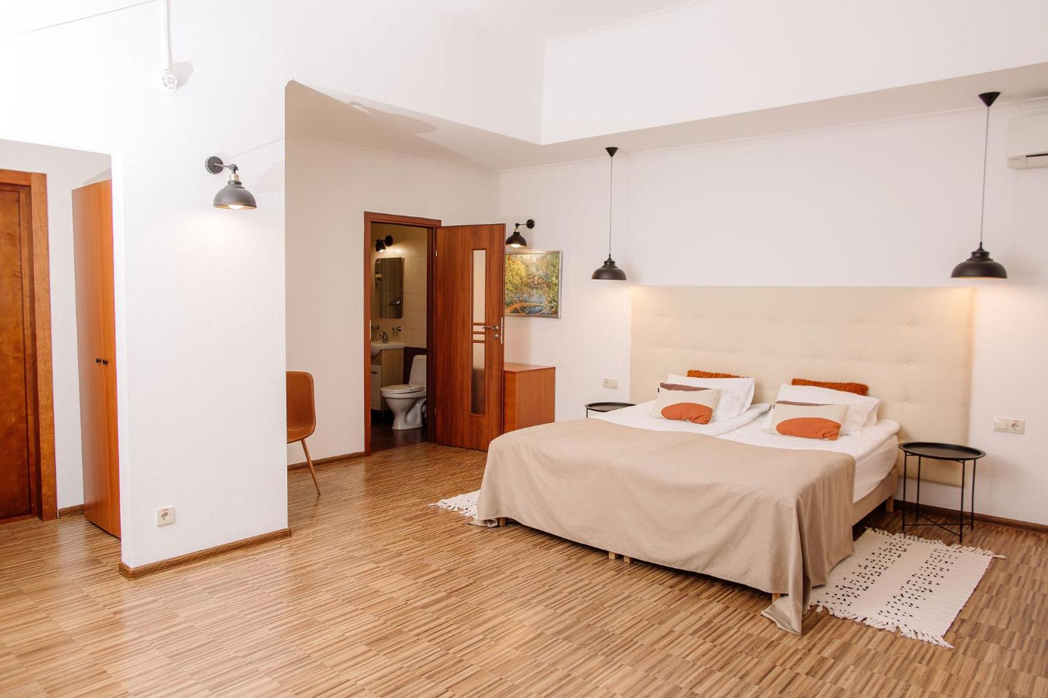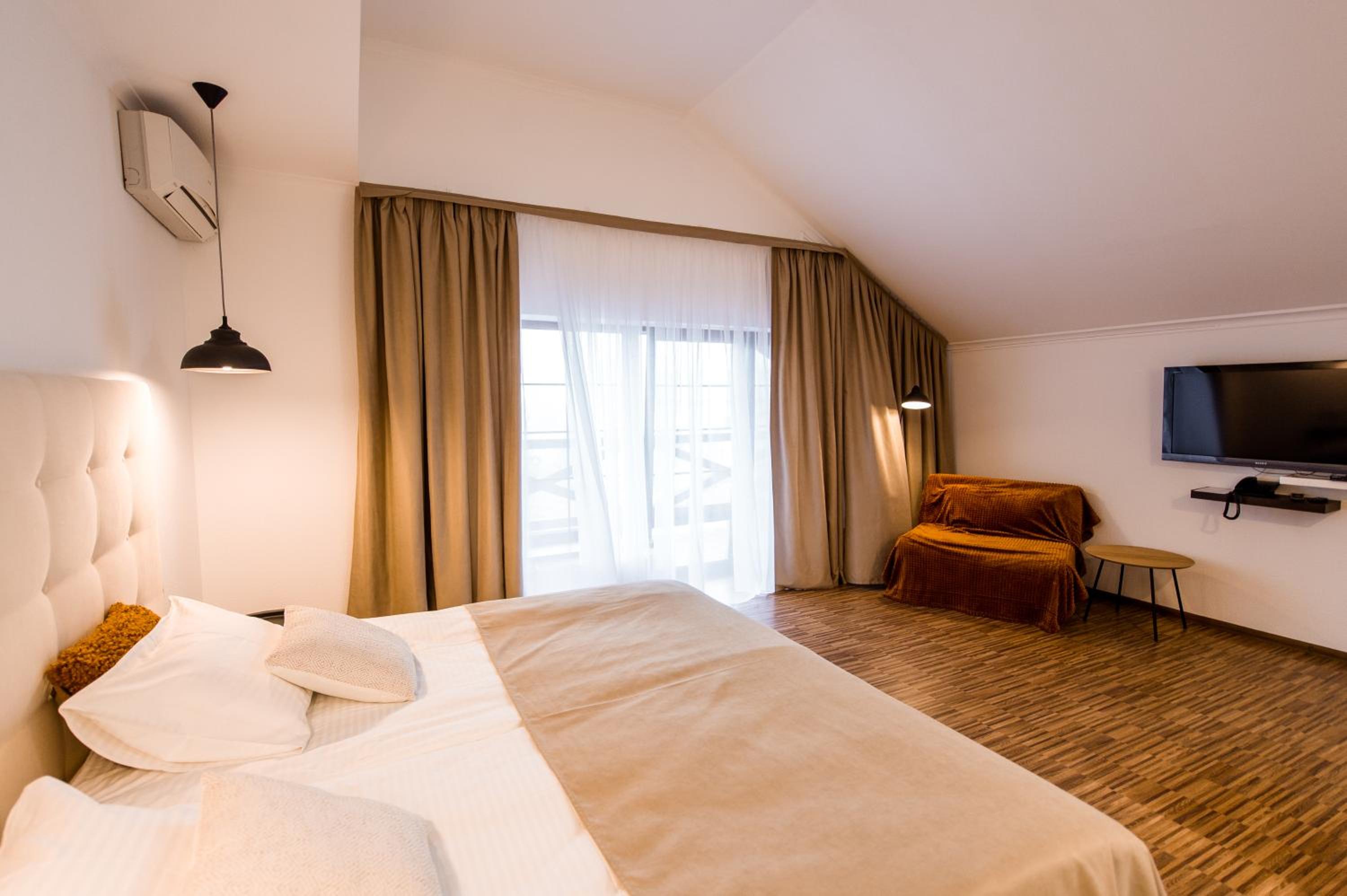 Дуже гарний отель. Все зручно, комфортно і продумано! Номер в дійсності, завдяки розташуванню, здається більший ніж на фото. На другому поверсі величезне ліжко є розетки є широка полка для особистих речей. Додатково брали мангал, дрова були сухі та колоті з розжигом та усім необхідним для приготування м'яса. Також на території є баня, доволі вмістка підійде навіть для великої компанії. Територія готелю прибрана, доглянута, всі дорожки чисті від снігу! Персонал комплексу привітній і йде на зустріч своїм клієнтам! Гарне місце, гарний відпочинок. Дуже рекомендую!!!