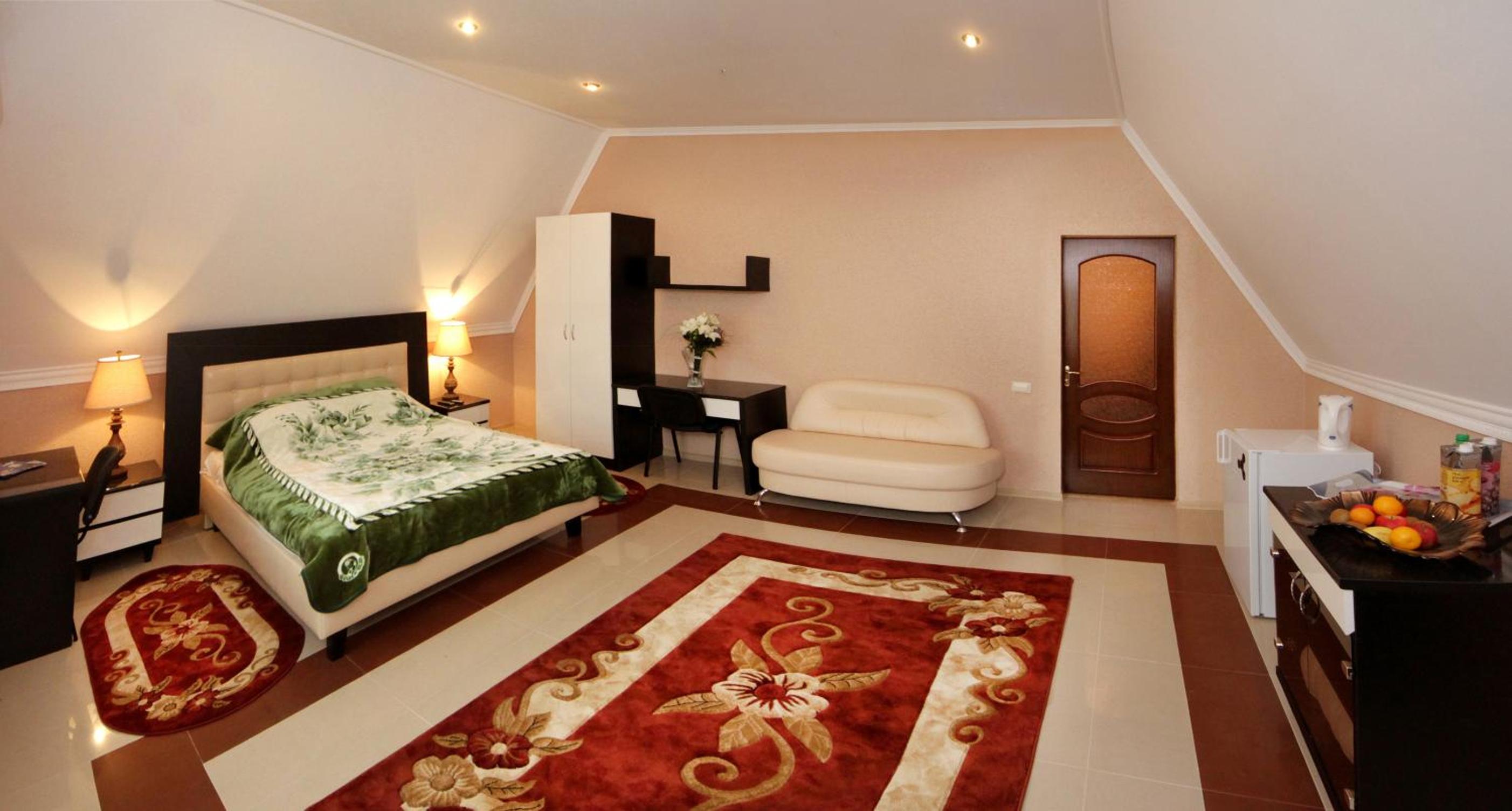 Luxurious Accommodation: Experience comfort and convenience at Гранд Алексік in Truskavets. Each room is equipped with modern amenities like a flat-screen TV, a fridge, and a private bathroom.