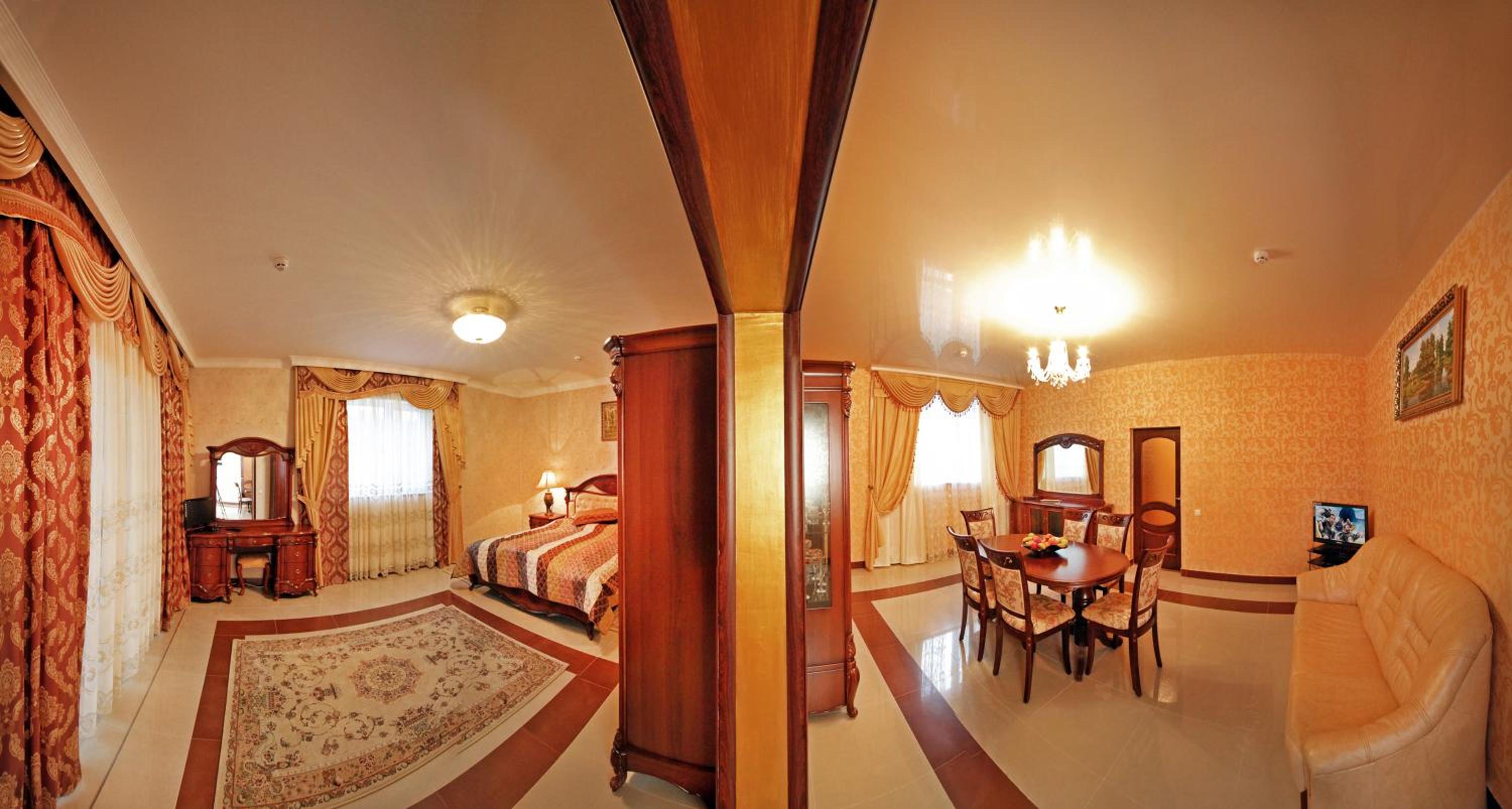 Дуже привітний та старанний персонал. Чисто, є посуд в номерах люкс. Басейн чистий та достатньо великий. Ми з чоловіком декілька днів працювали і нам дуже сподобались окремі кімнати в люксі. В фойє є кавомашина та мікрохвильовка. Хороший інтернет в корпусі Гранд. До центру пішки хвилин 15. Отель дружній до тварин. Наш песик був в захваті від привітального печива.