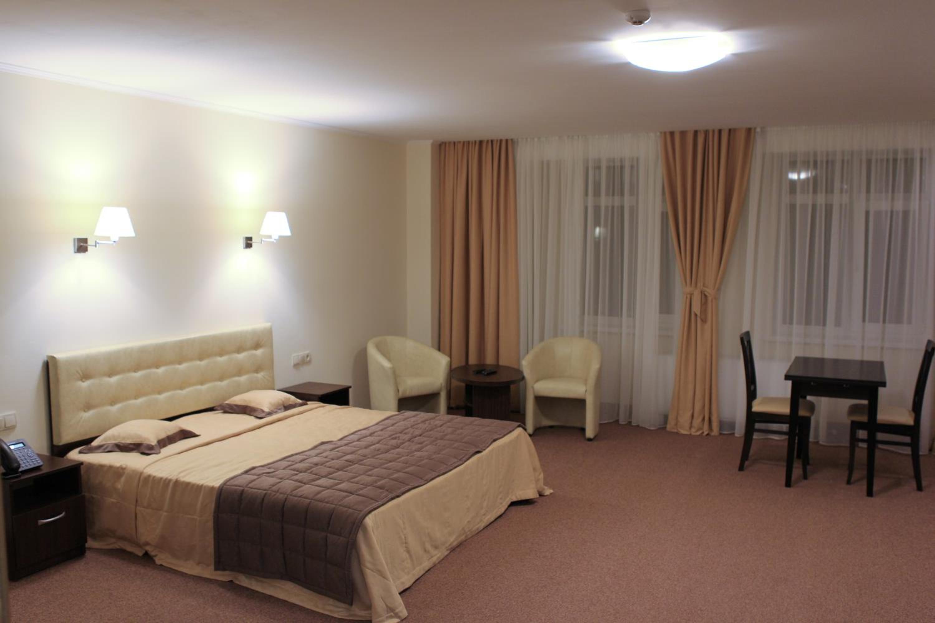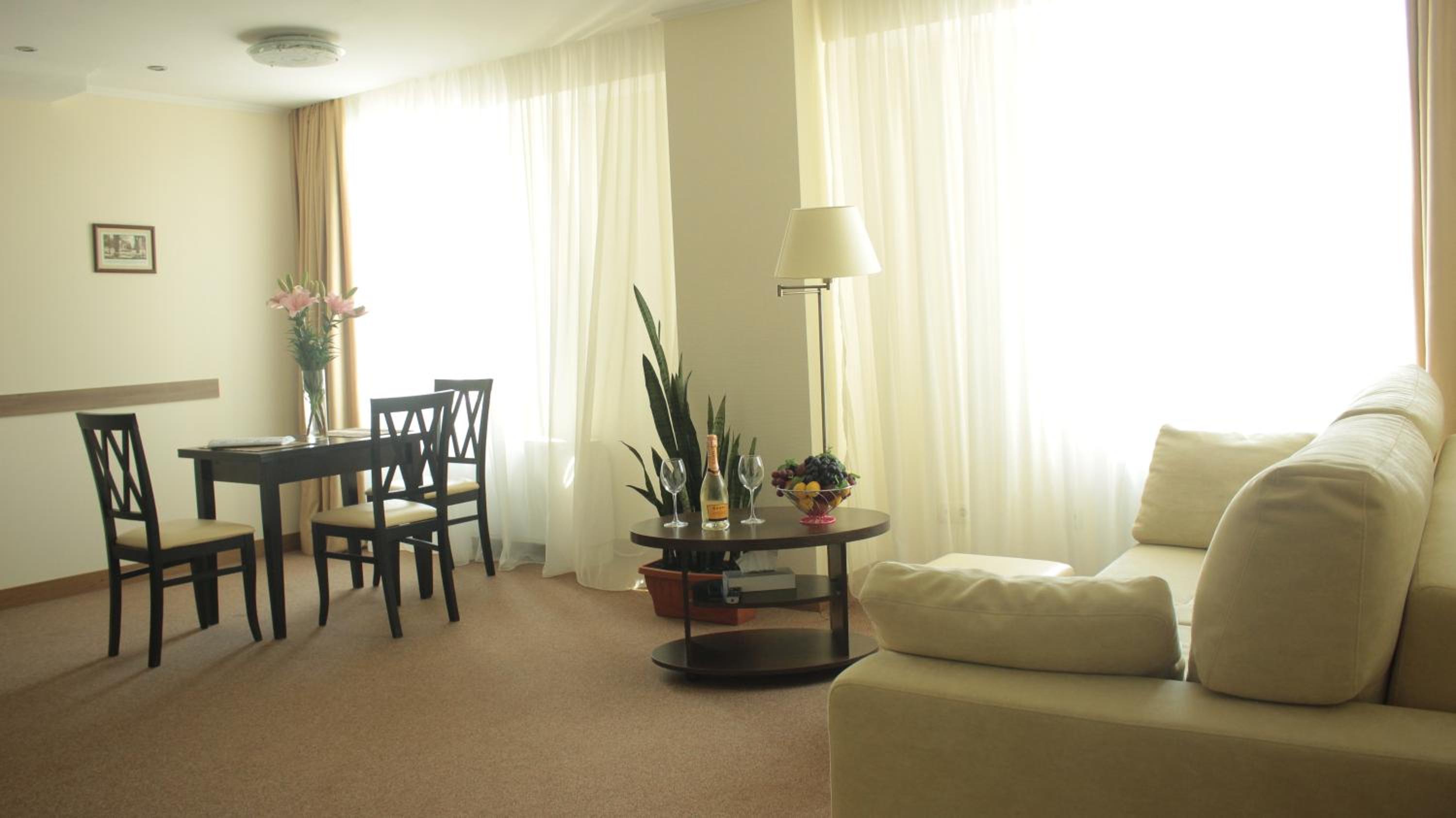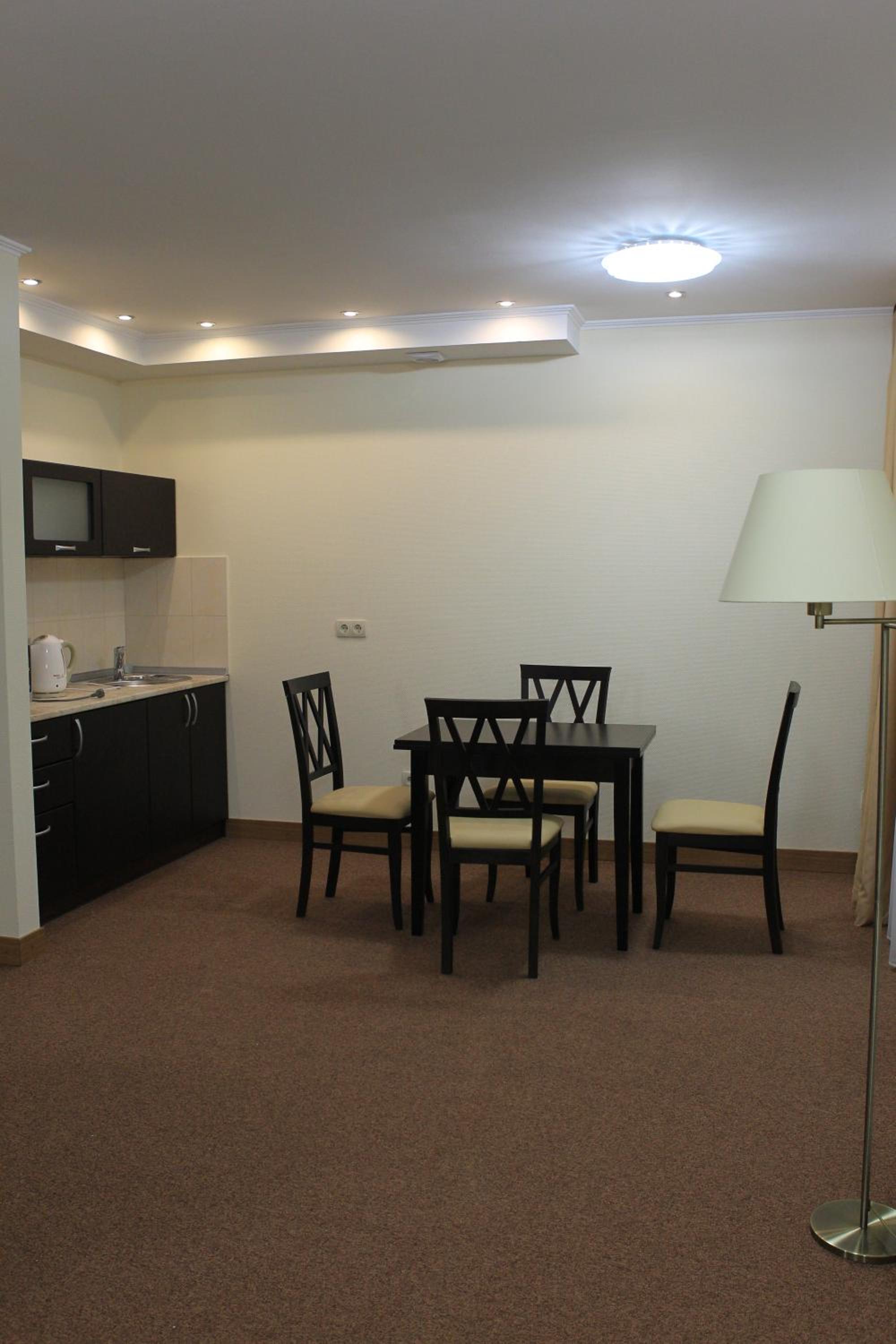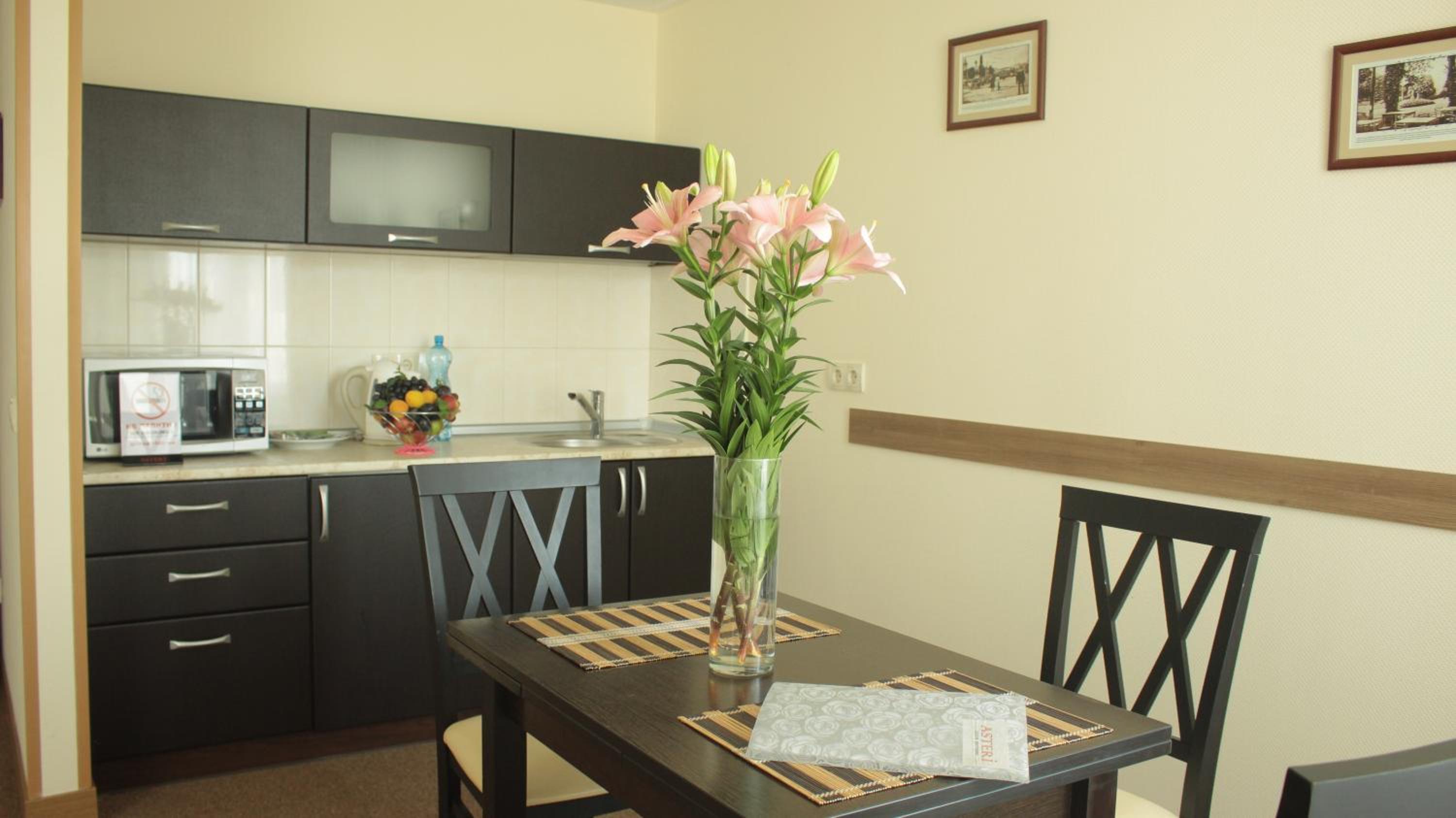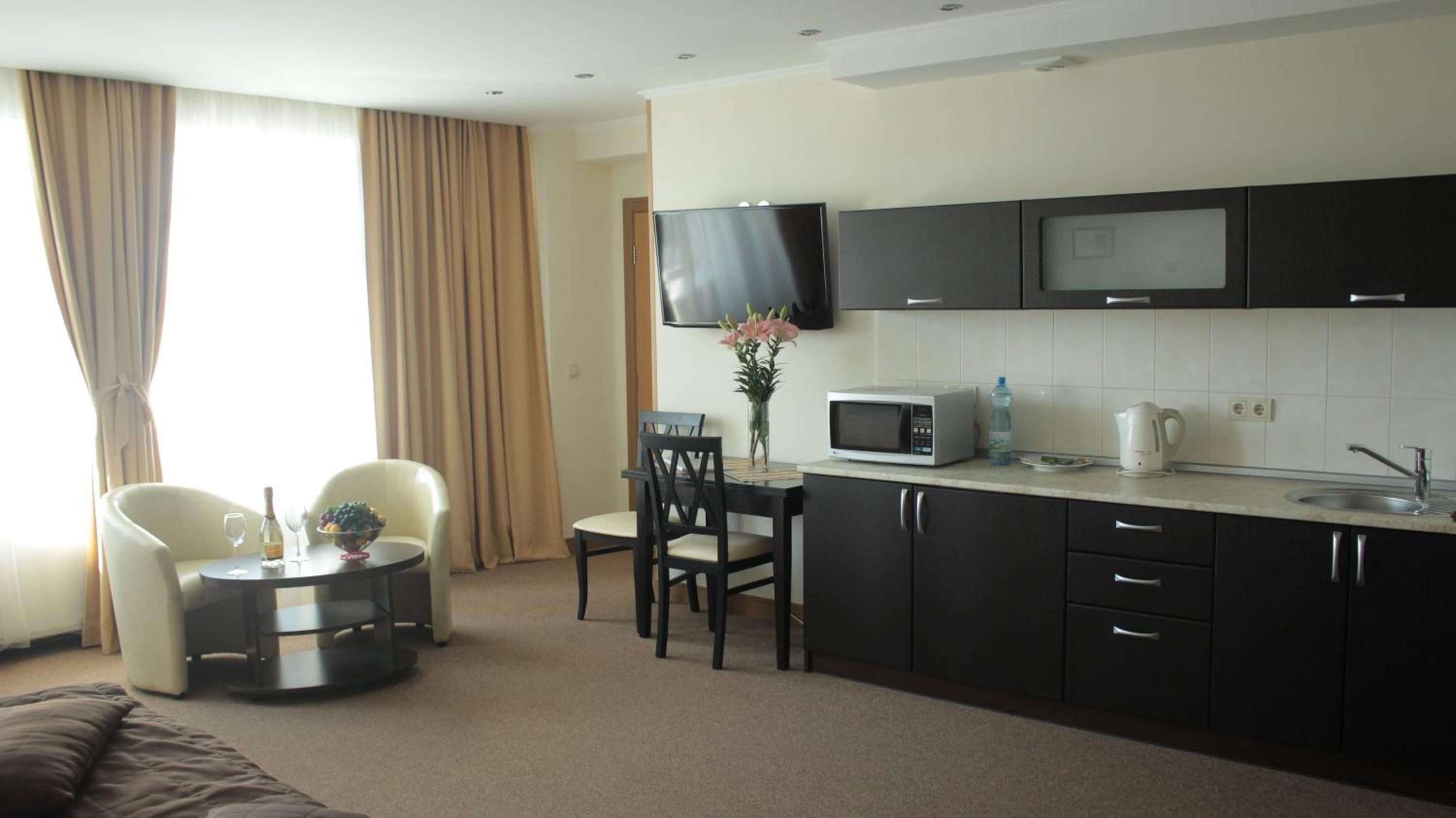 Hotel Asteri in Kiev offers elegantly decorated rooms with modern amenities, including free Wi-Fi and air conditioning. The neutral color scheme provides a calming atmosphere, and each room features a kitchenette and a flat-screen TV for your convenience.