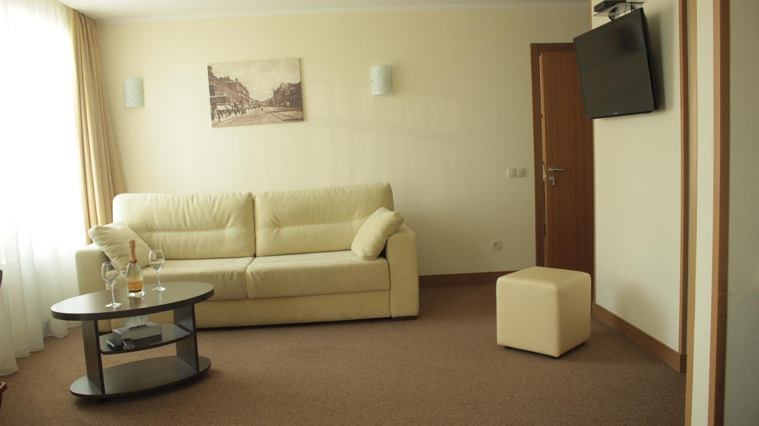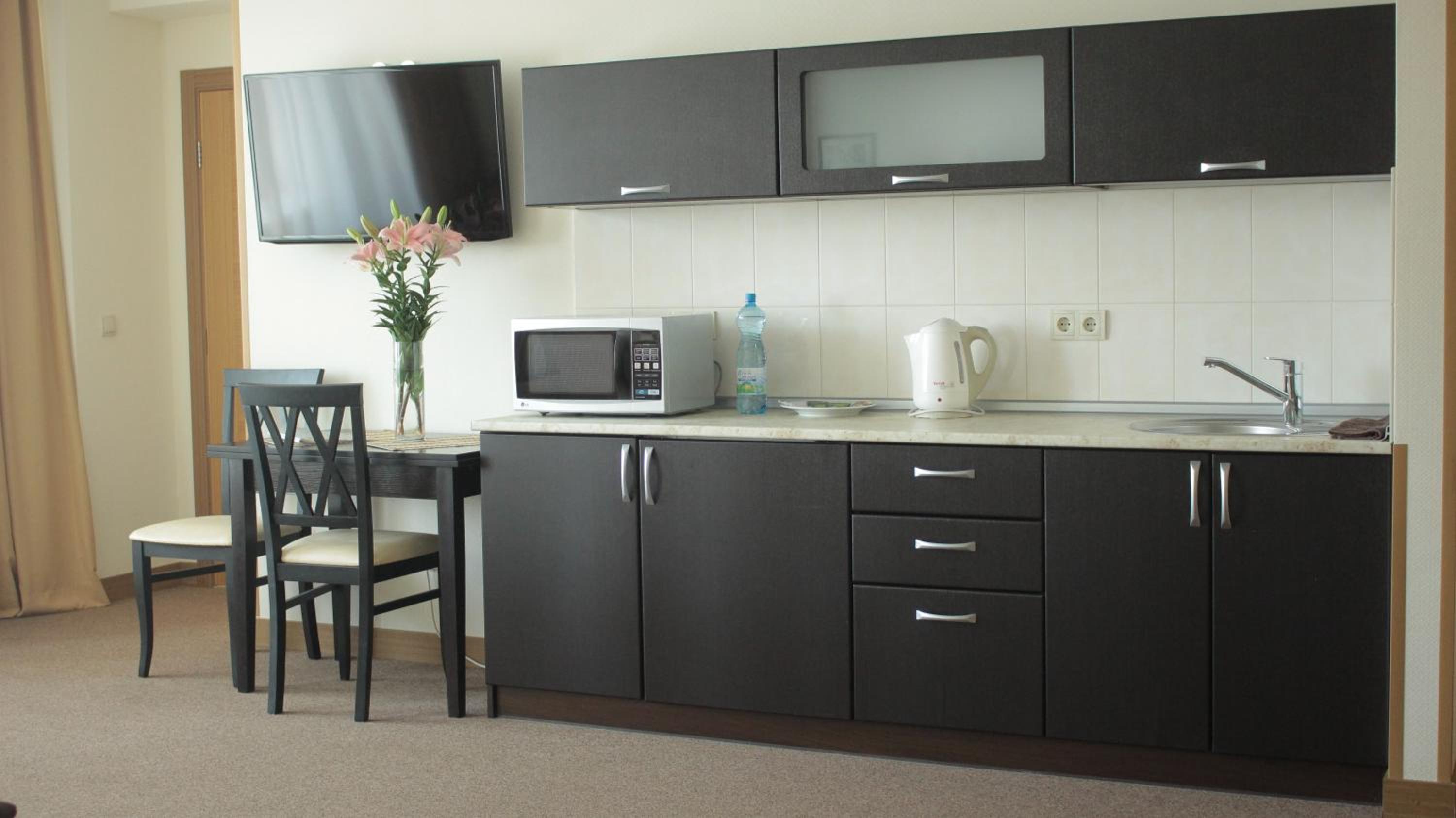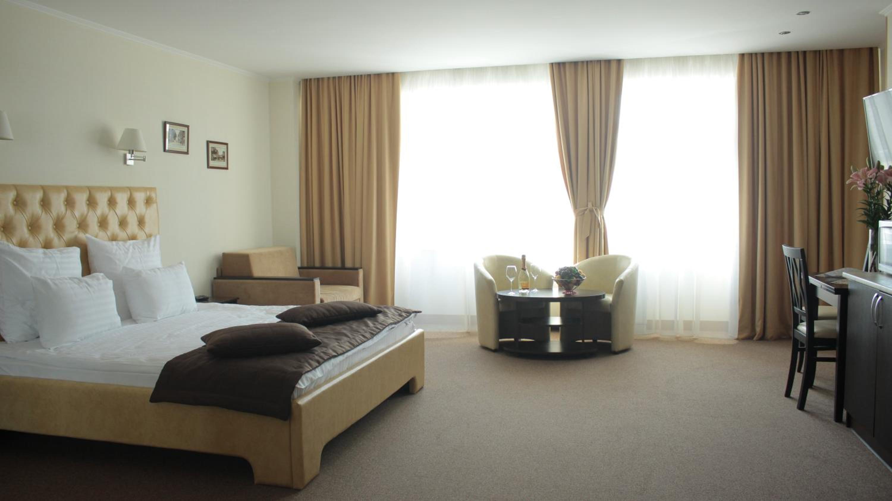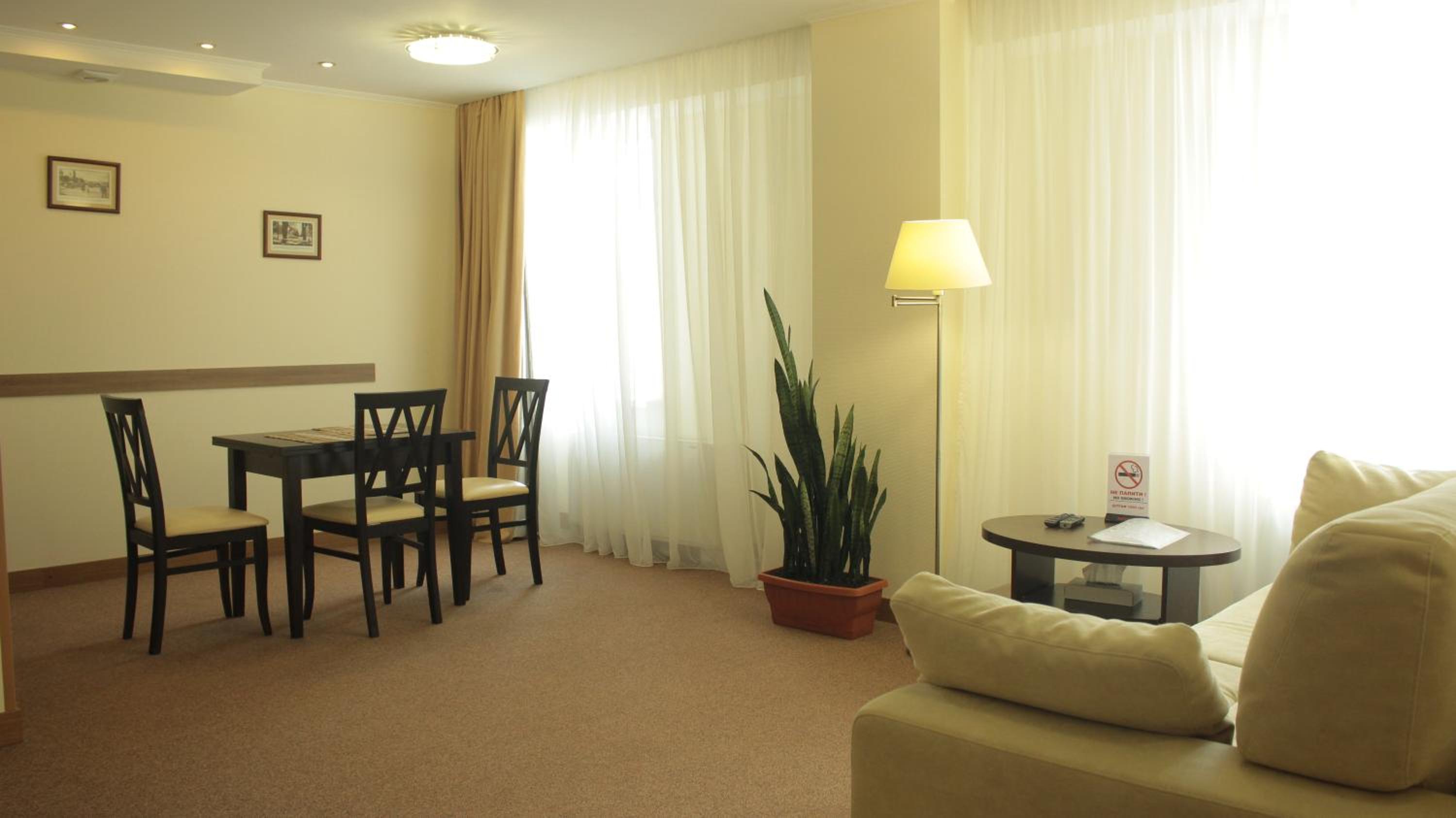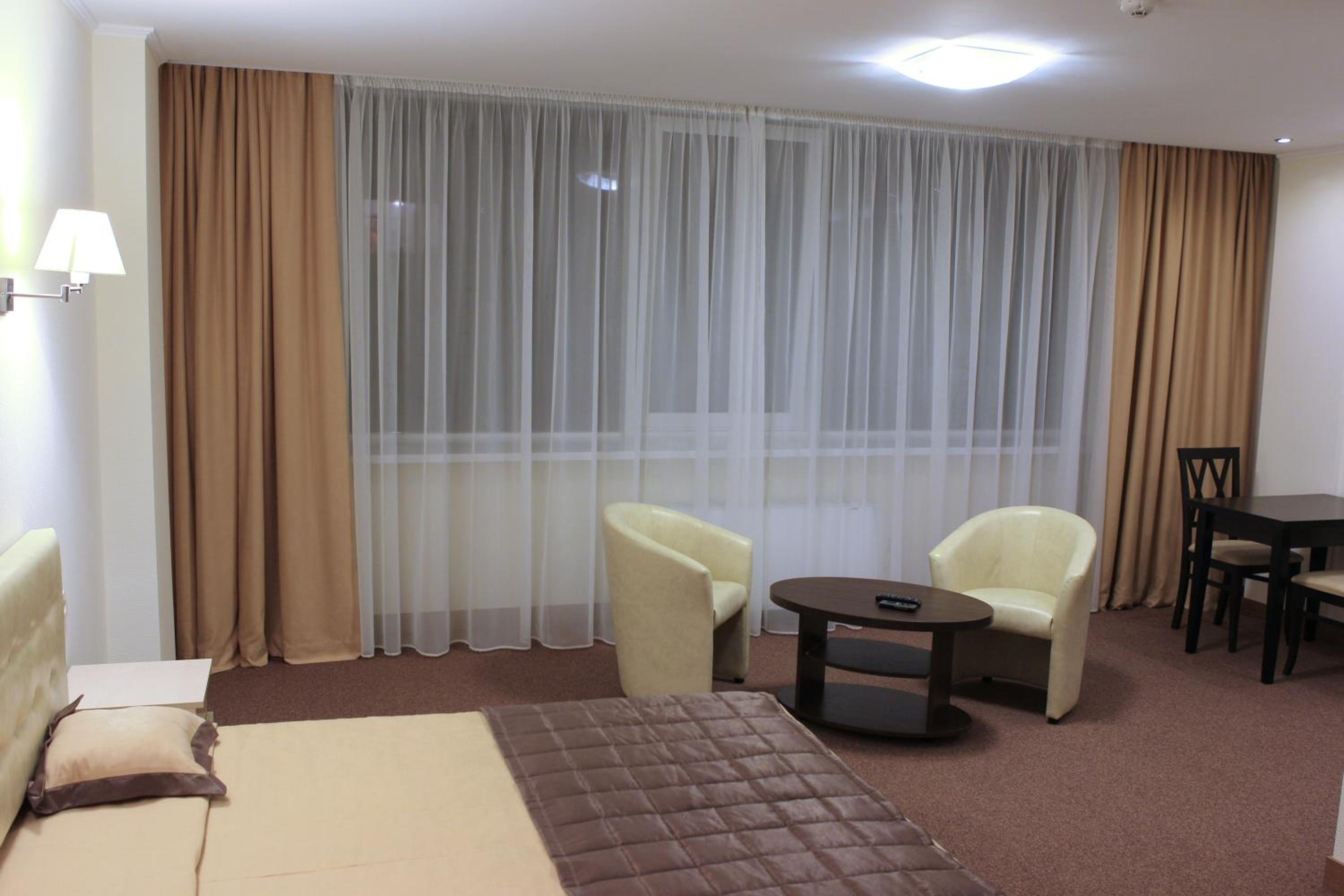 Hotel Asteri in Kiev offers elegantly decorated rooms with modern amenities, including free Wi-Fi and air conditioning. The neutral color scheme provides a calming atmosphere, and each room features a kitchenette and a flat-screen TV for your convenience.