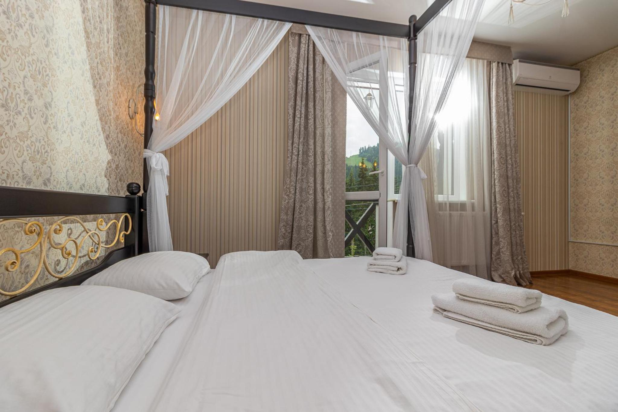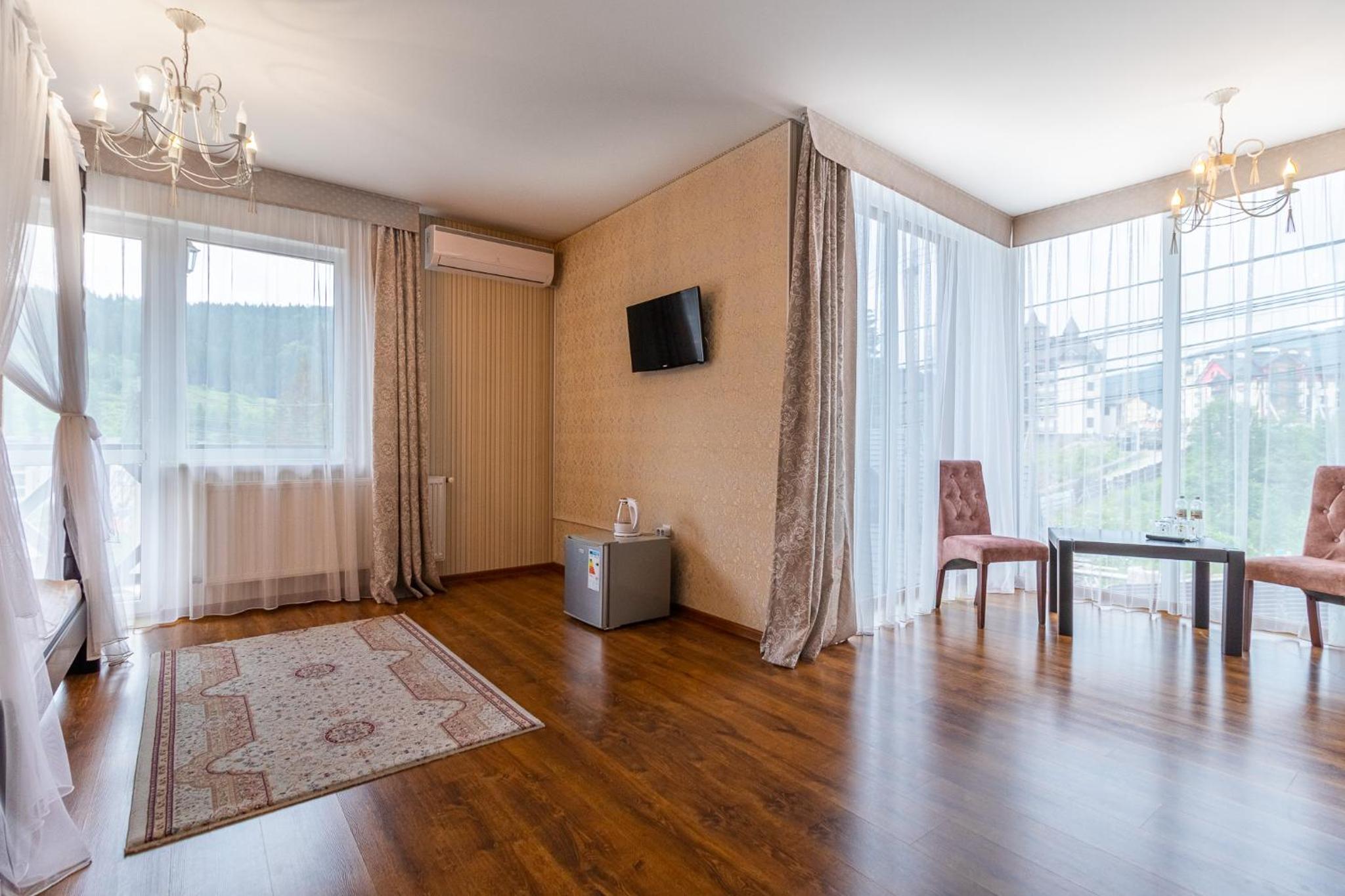 Luxurious Amenities: Hotel Pid Strihoju offers rooms with flat-screen TVs, private bathrooms with free toiletries, and picturesque views of the mountains or pool. The free WiFi throughout the property ensures you stay connected during your stay.