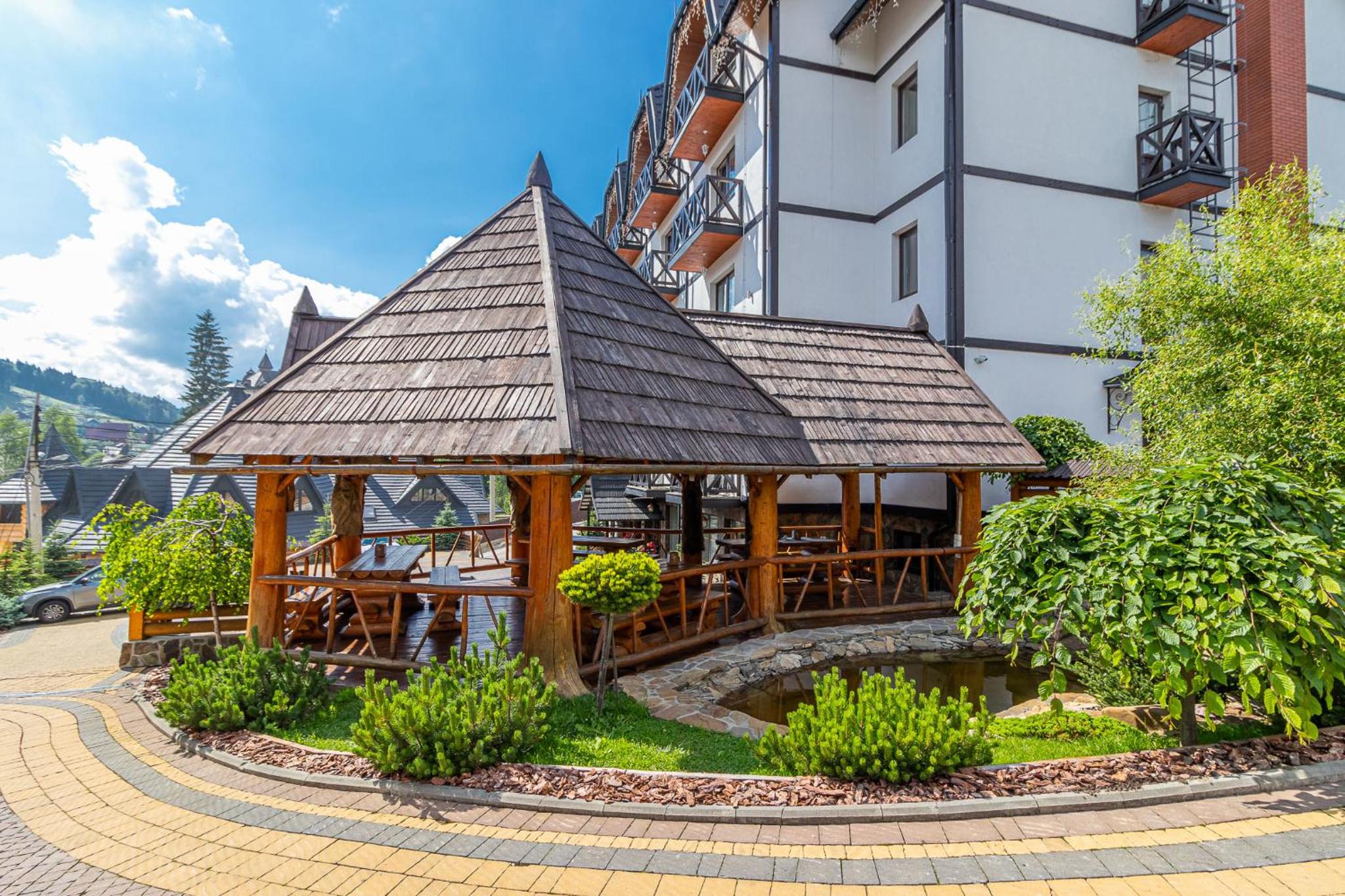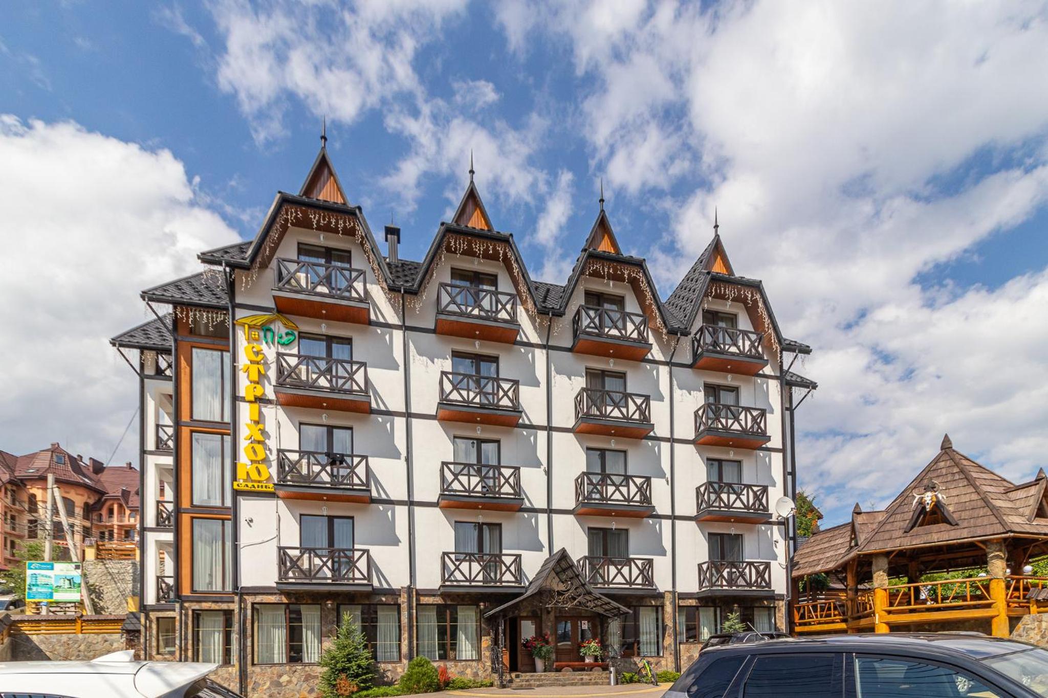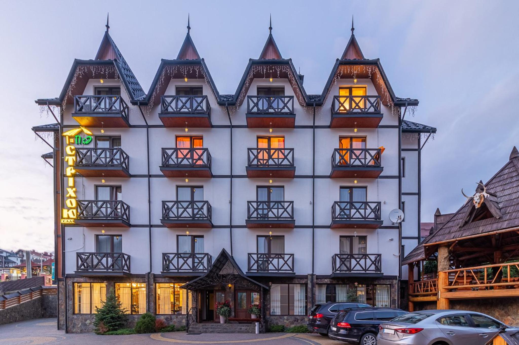 Convenient Location: Situated in Bukovel, near popular ski lifts like Vityag R1 and Vityag R2, and just 62 km from Ivano-Frankivsk Airport, Hotel Pid Strihoju provides easy access to both leisure and travel destinations.