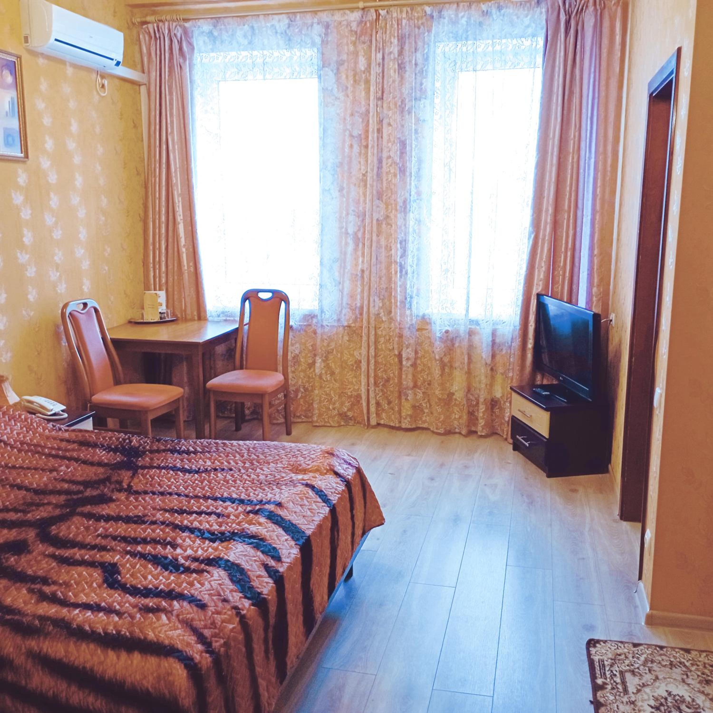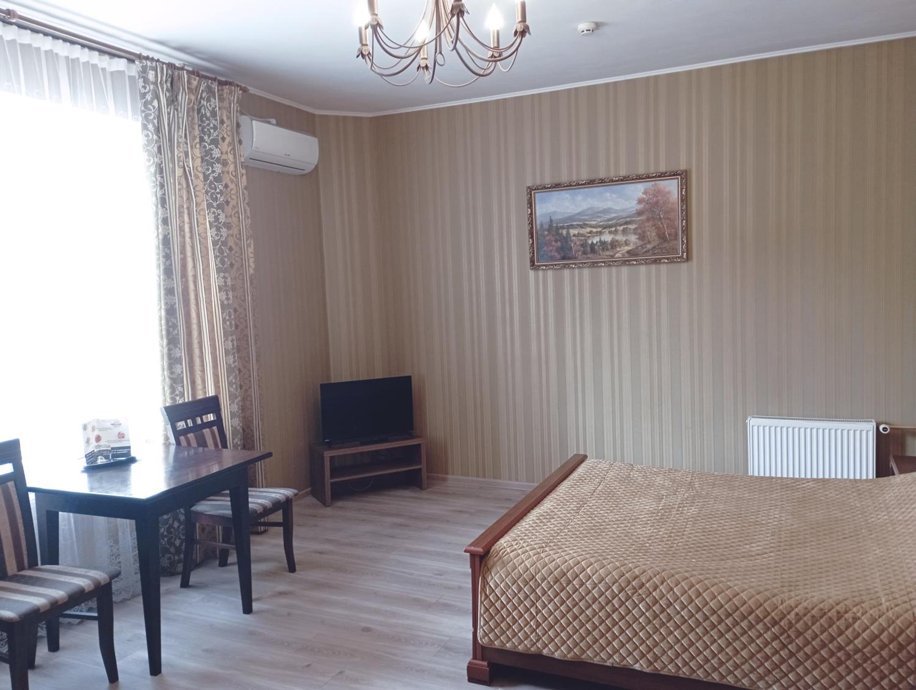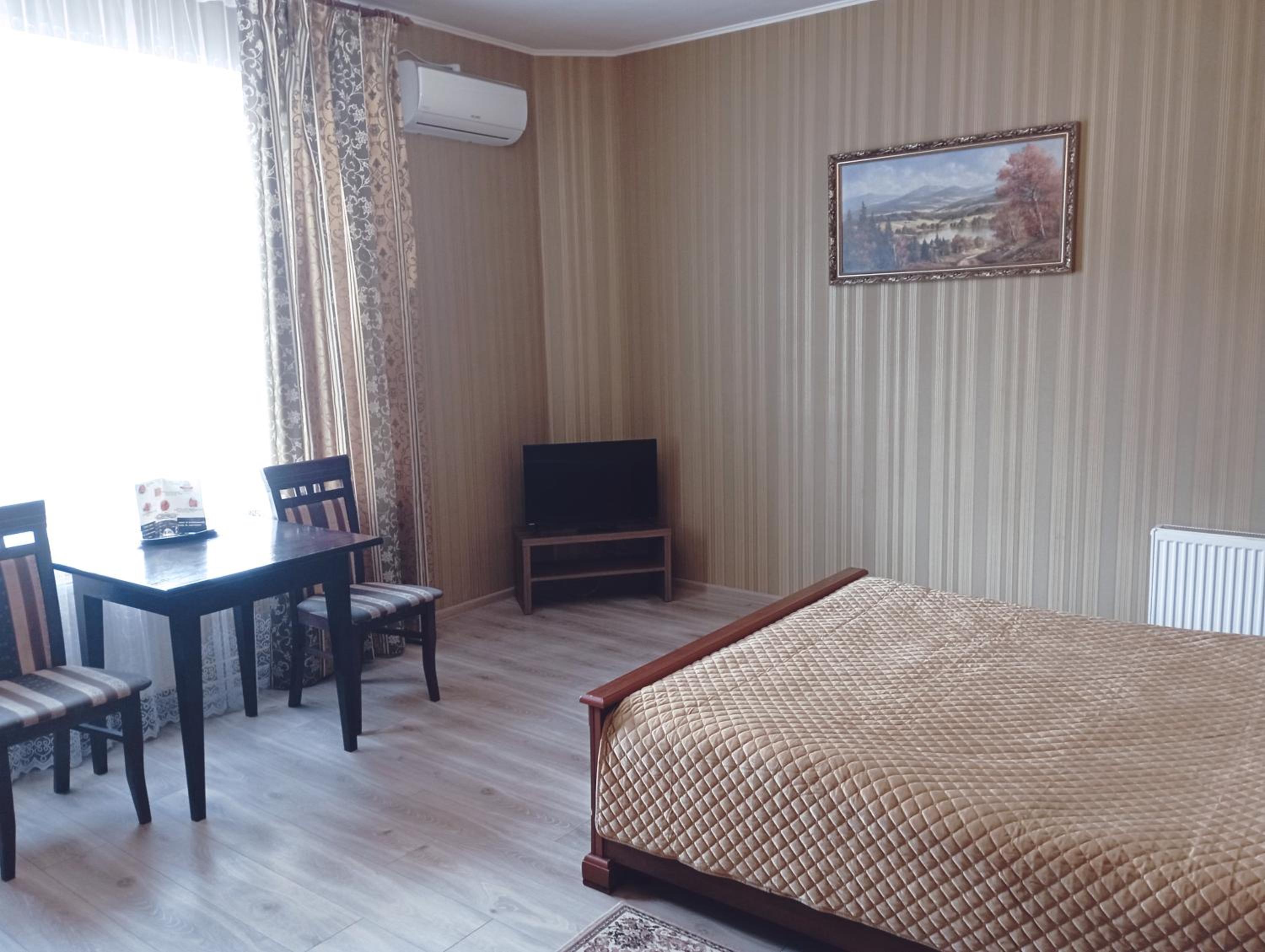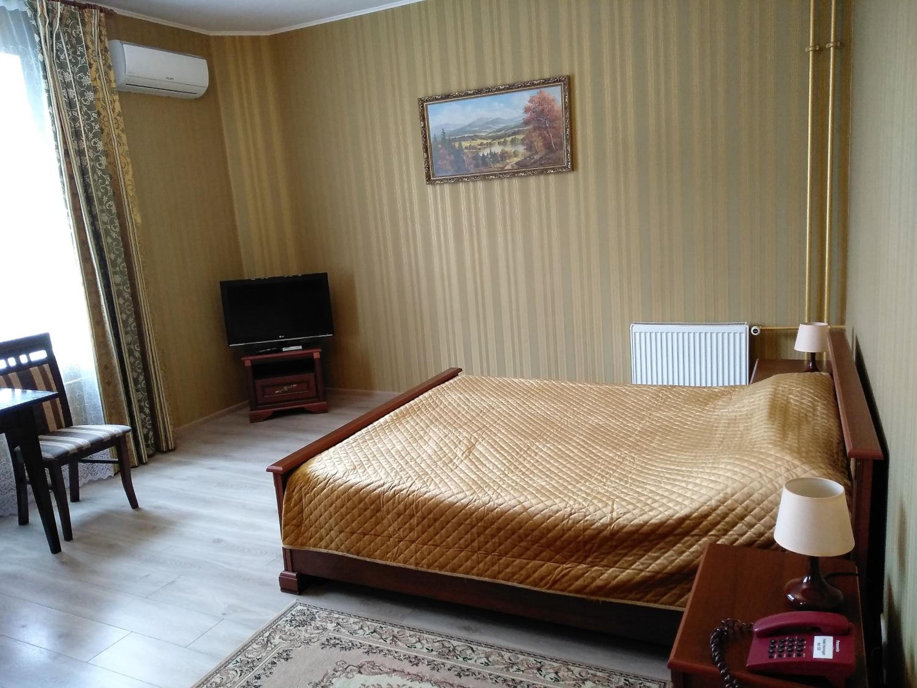 Enjoy the convenience of free WiFi, private parking, and a 24-hour front desk. The hotel ensures a comfortable stay with air conditioning, flat-screen TVs, and cozy bed linens in every room. Additionally, the proximity to Vinnytsia Airport makes travel a breeze.