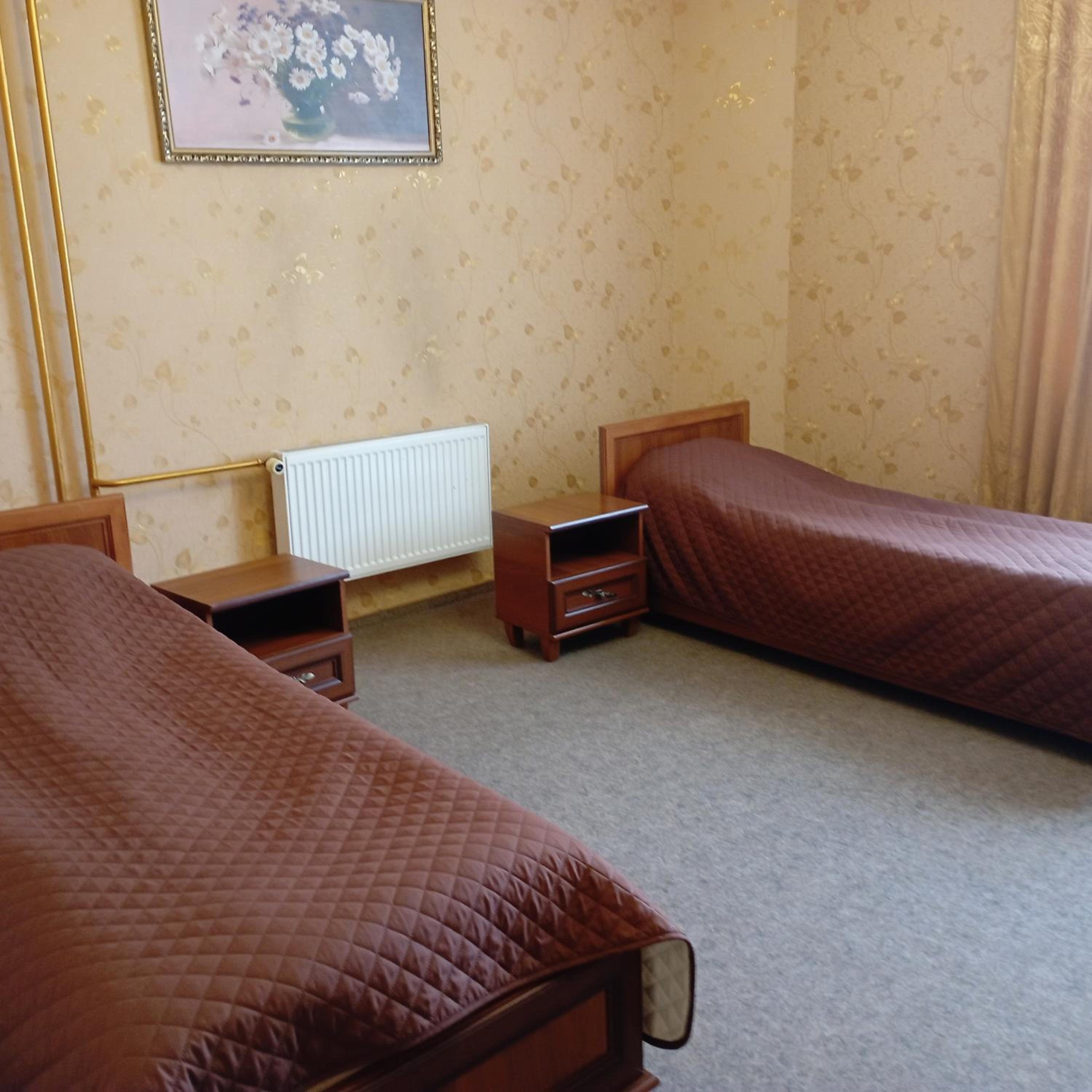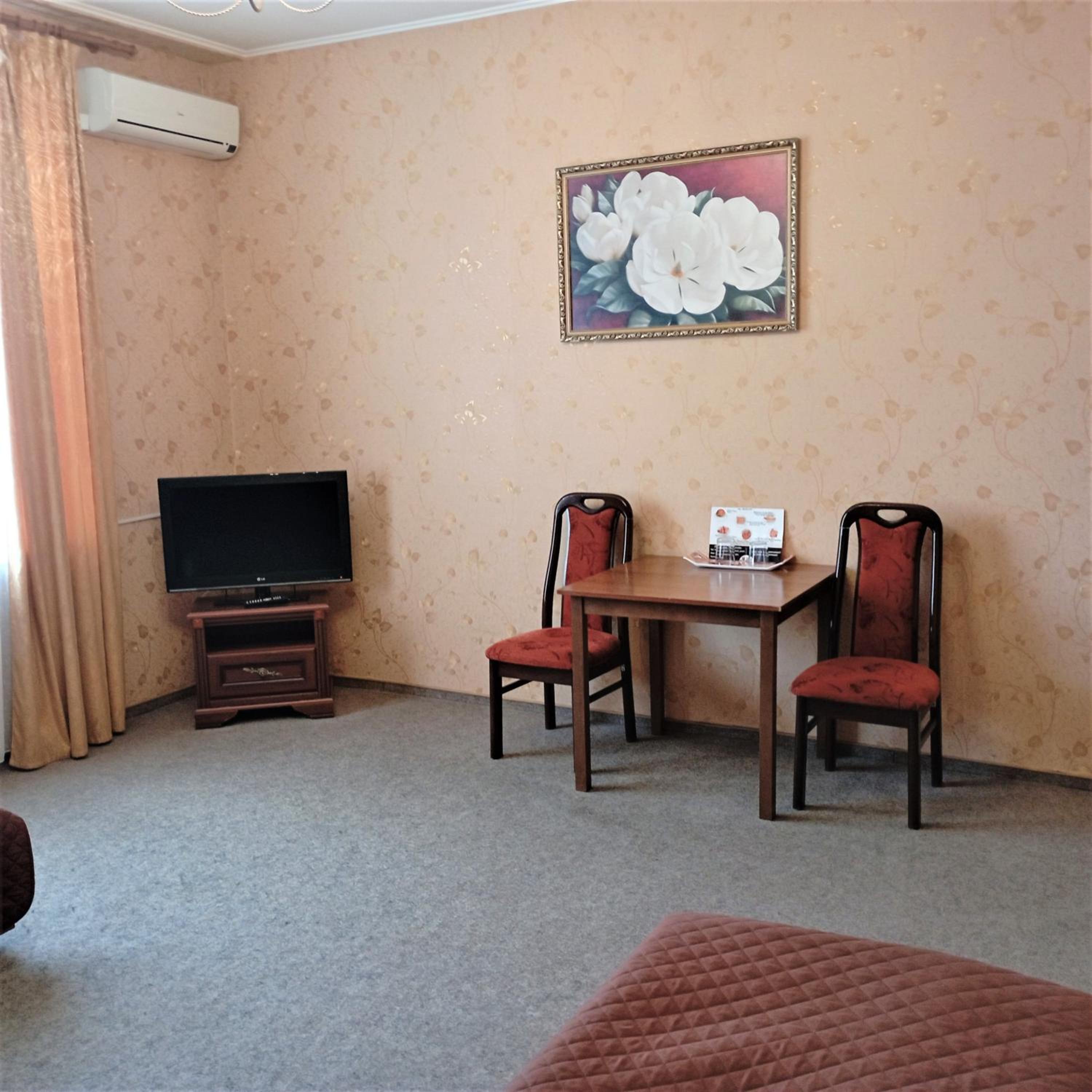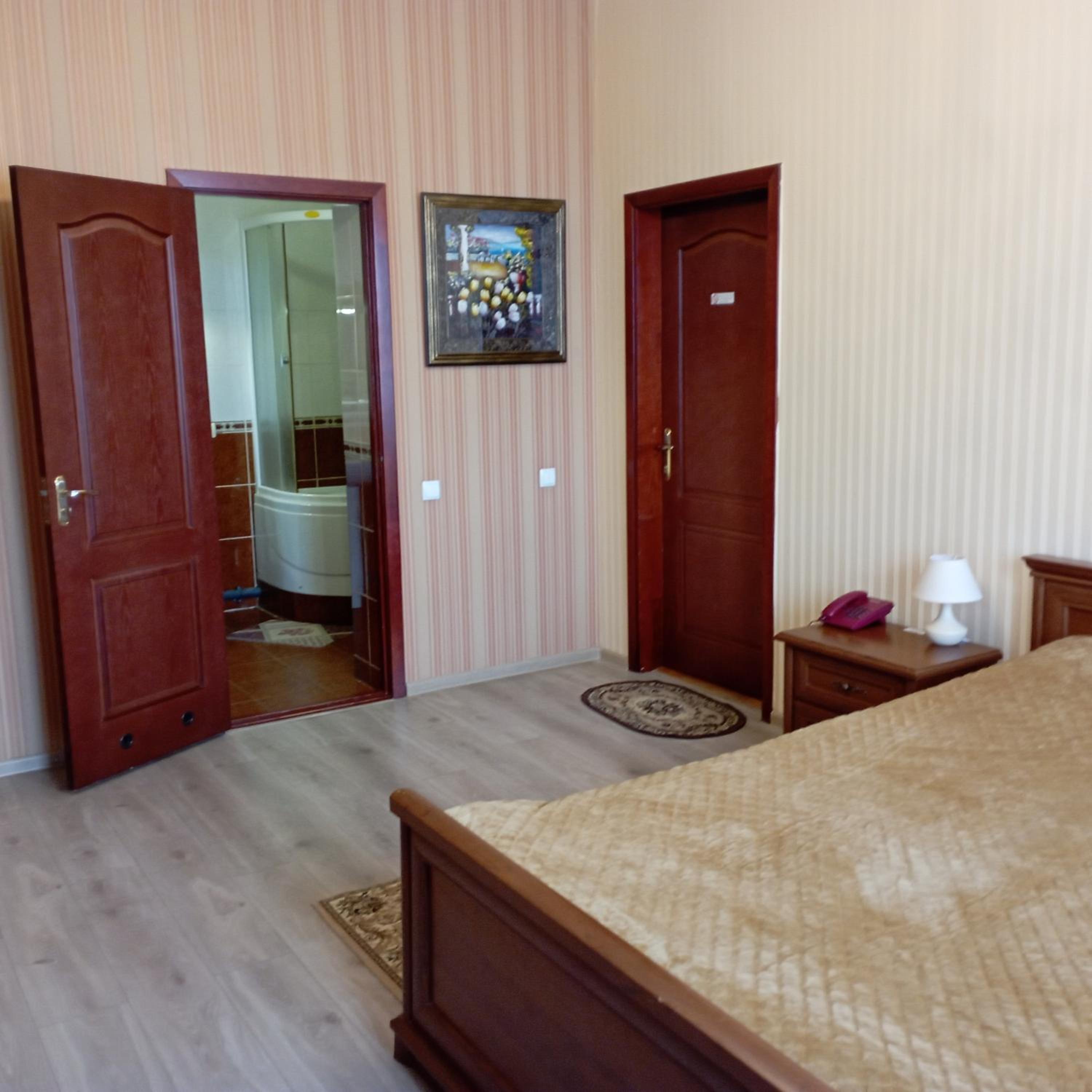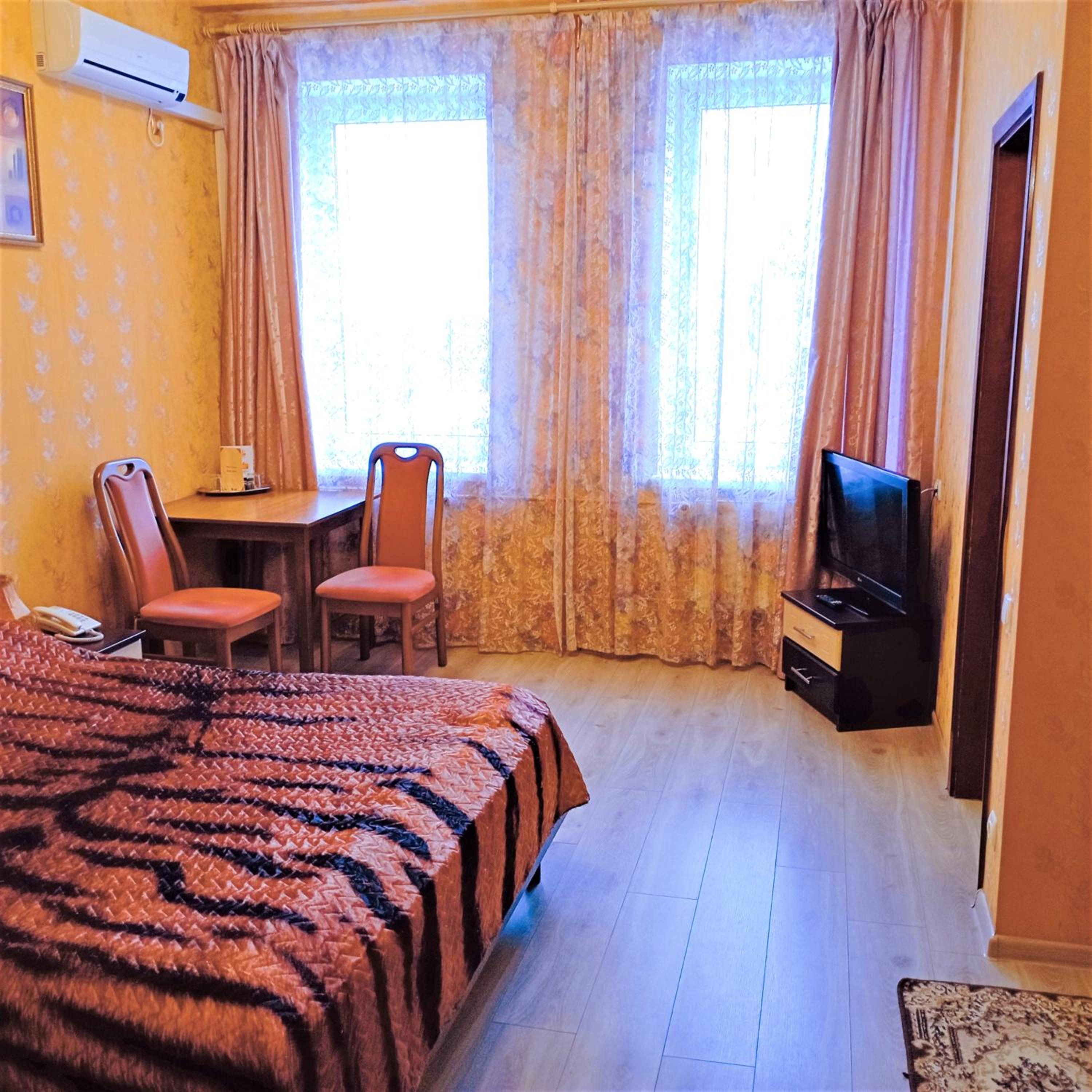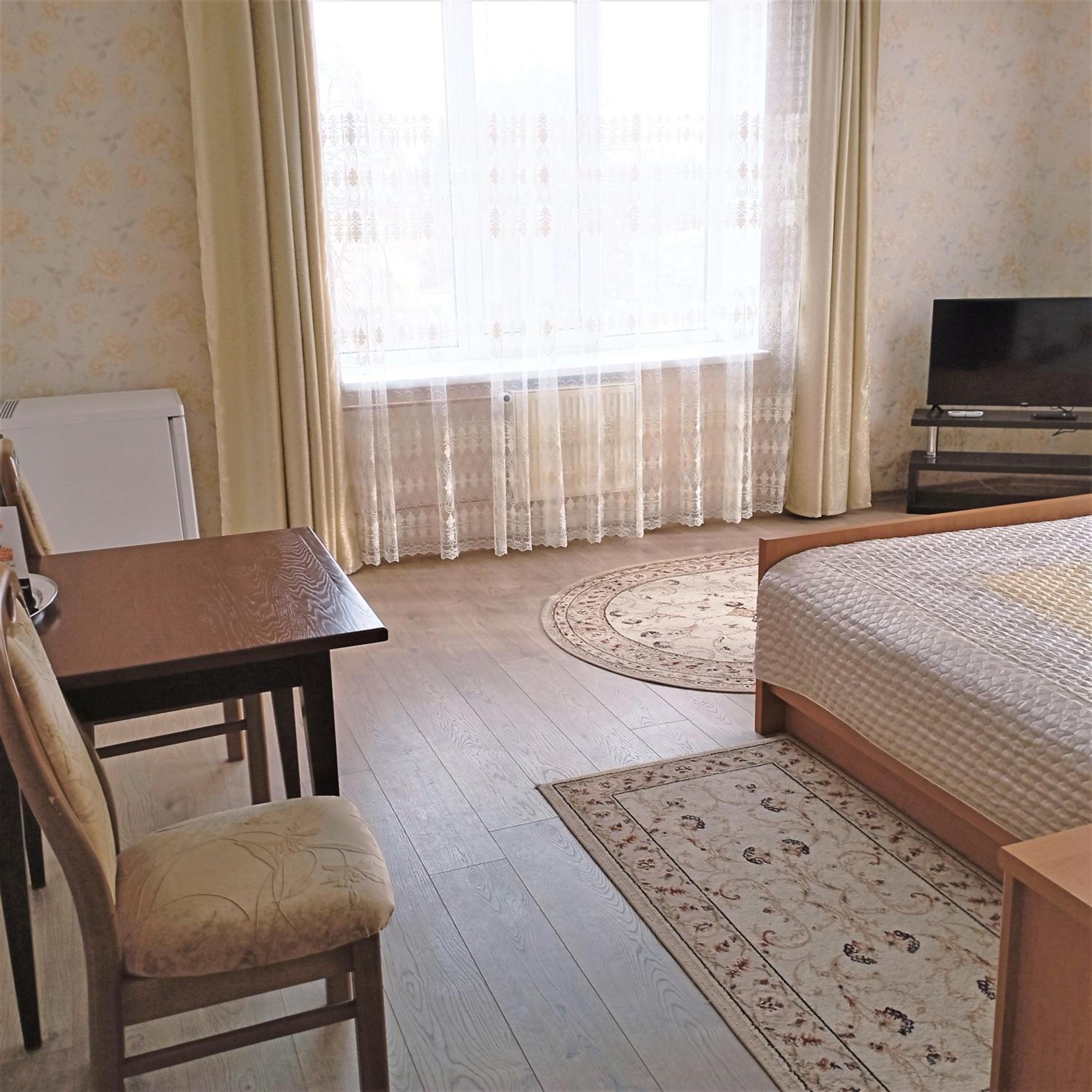 Enjoy the convenience of free WiFi, private parking, and a 24-hour front desk. The hotel ensures a comfortable stay with air conditioning, flat-screen TVs, and cozy bed linens in every room. Additionally, the proximity to Vinnytsia Airport makes travel a breeze.