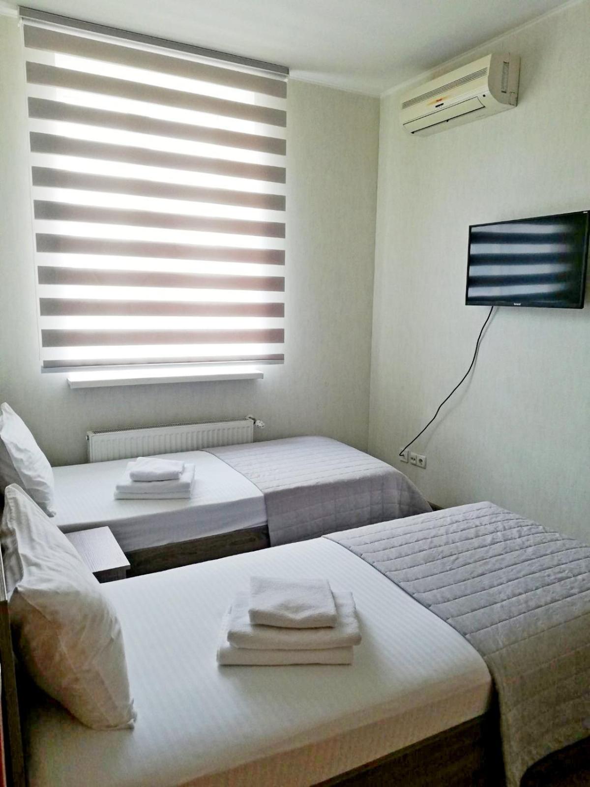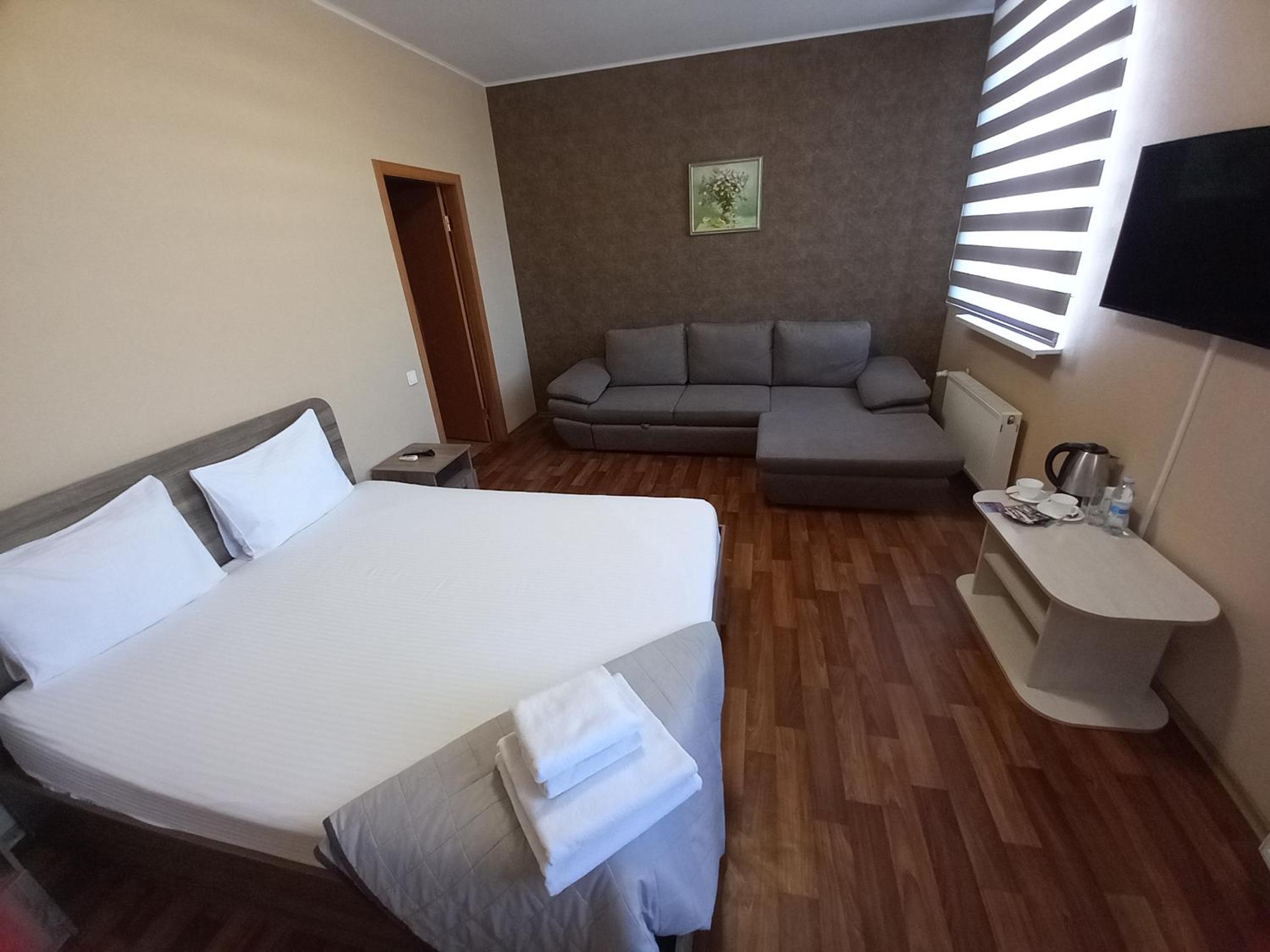 The rooms at Prometey Hotel are equipped with air conditioning, flat-screen TVs, and private bathrooms. Guests can also find a kettle, free toiletries, and bed linen for their convenience.