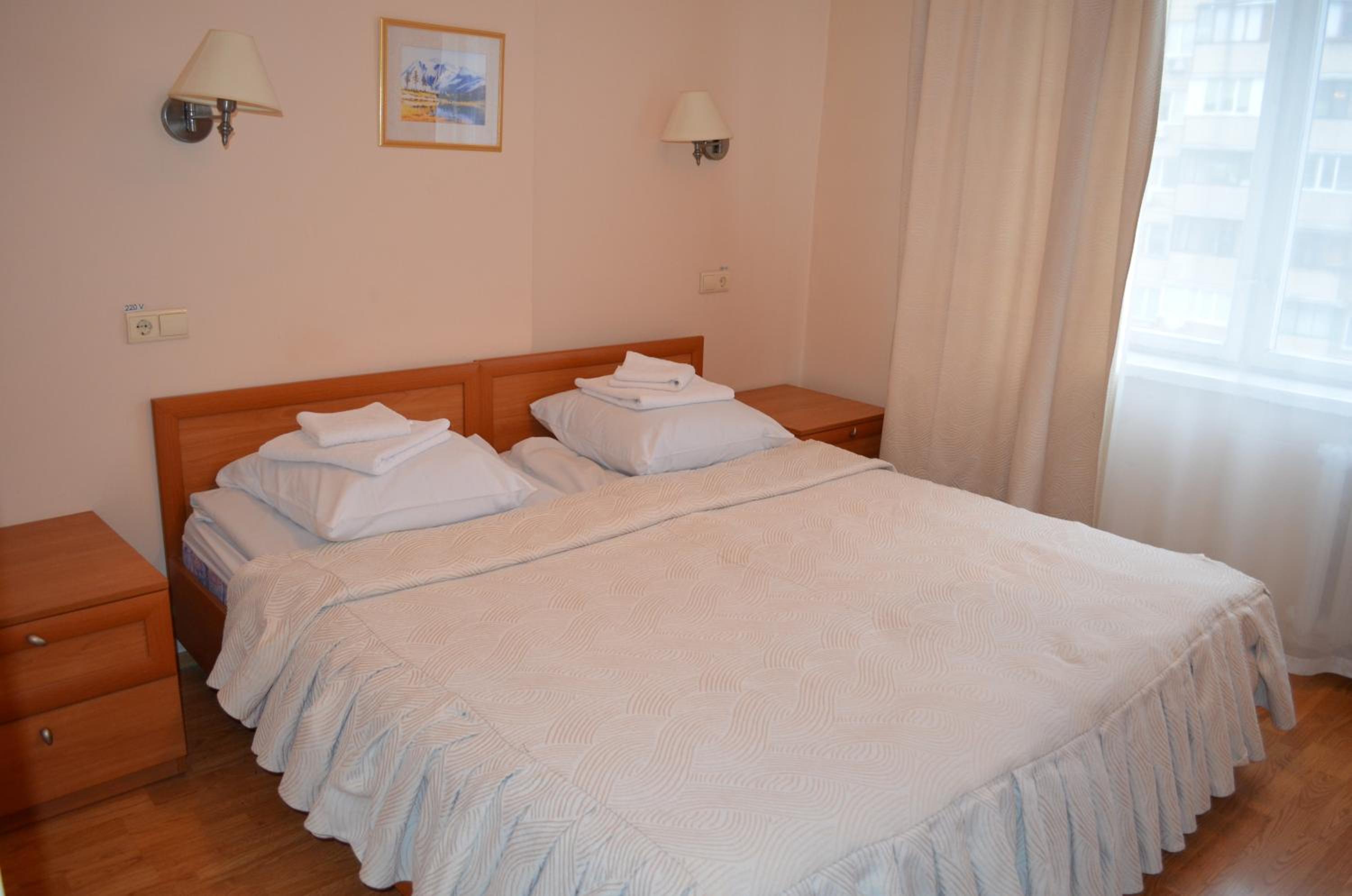Мы бронировали номер с двумя отдельными кроватями, в итоге нам сказали, что в этом номере нет гарячей воды. Нам предложили номер с двухспальной кроватью, но бойлером. В итоге кровать окозалась полуторная. С окна дует, дуйчик не спас. Ночью выключили свет вовсе.
