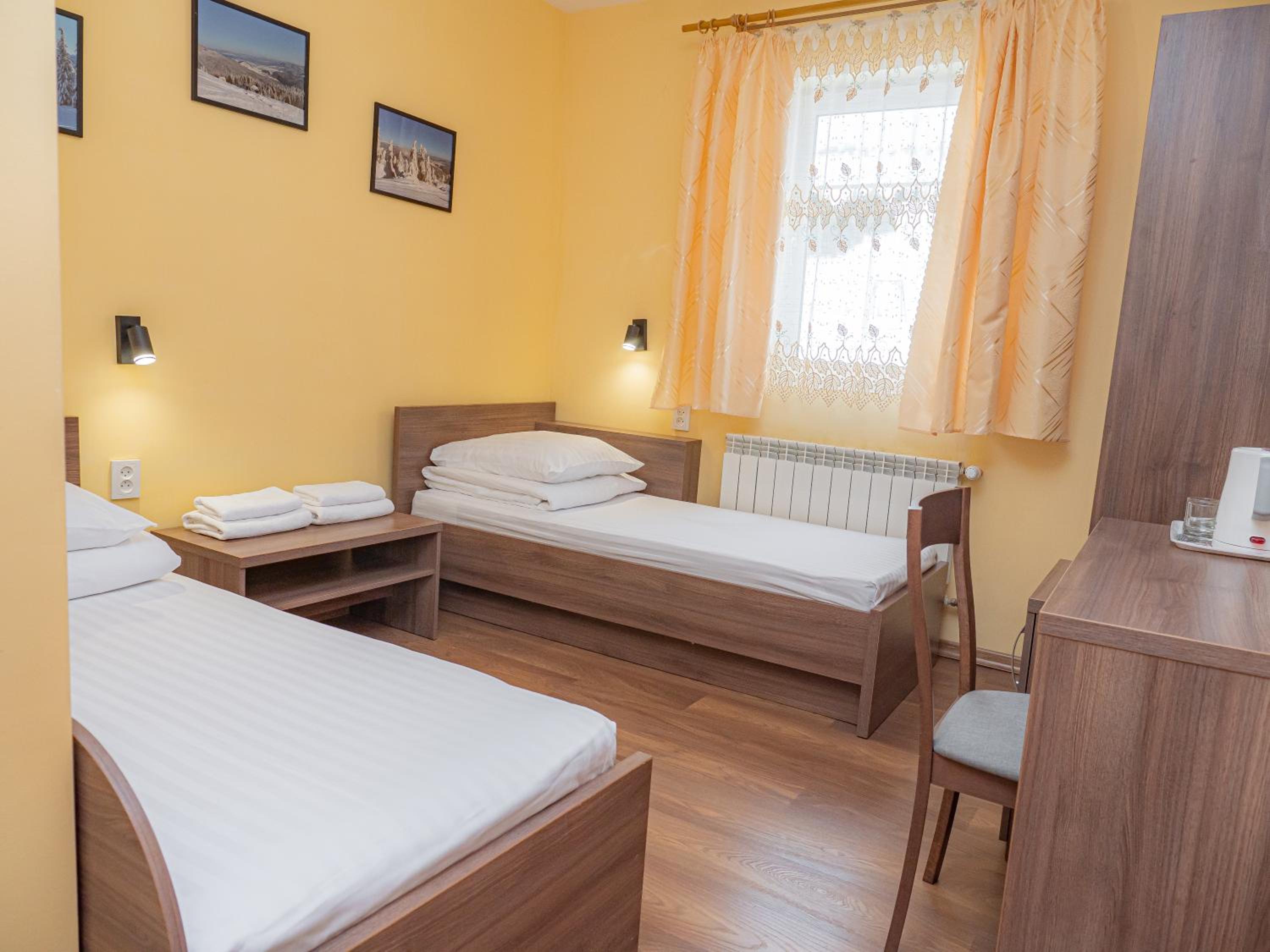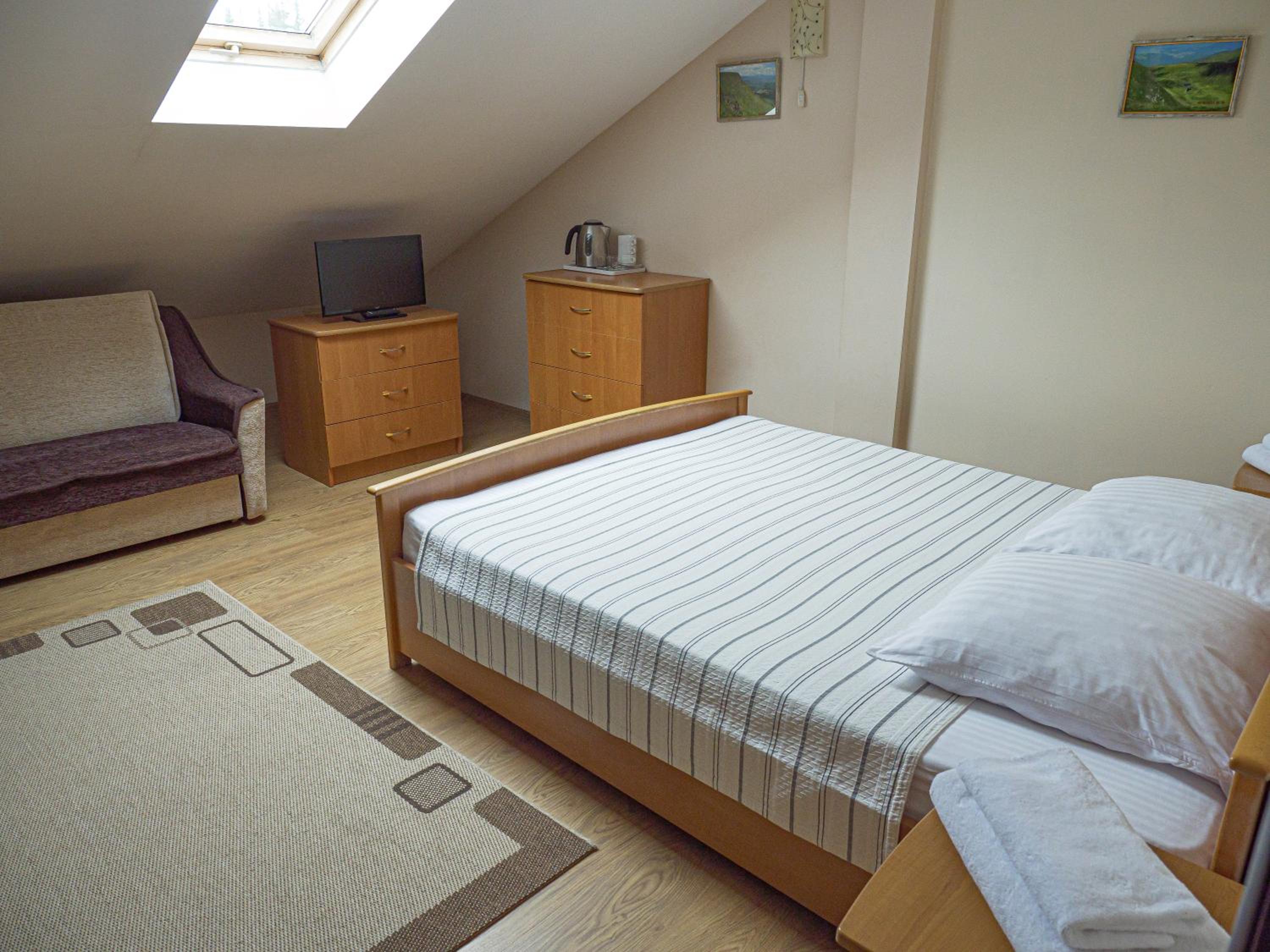 Номер невеличкий, але все чисто і охайно. Постіль білосніжна, матрас зручний. Персонал привітний і уважний. Поруч є заклад де можна поїсти. Одразу за рестораном невелике озерце. Поруч нескладний підйом до озера Івор з прекрасним краєвидом