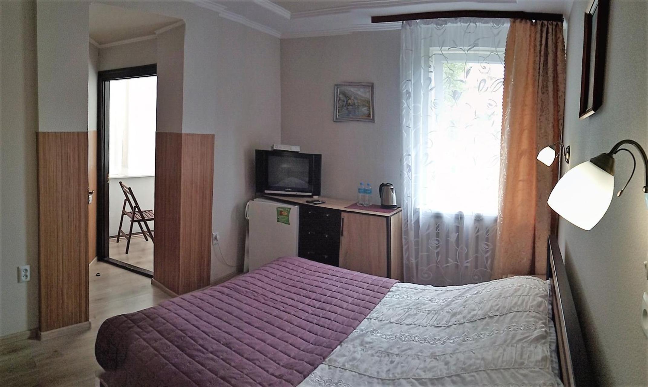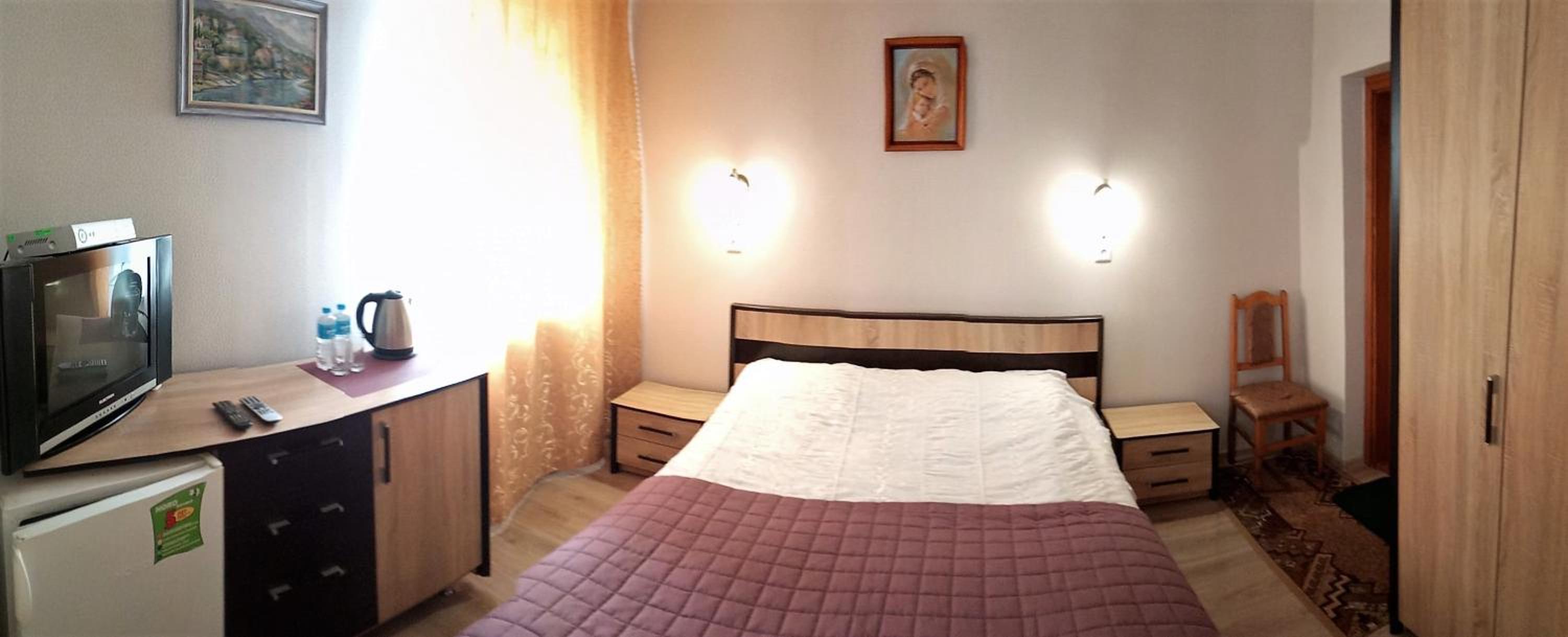 Сонячна offers elegantly furnished rooms equipped with modern amenities such as a TV, fridge, and free WiFi. Guests can enjoy a comfortable stay with plush bedding and a private bathroom in each room.