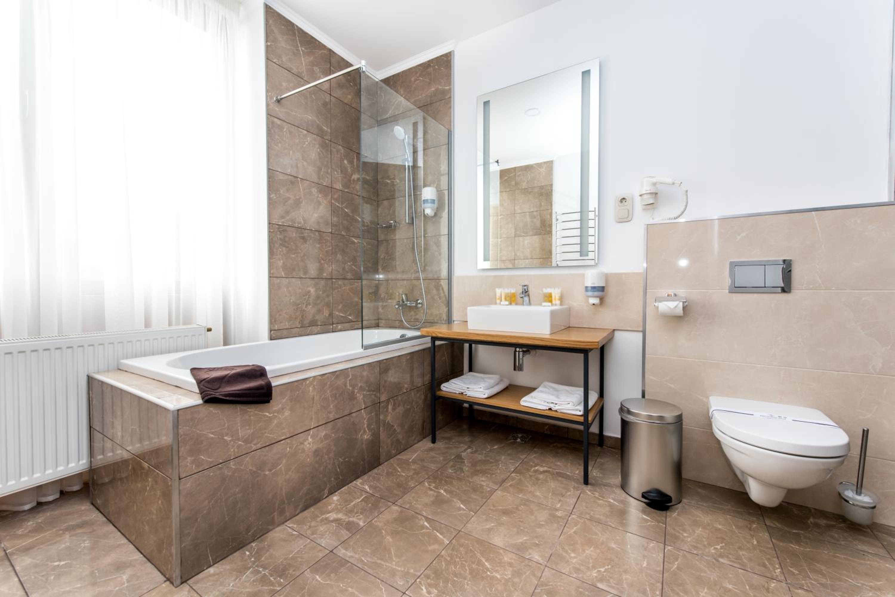 Отель чудовий!! Персонал привітний, якщо є запитання - відразу все пояснять і допоможуть. Гарні номери, все чисто. В номері є холодильник, чайник, чай, цукор - приємно. Ванна велика, вода гаряча завжди.