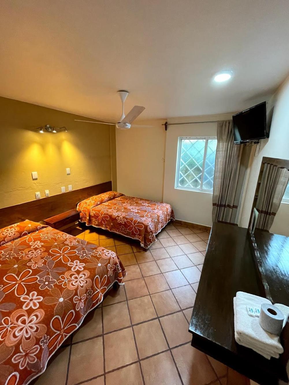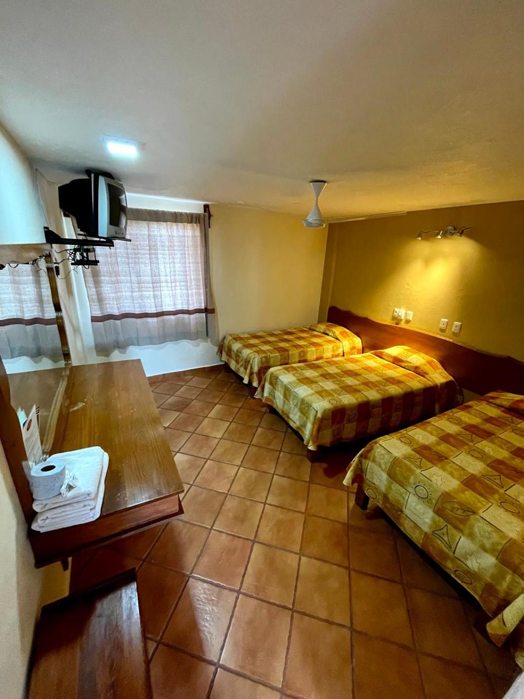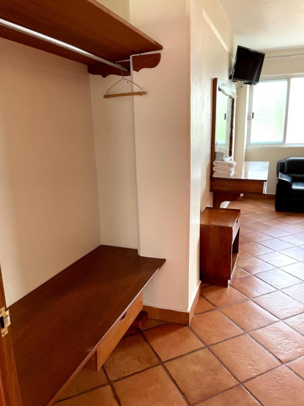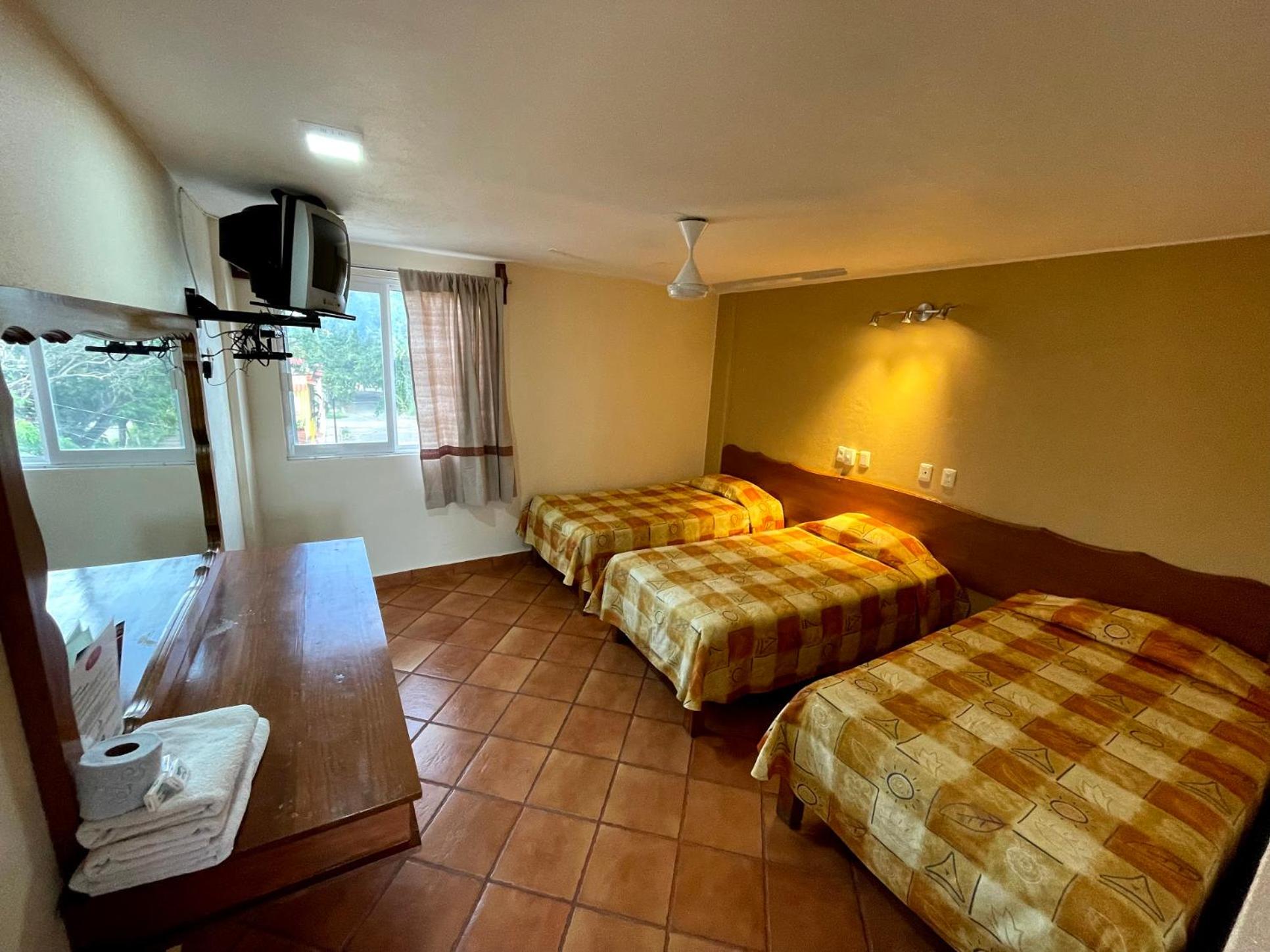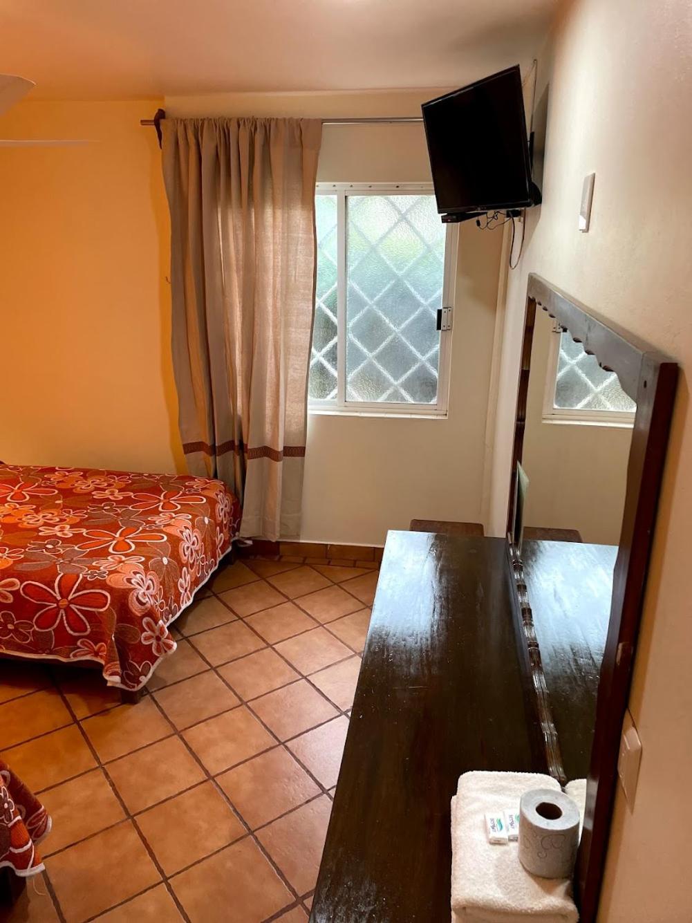Los muebles puertas y accesorios ya están deteriorados y oxidados, las sabanas y colchas rotas y desgastadas aunque todo esta muy limpio.para pasar solamente la noche esta bien porque esta cerca de la salida para cdmx