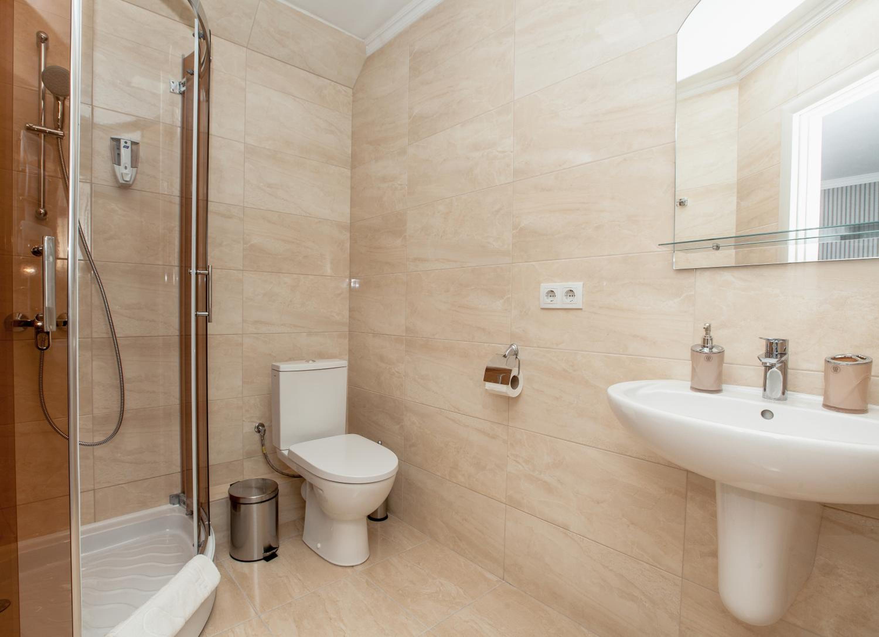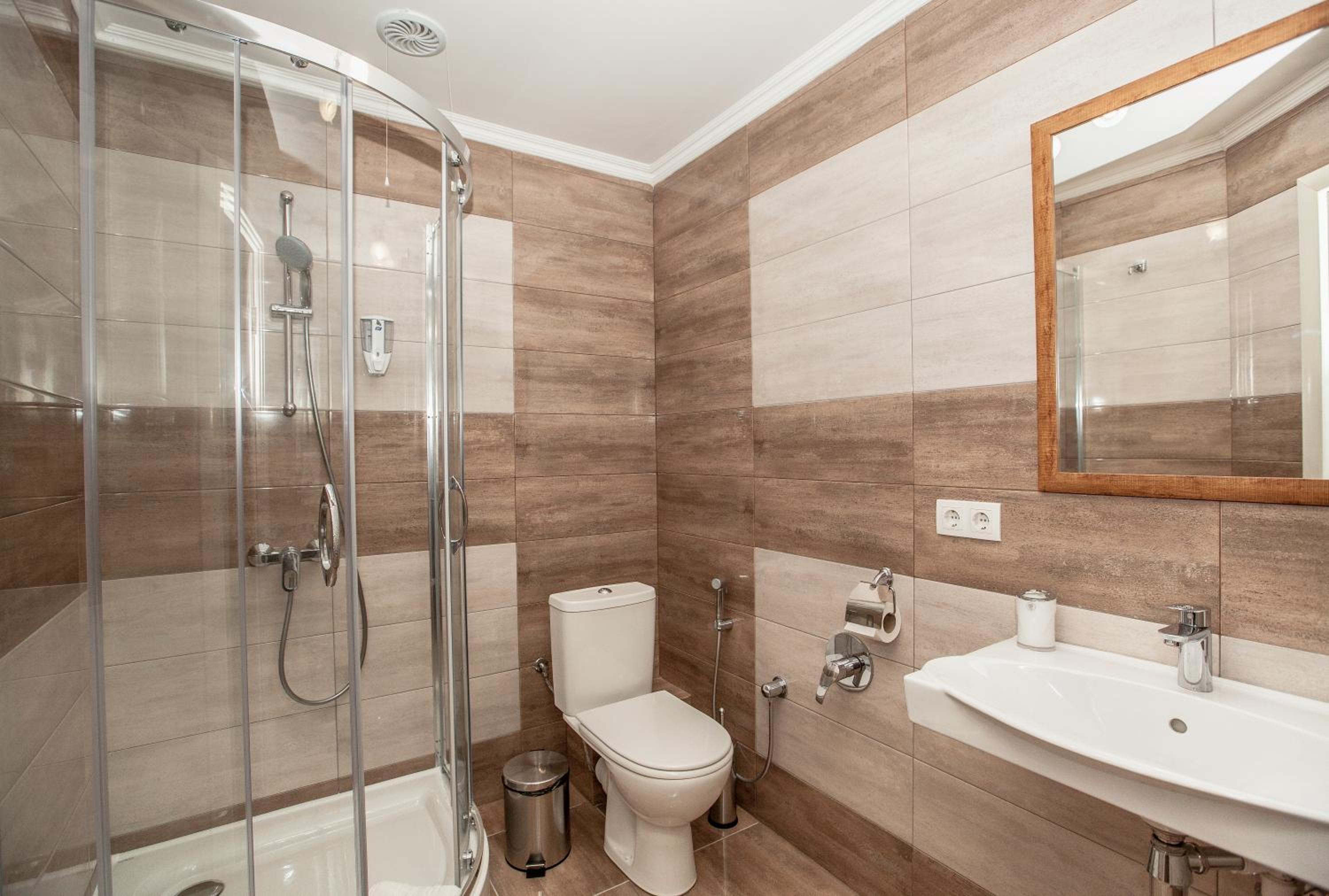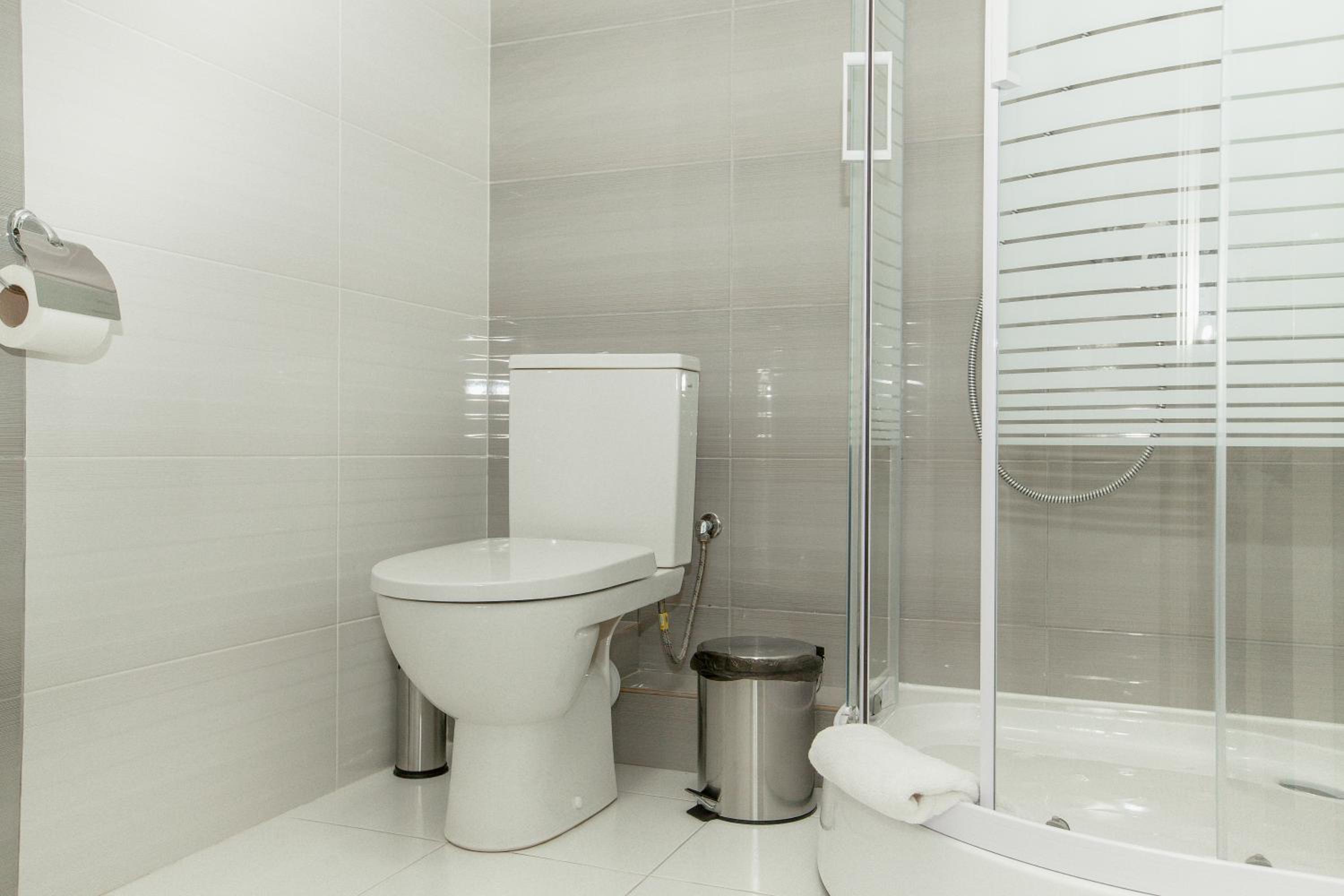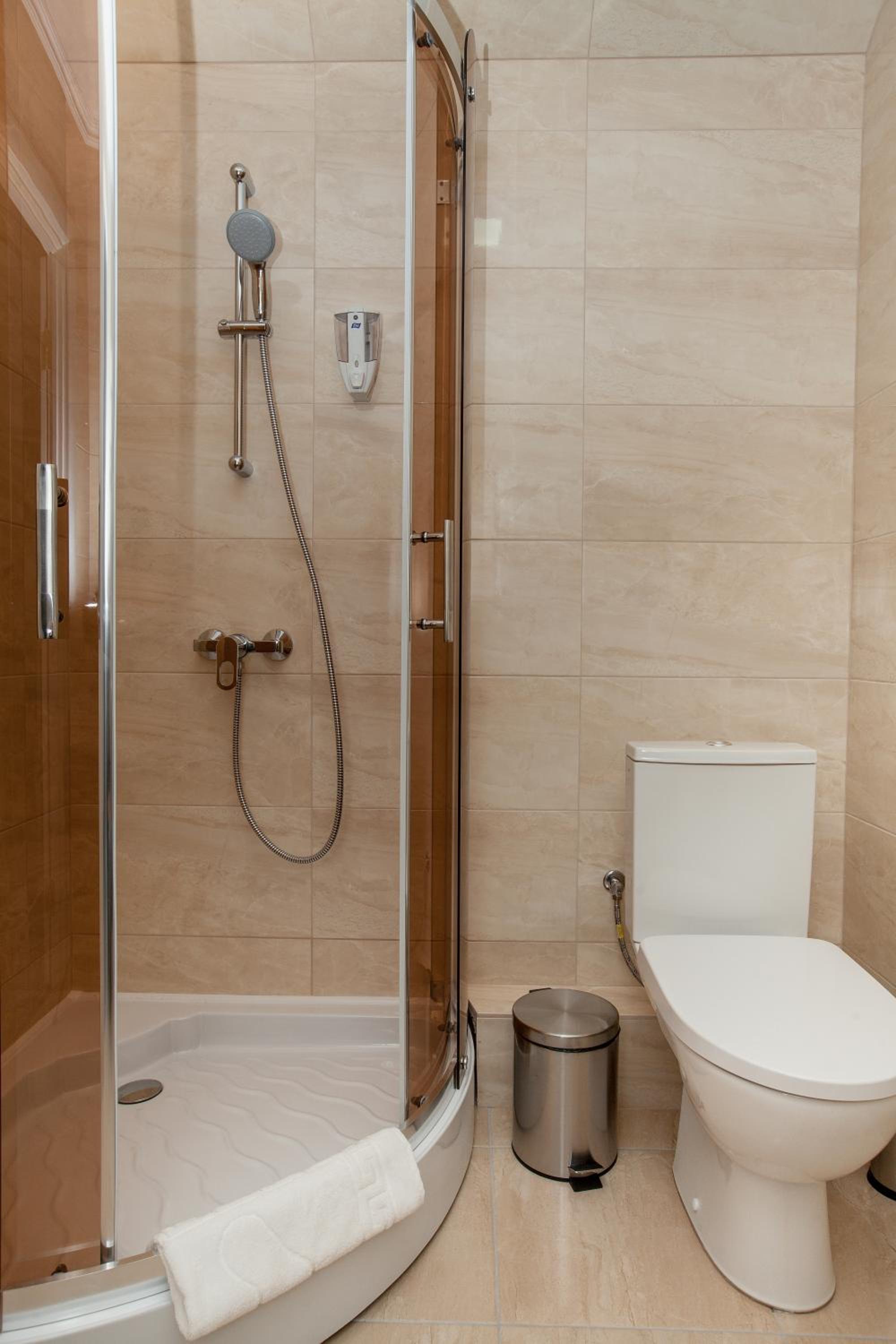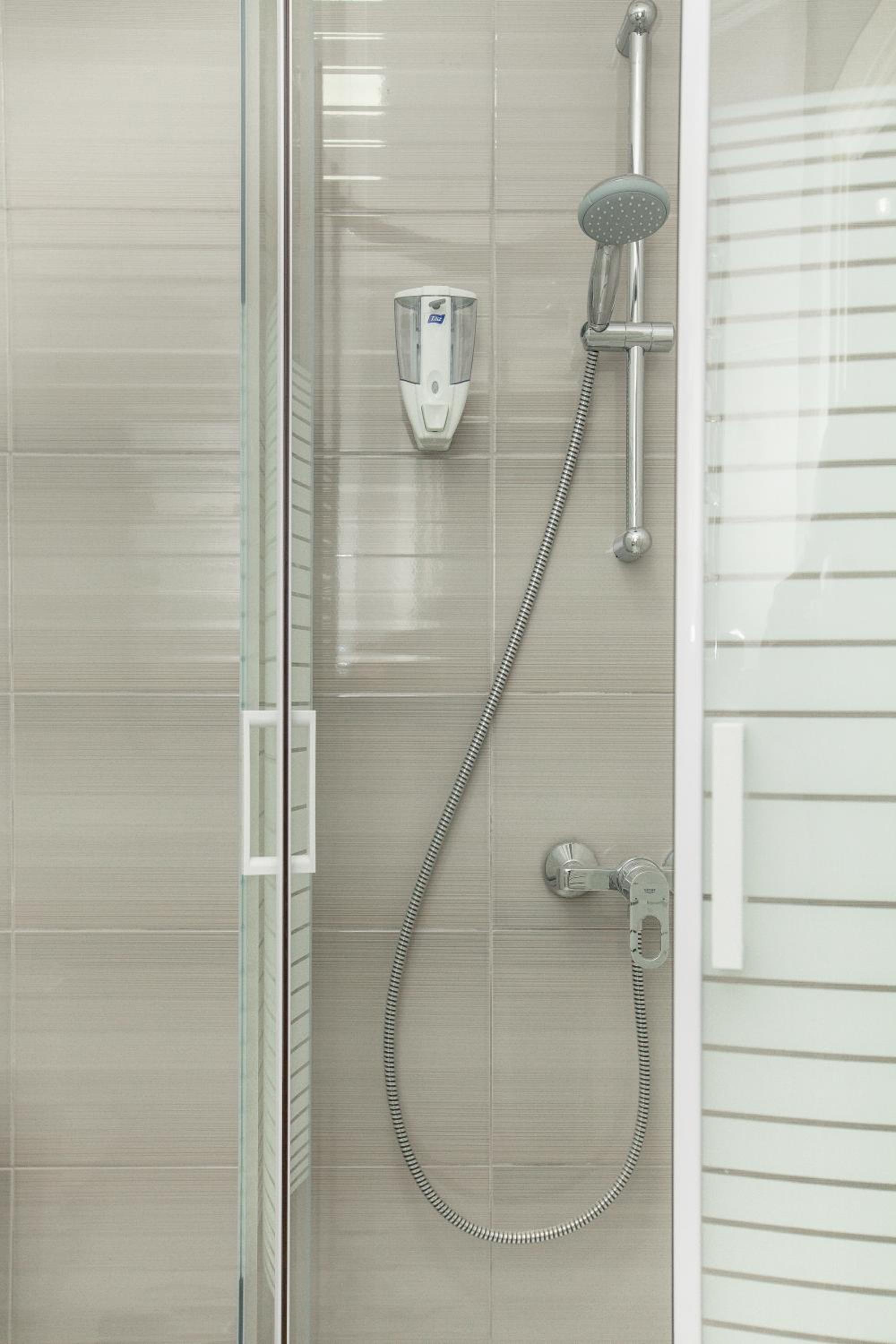 У коридорі досить холодно, так як вікно-балкон в кінці коридору не герметичне, є щілина прямо надвір. Вай-фай на жаль поганий. Також є проблема з подачею гарячої води: в одному номері під час користування душем вода то зʼявлялася, то зникала, в іншому номері доводилося чекати по 5-7 хвилин, щоб зійшла холодна вода та пішла гаряча. І зрештою вона була не гаряча, а лиш дуже тепла. Не вистачає коврика хоча би біля унітазу, так як плитка холодна, а капці дуже тоненькі. Трохи підтікав душ в одному з номерів, але як я зрозуміла, це частина старих душових кабінок, які вже поступово змінюють на нові.