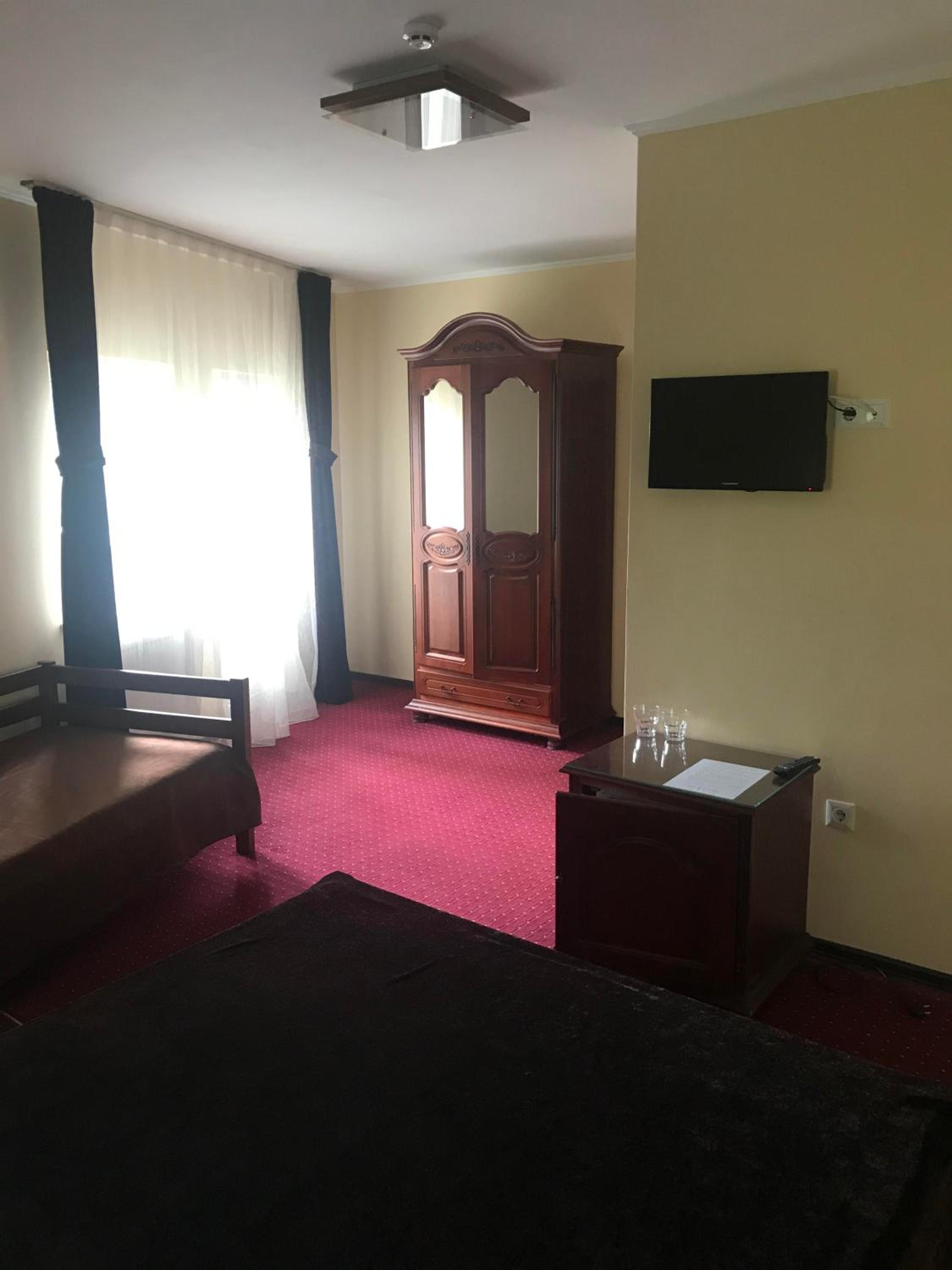 Не дуже чисто в номері , пил під тумбами і шафою, розхитані дверцята на тумбочці.Брудне покривало на ліжку, ніби заляпане фарбою.Якийсь постійний гул в номері, можливо вентиляція.