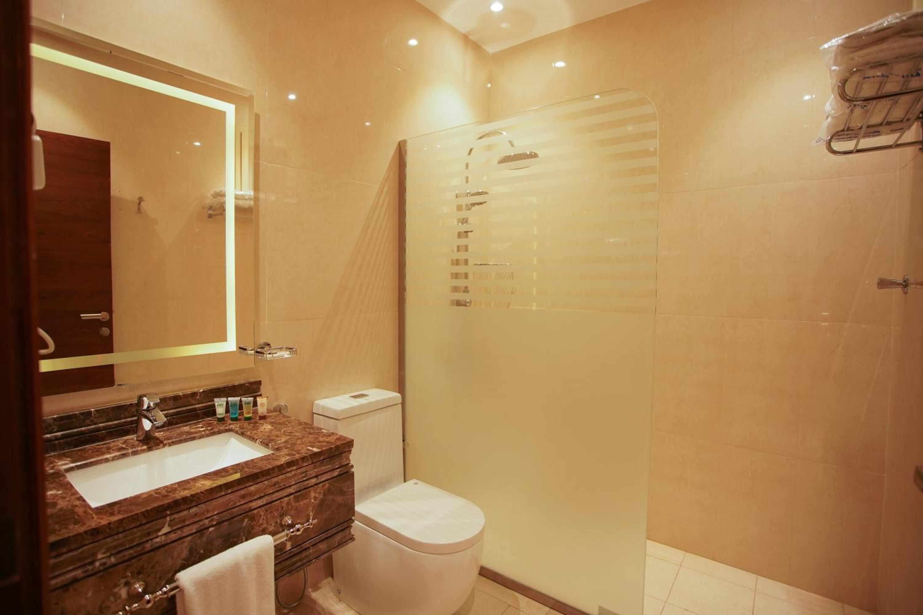 عدم وجود مناشف في دورة المياه، وتم توفيرها بعد الطلب من الاستقبال.