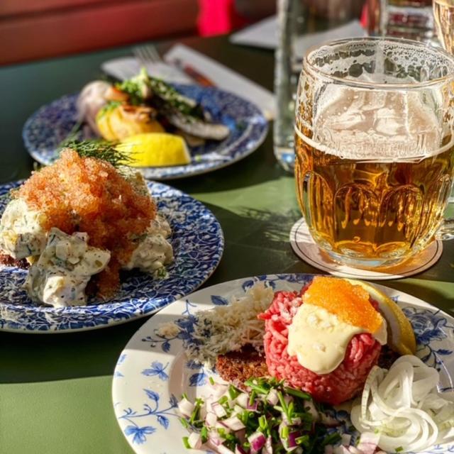 Vi åt fyra smörrebröd i restaurangen på kvällen. Tre utmärkta, en mindre bra med senig rostbiff.