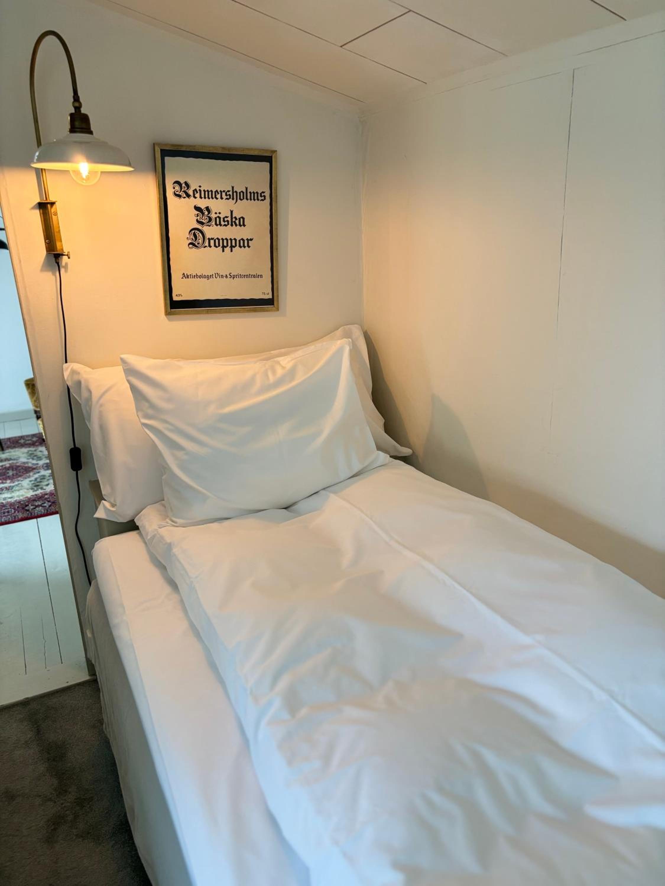 Enkelsäng, vilket jag inte uppfattade när jag bokade. Bra men lite väl enkel frukost.