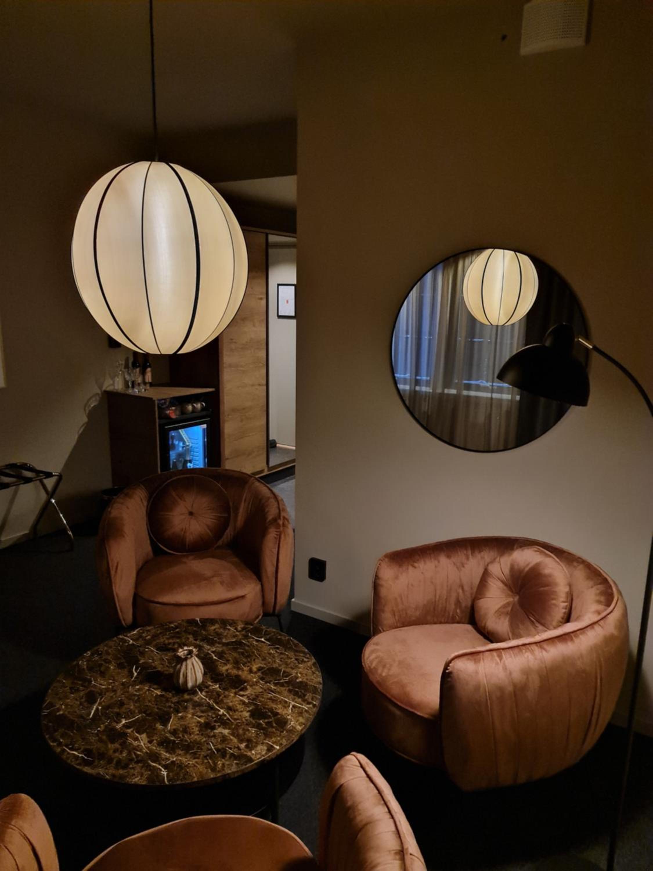 Der er meget mørkt på værelser og isærdeleshed i restauranten, vi måtte bruge lys fra vores mob. for at læse menukortet.