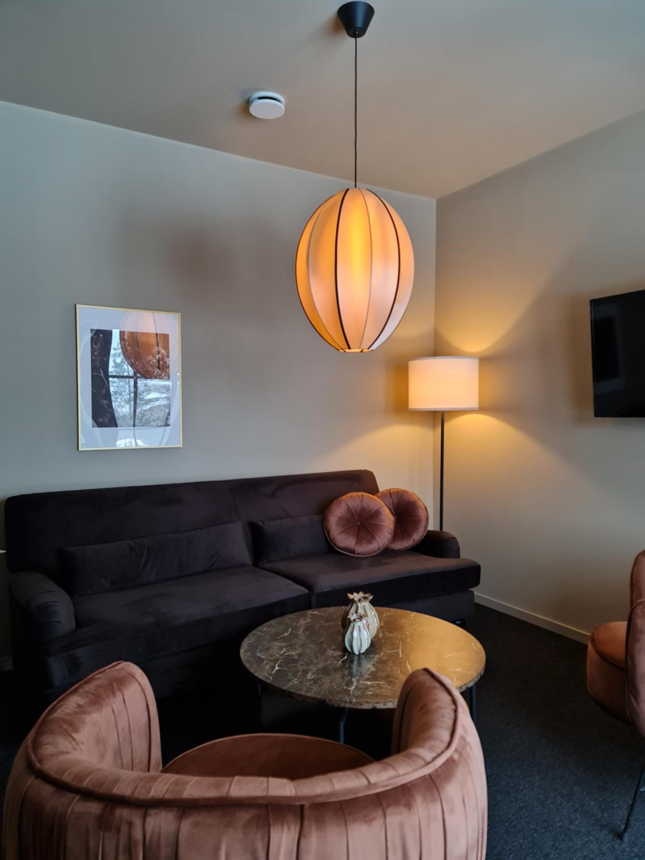 Att det låg nära backen och så mysig inredning, gillar stilen