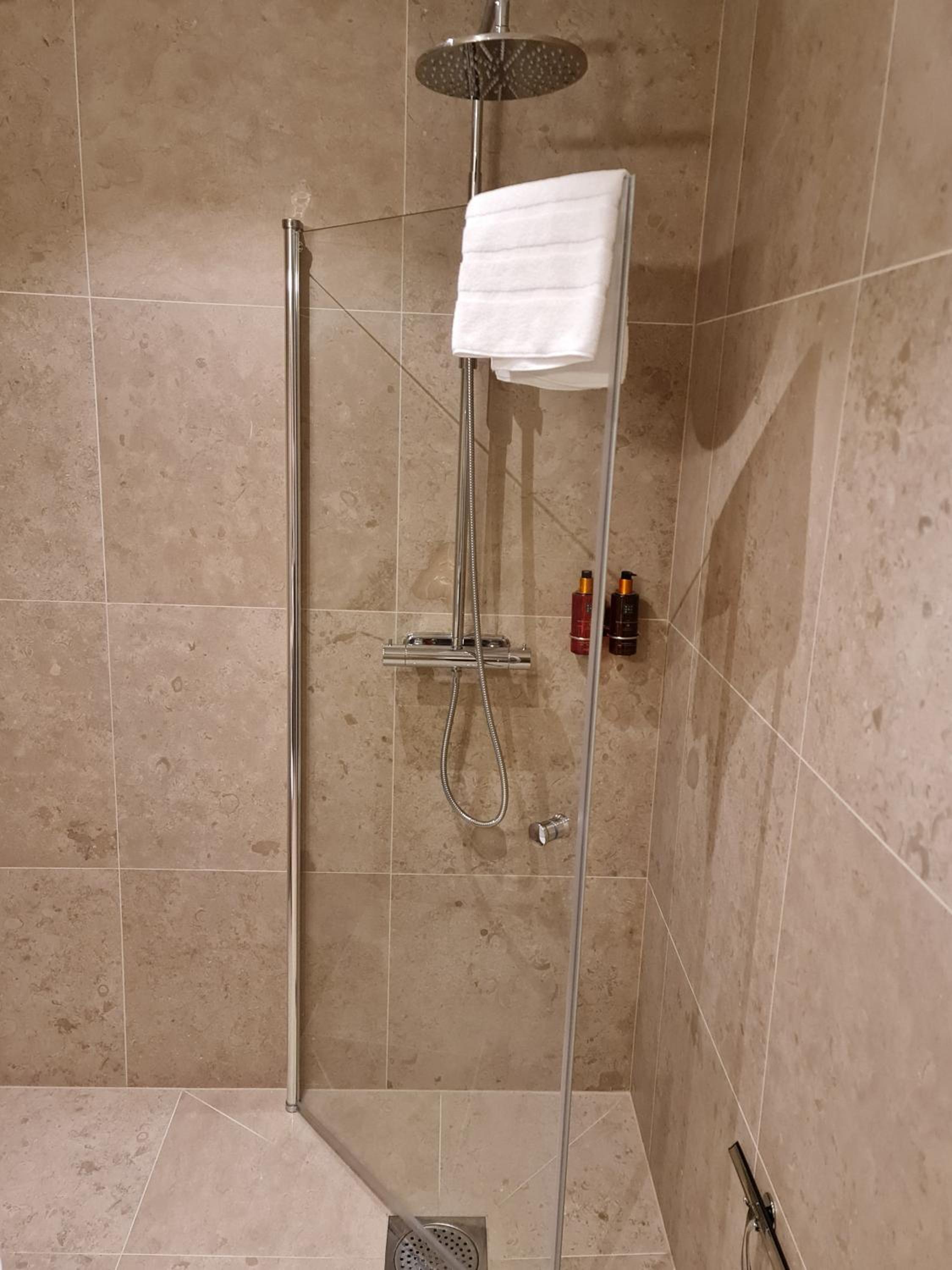 Schampo saknades i bastuavdelningen. Infrabastun var trasig men övriga två var bra. Fönstret fungerade som ljusinsläpp men inte mer.