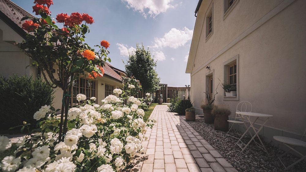Enjoy the seasonal outdoor pool and terrace with a view from the garden.