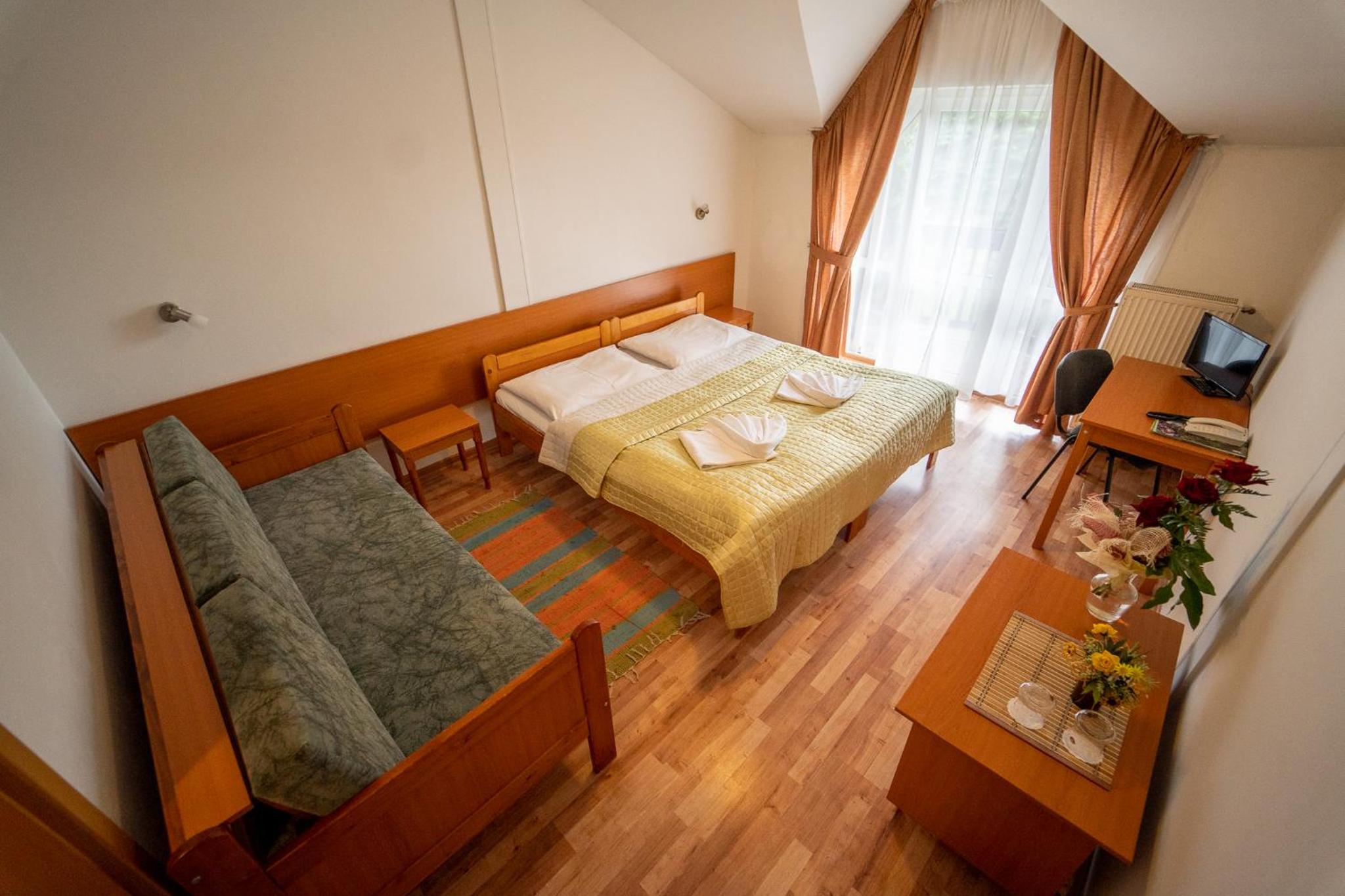 Všetko bolo v poriadku, na izbe nič nechýbalo, postele pohodlné z izby pekný výhľad. Raňajky bufetové stoly, výbor bol dostačujúci.