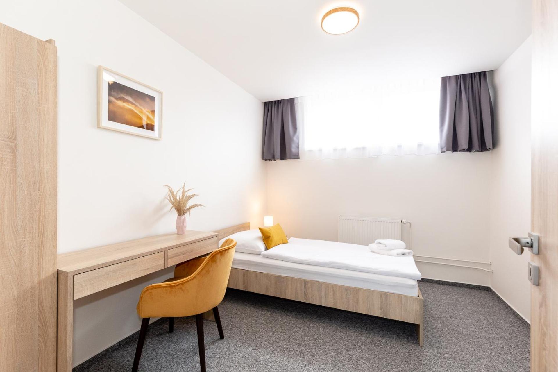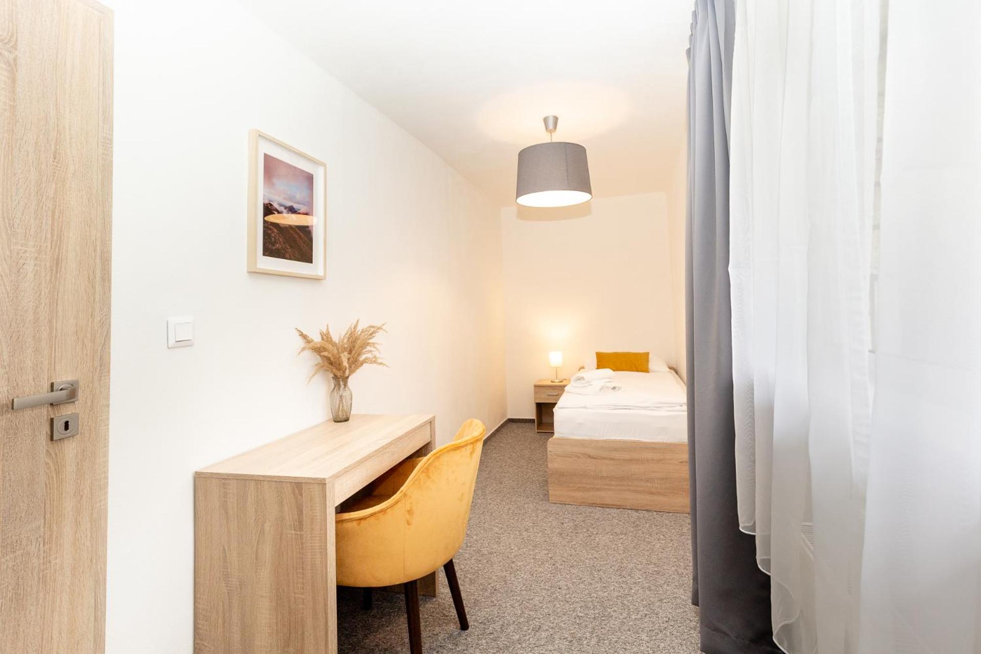 Úložný priestor na oblečenie vo väčšej izbe nedostačujúci pre dve dospelé osoby.