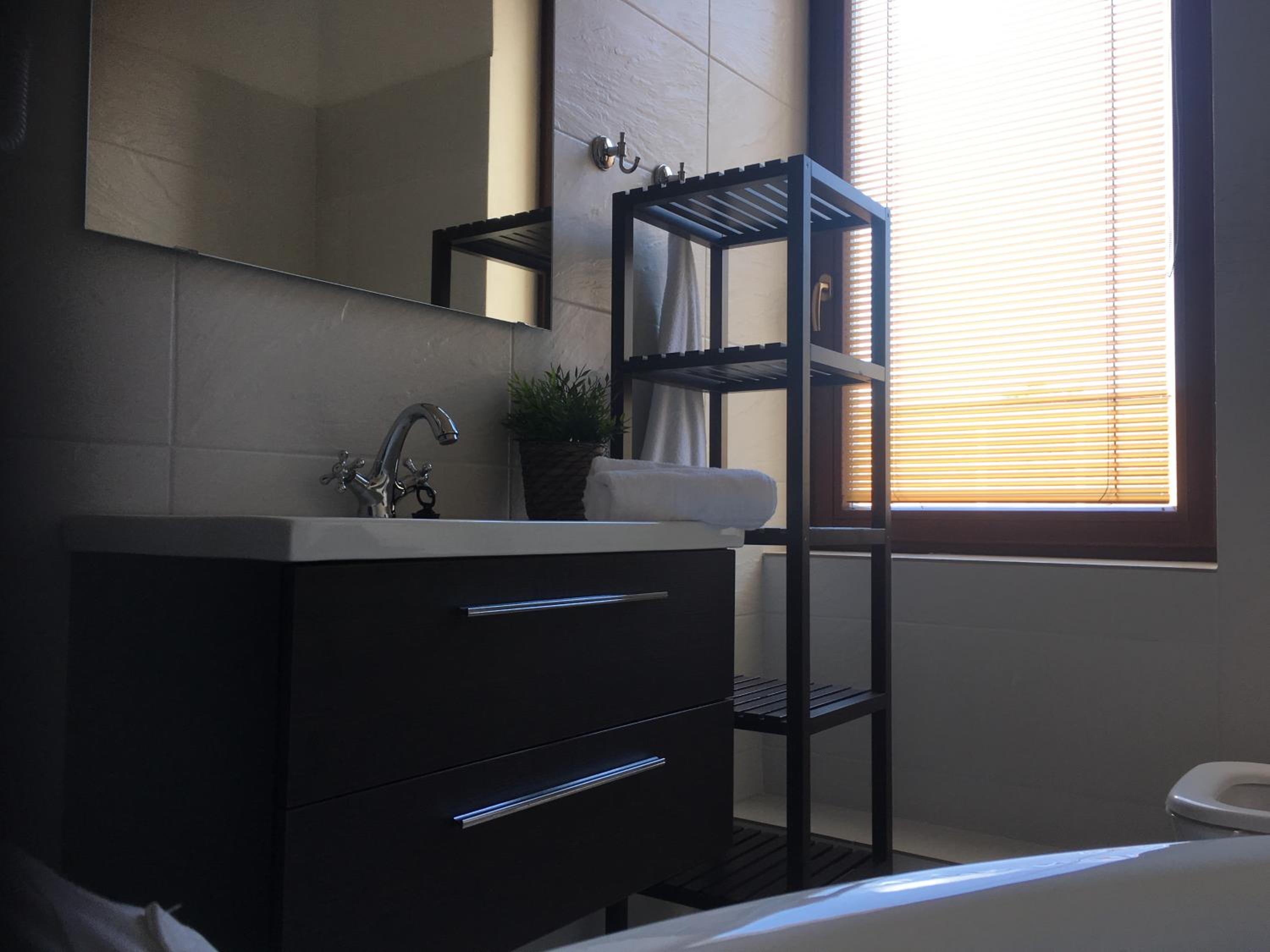 Malé nedostatky v kúpeľni, špáry. Chladná izba po príchode, s radiátorom ok. Hrana postele ma dosku.