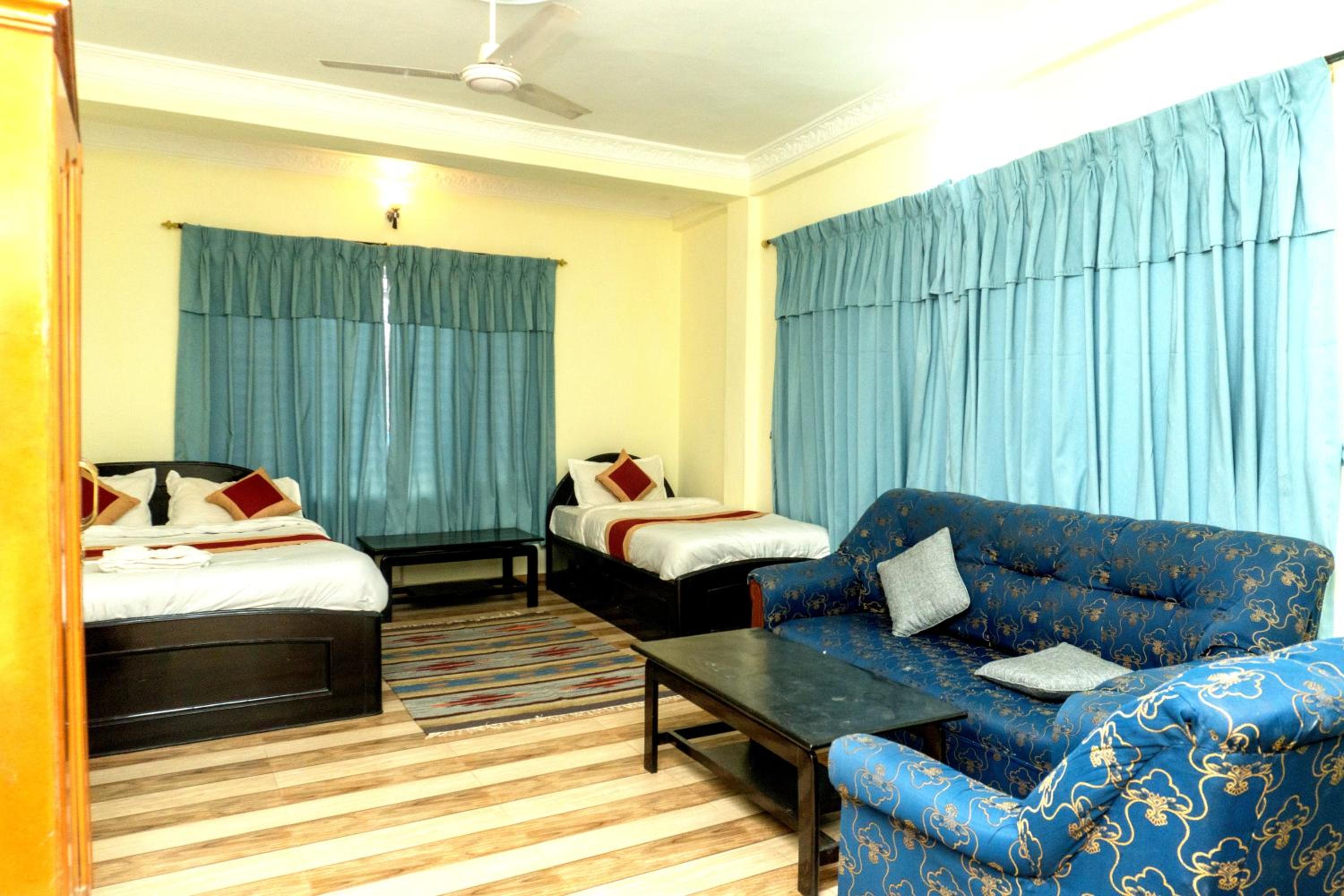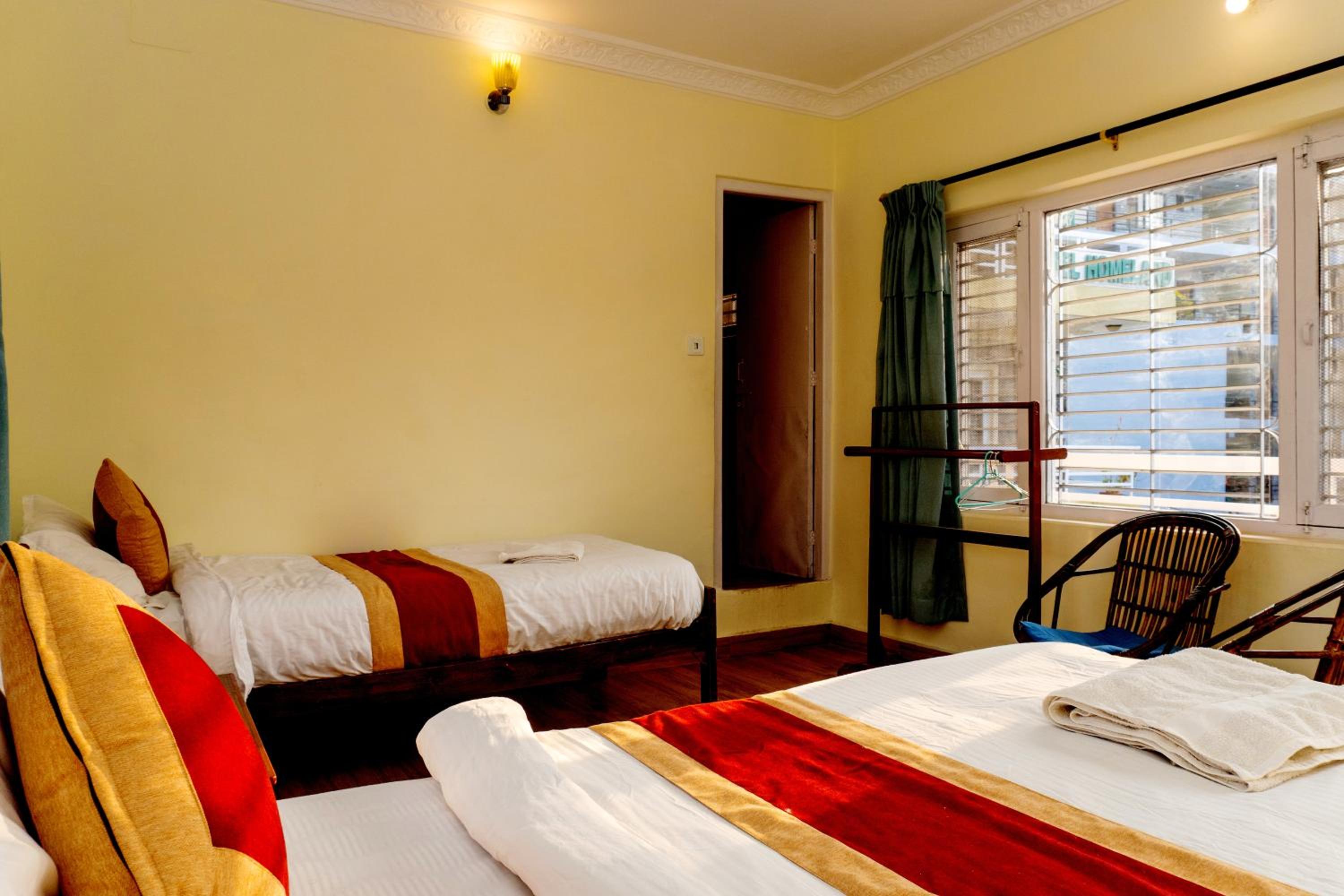 Relax in our cozy rooms equipped with essential amenities and enjoy the convenience of room service during your stay. Indulge in a variety of cuisines including American, Indian, and Nepalese dishes at our on-site restaurant, with vegetarian options available upon request.