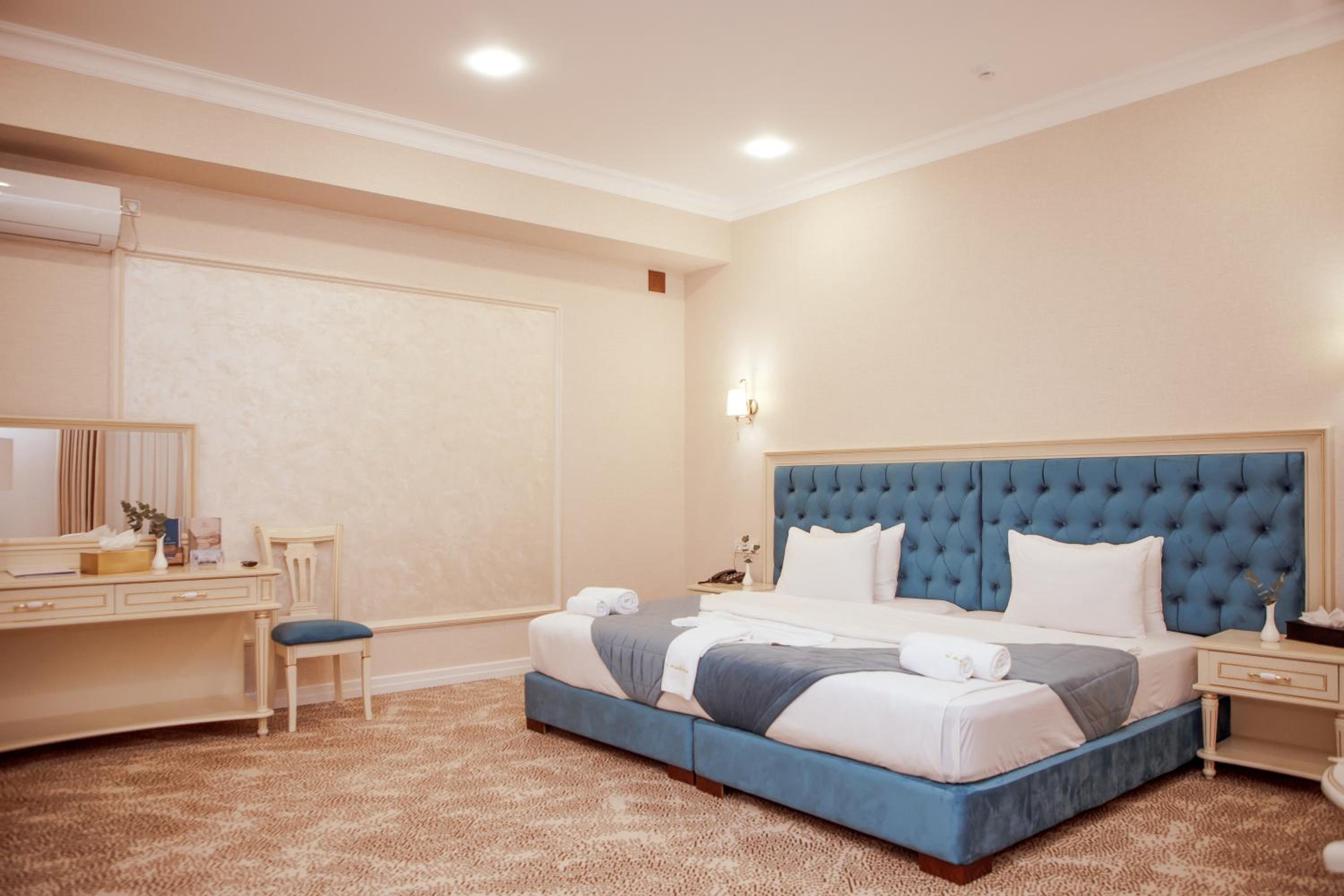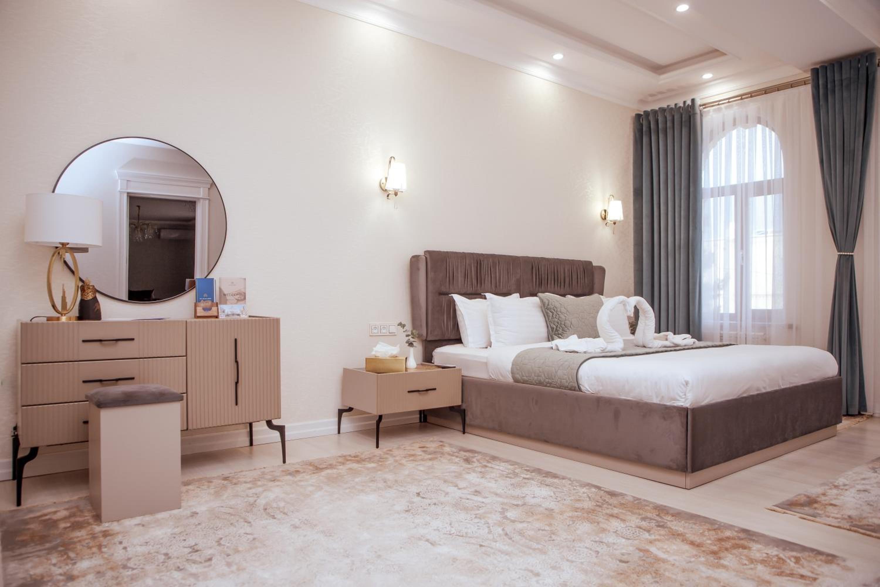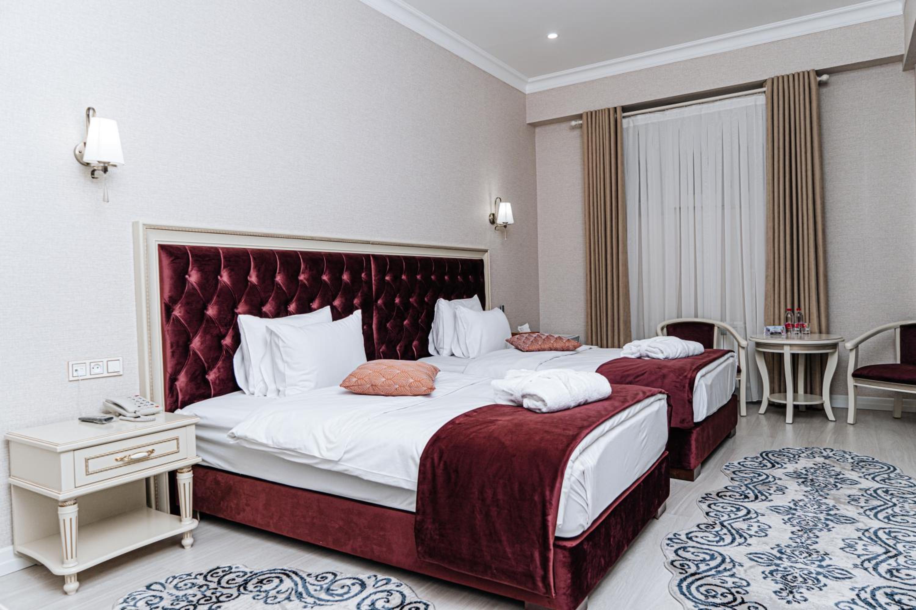 Номера большие, чистые. в номере есть халат, тапочки гигиенические наборы, полотенца. кровати большие и удобные. Сам отель очень аутентичный. в коридорах присутствуют маникены в национальных нарядах, ковры, на стенах висят тарелки , картины также в национальном стиле. Завтраки в отеле очень вкусные, голодными не останетесь точно. Персонал на ресепшене, так и в столовой, где проходили завтраки очень приветливый и всегда готовый помочь.