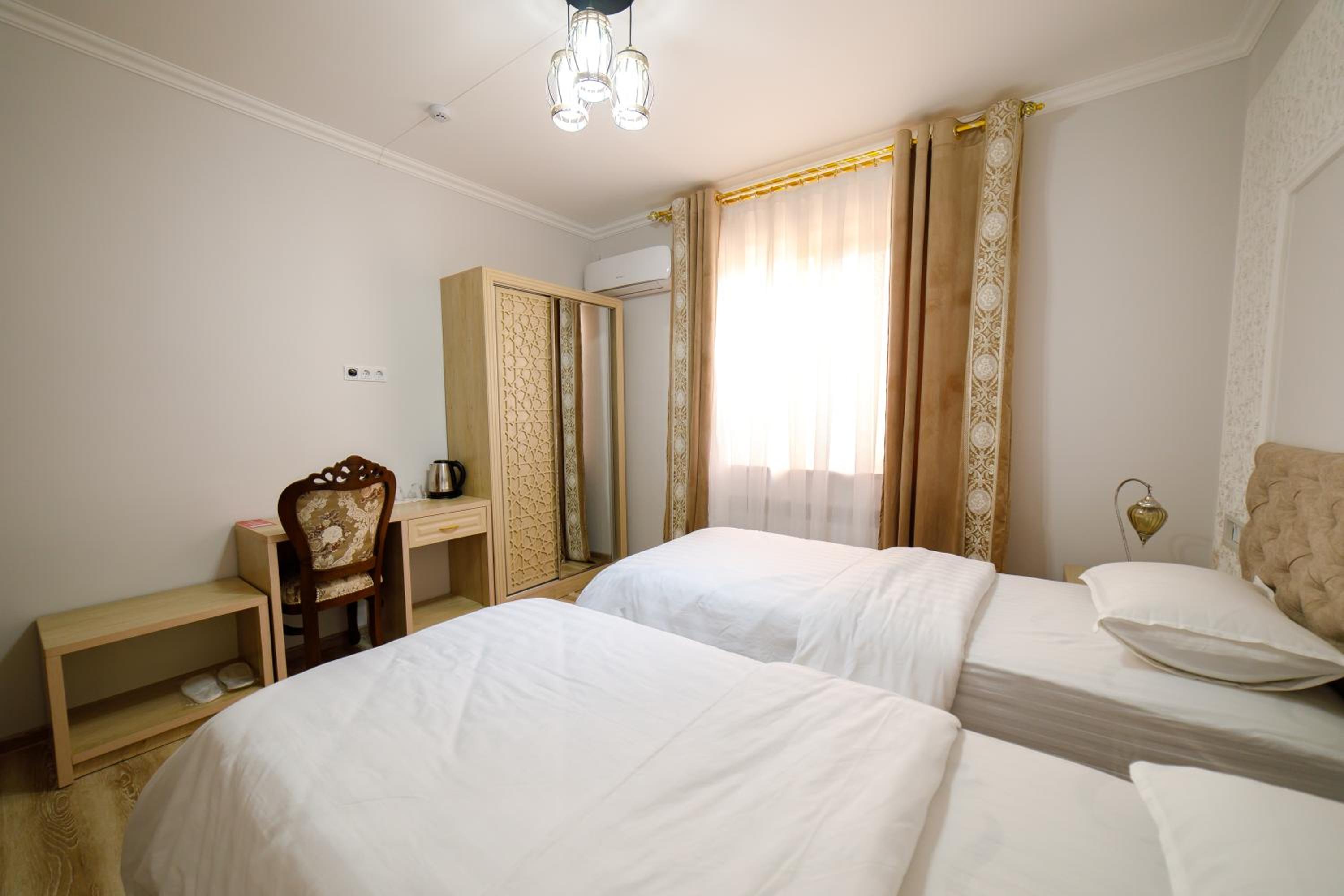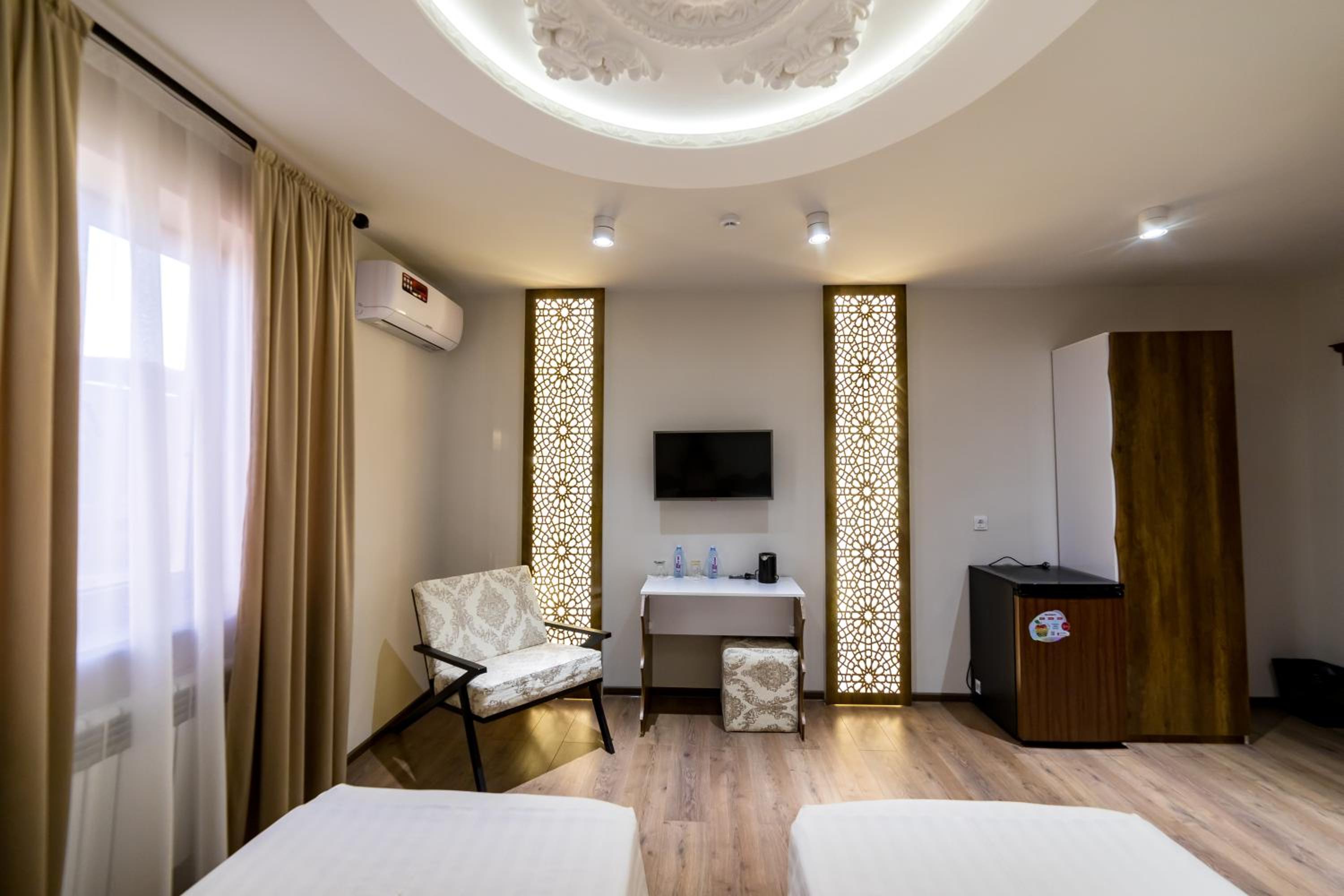 Khans Palace Hotel, nestled in Khiva, offers a luxurious stay with impeccable room service and a charming terrace. Each room is elegantly designed with a desk, private bathroom, and cozy bed linen.