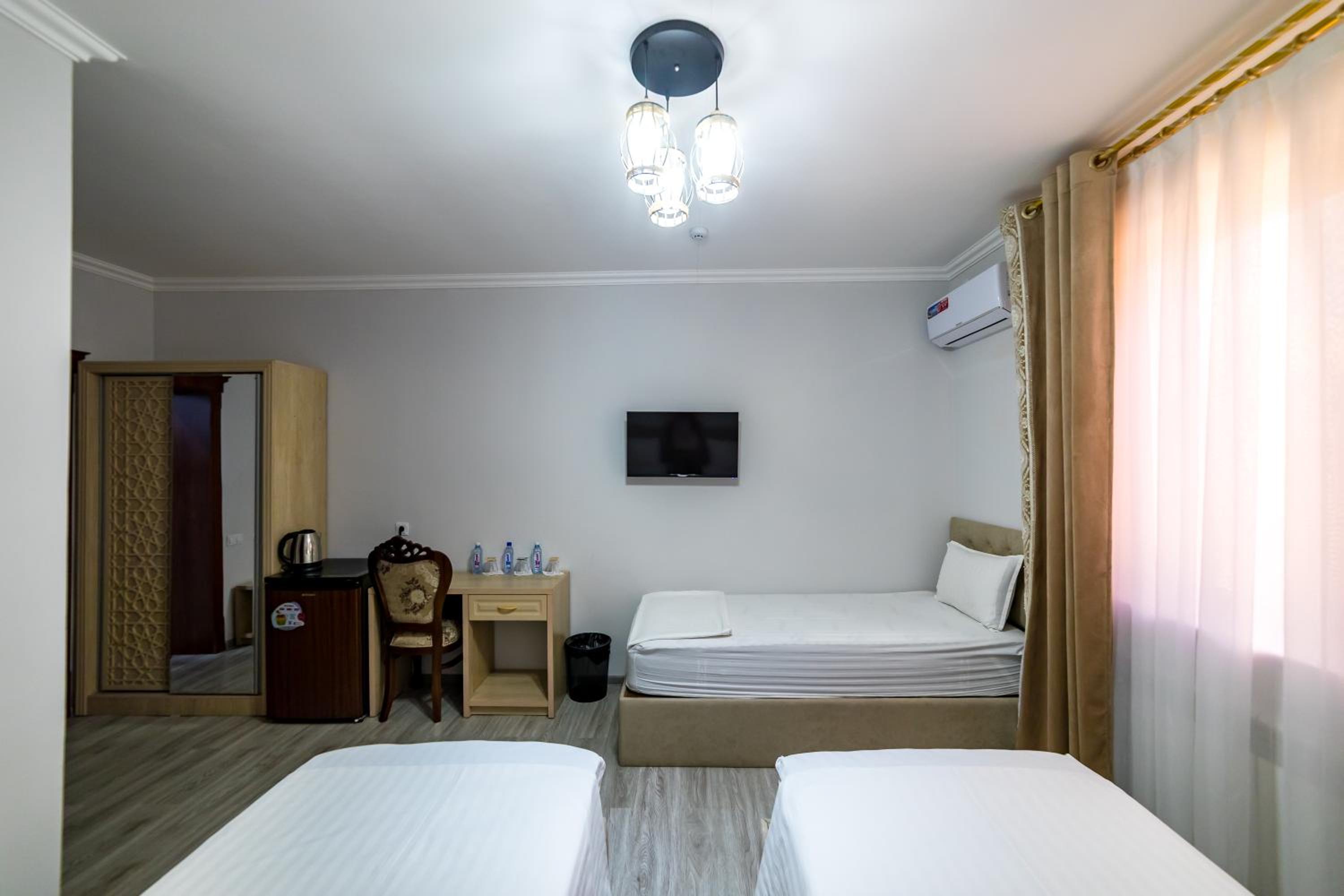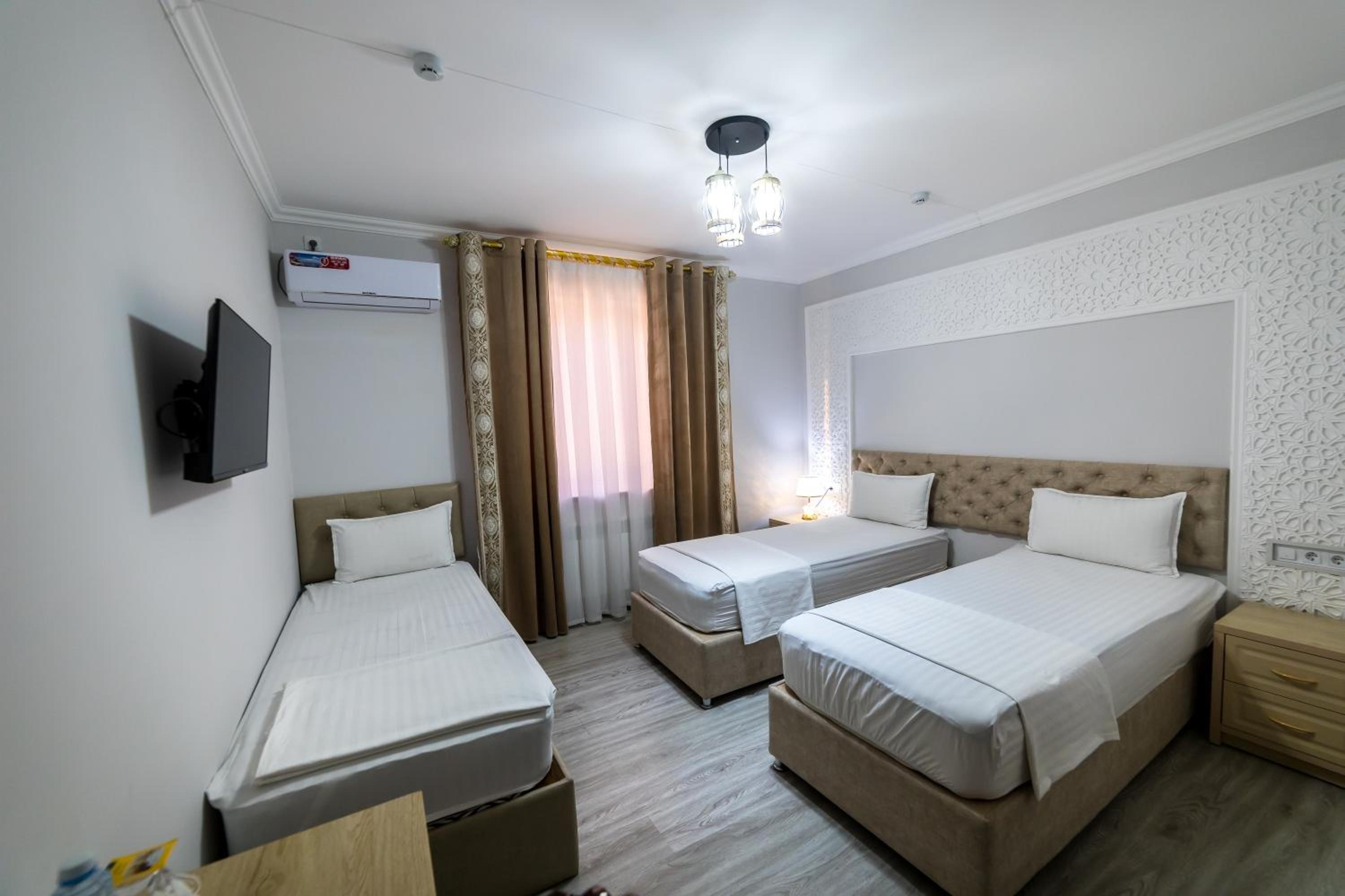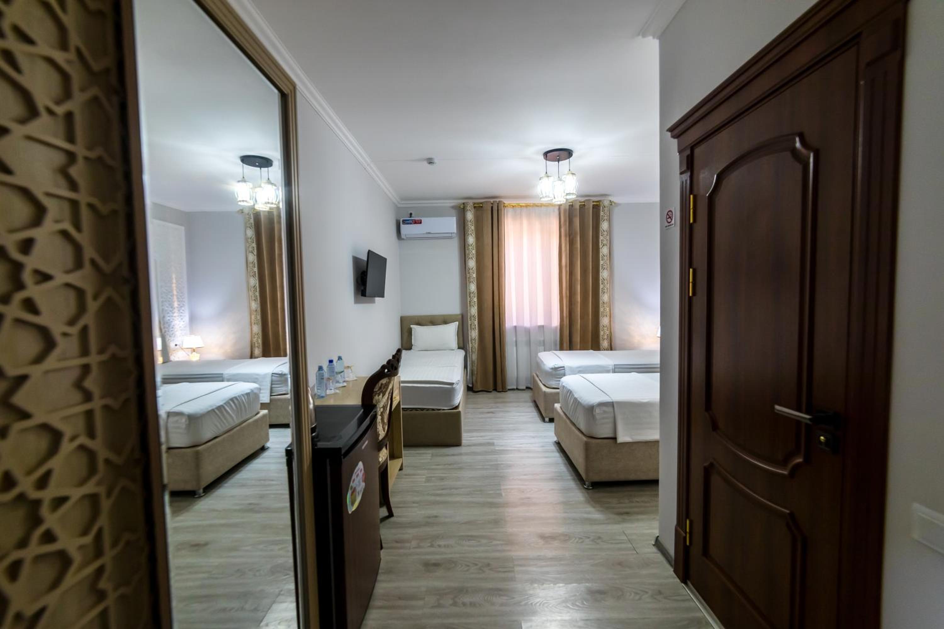 Новый, современный отель в самом сердце старого города Хива. Отличное расположение — все главные достопримечательности в пешей доступности. Персонал очень приветливый и вежливый, всегда готовы помочь. Номера просторные, кровати удобные, всё очень чисто и уютно. Остались только самые положительные впечатления от проживания. Отдельное спасибо хозяину отеля — он лично отвёз нас в аэропорт Ургенча. Всем рекомендуем этот отель, обязательно вернёмся снова!
