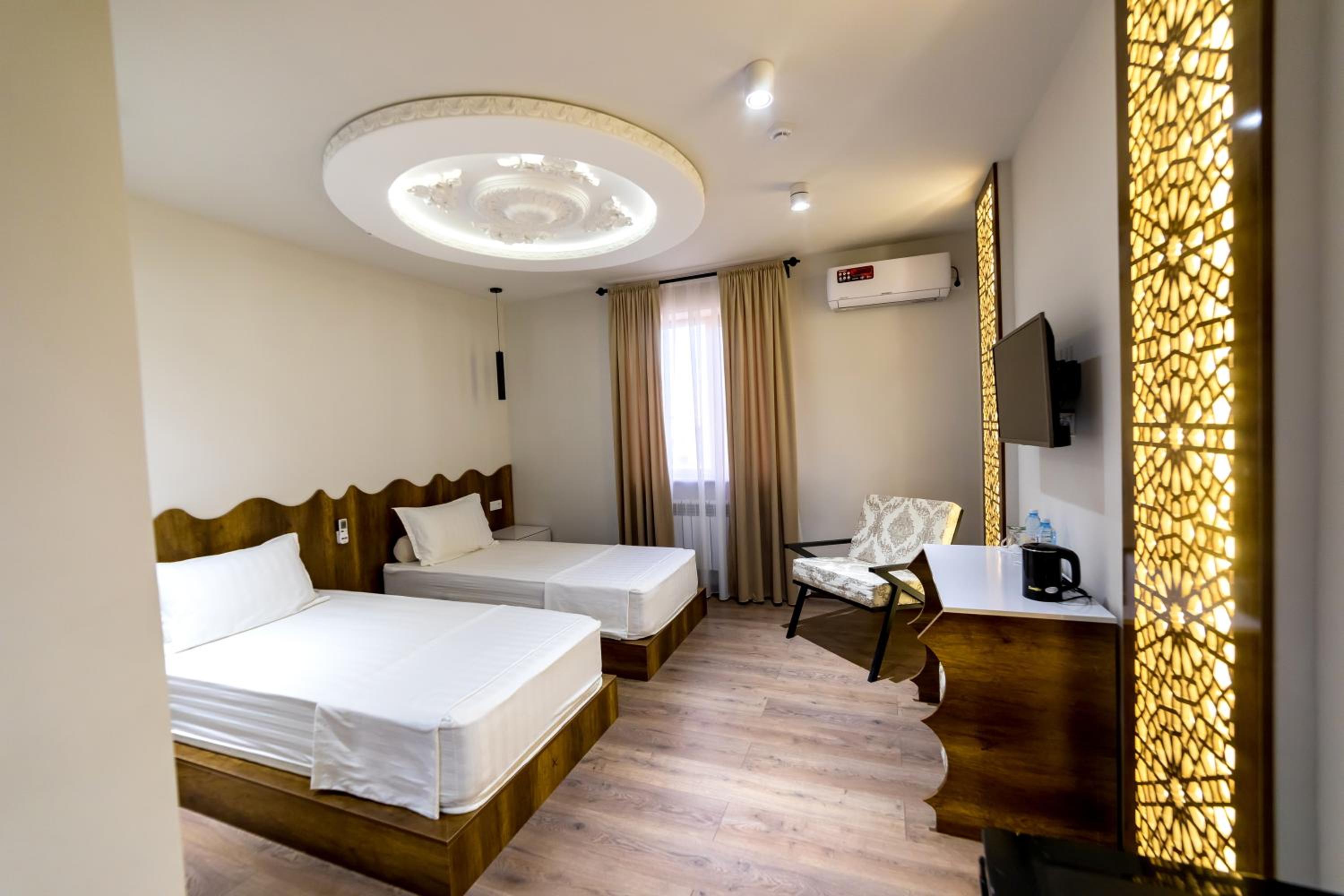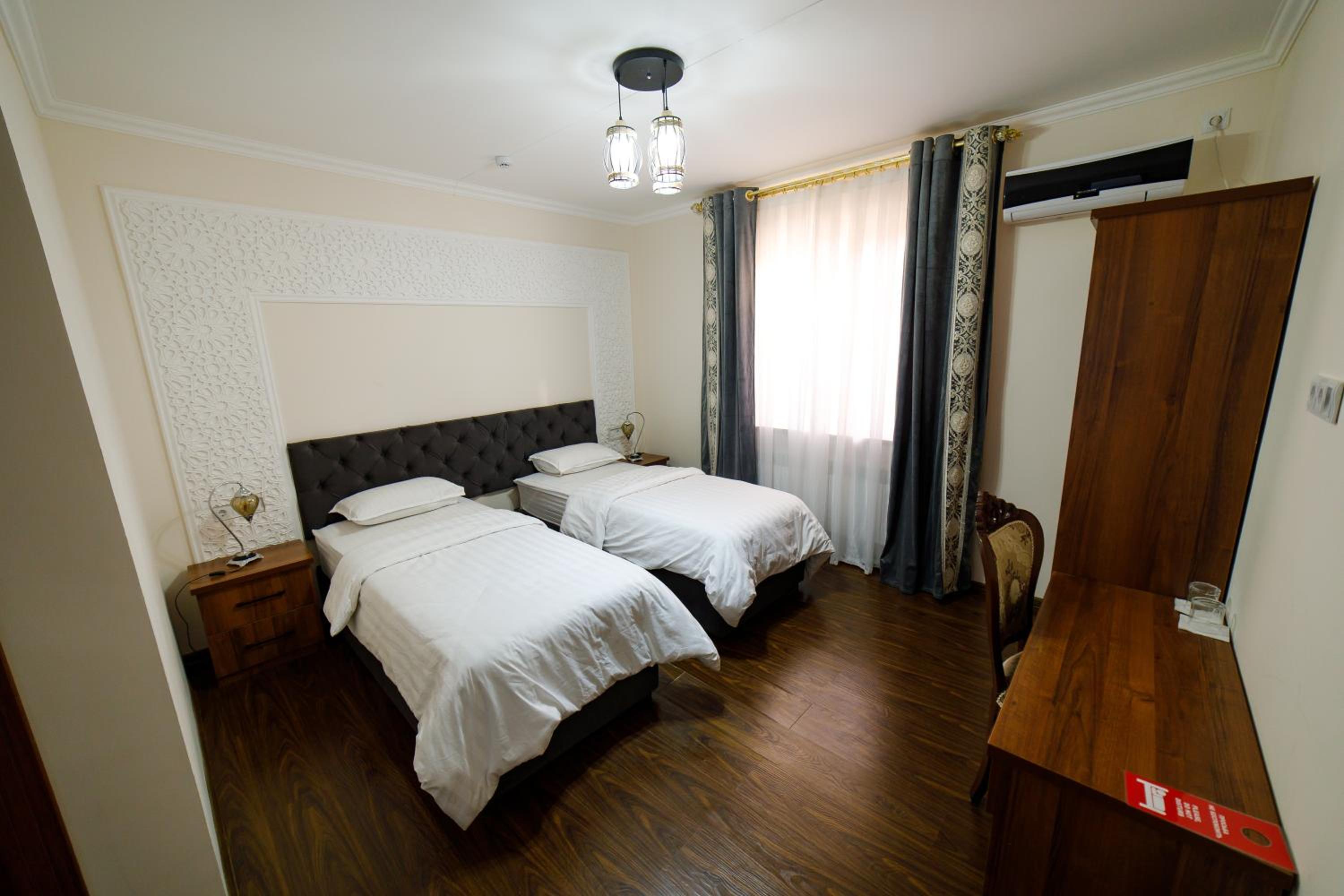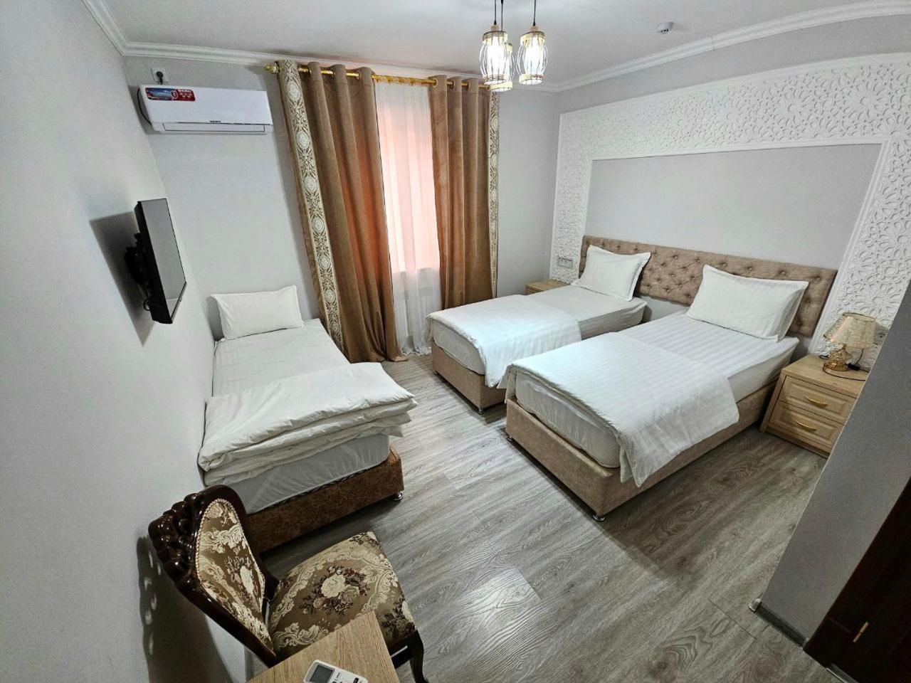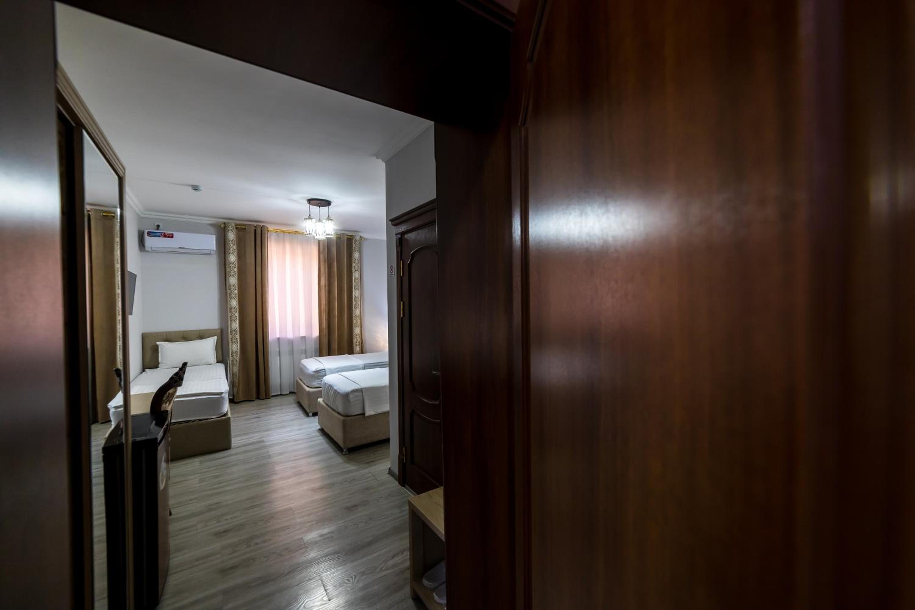 Новый, современный отель в самом сердце старого города Хива. Отличное расположение — все главные достопримечательности в пешей доступности. Персонал очень приветливый и вежливый, всегда готовы помочь. Номера просторные, кровати удобные, всё очень чисто и уютно. Остались только самые положительные впечатления от проживания. Отдельное спасибо хозяину отеля — он лично отвёз нас в аэропорт Ургенча. Всем рекомендуем этот отель, обязательно вернёмся снова!