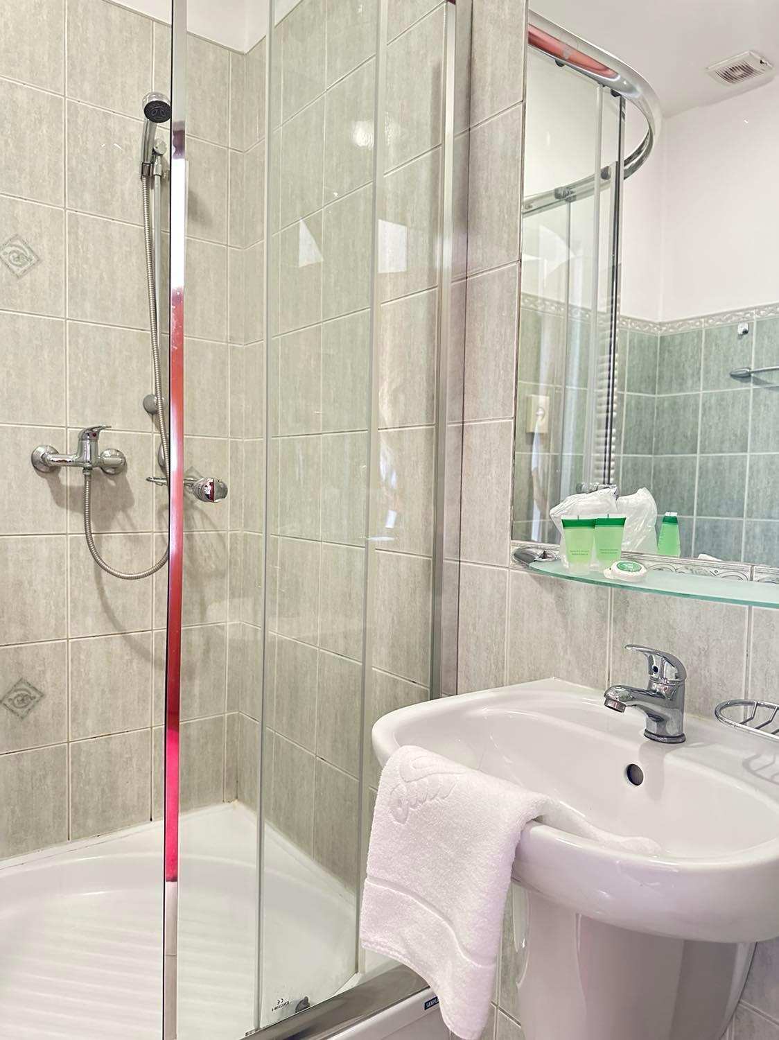 Wygodne łóżko i spora łazienka. Czysto.
