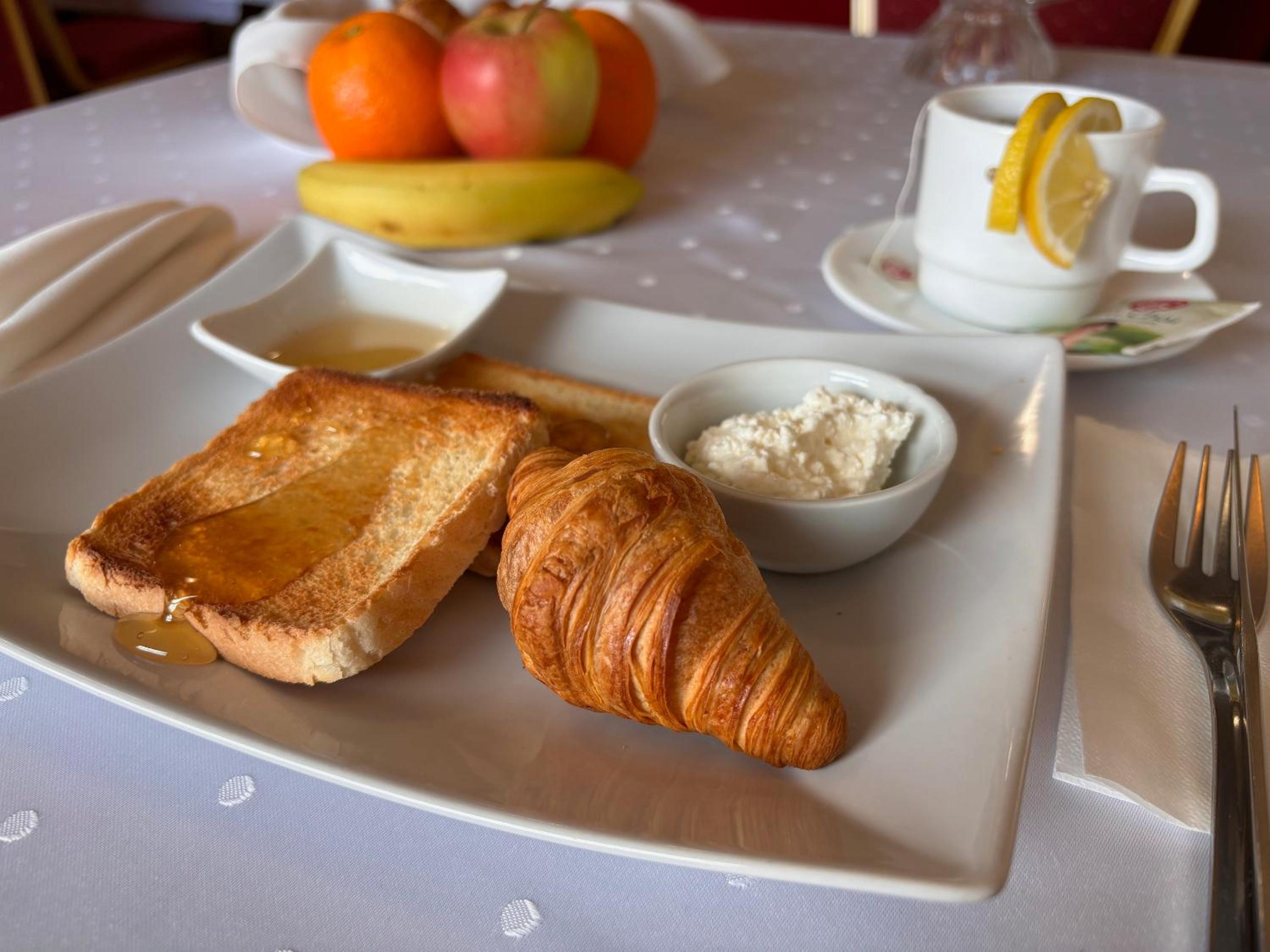 Brakefast from 7. Not comfortable bed. Very small table not good for working. Noise in the room from outside and other rooms.
