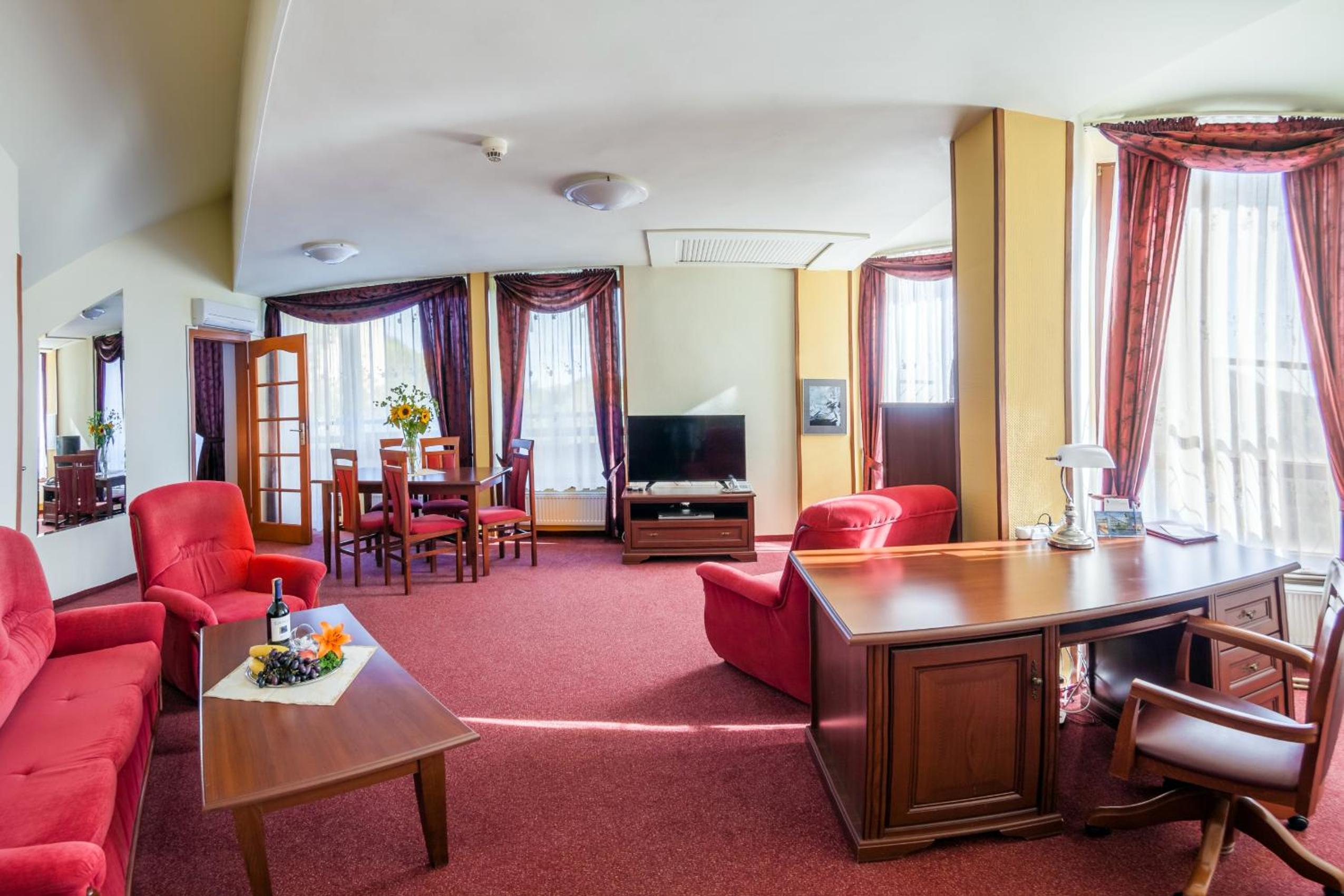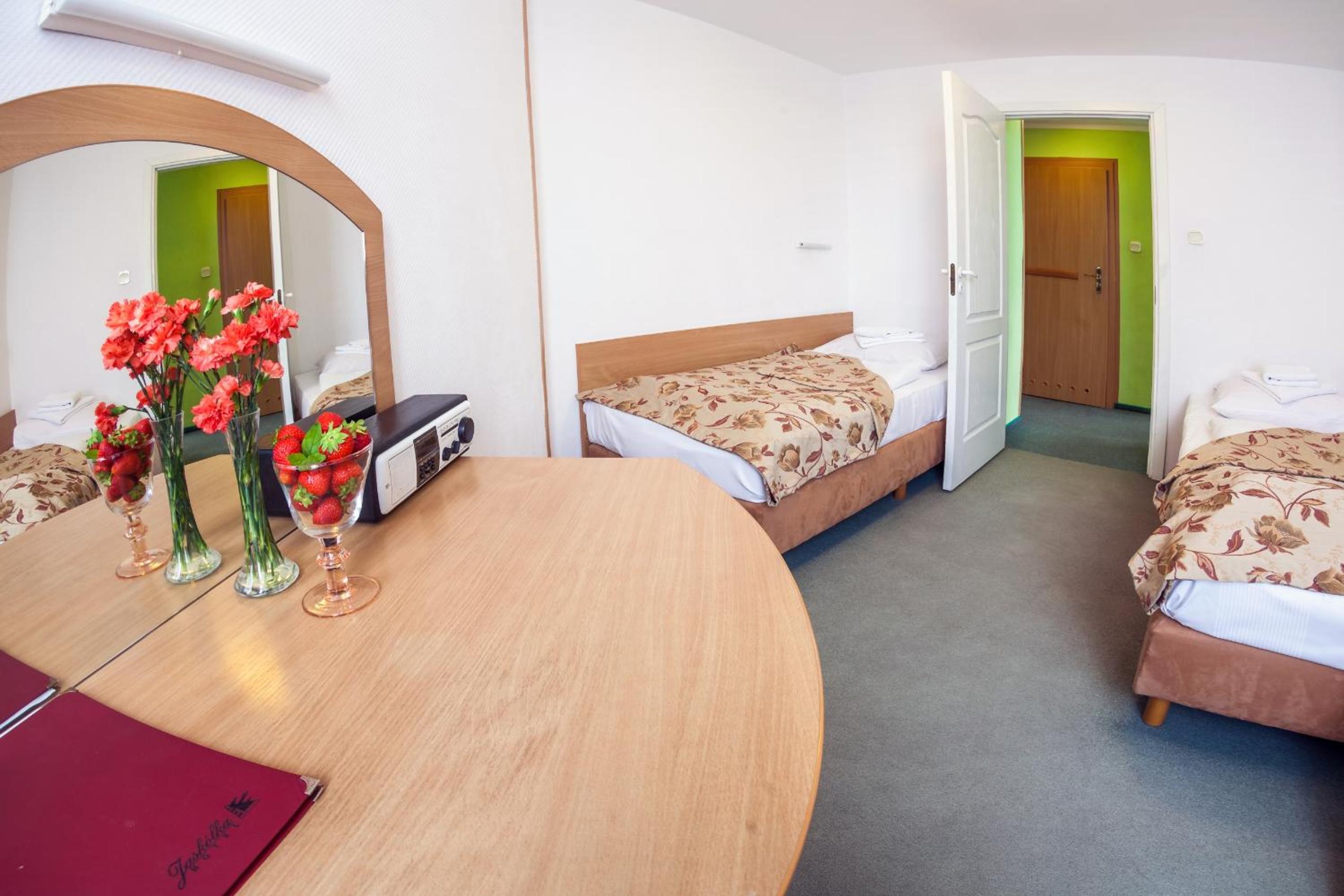 Obiekt wymaga gruntownego remontu zarówno pokoi jak I części wspólnych. Stosunek Cena/Jakość jak na ☆☆☆ słabo. Nie zrozumiła polityka z korzystaniem z sauny. NIE można bo na ZUS??? Wprowadza to gości w błąd. Potrzeba doinwestowania jeśli ma konkurować I innymi hotelami w uzdrowisku.