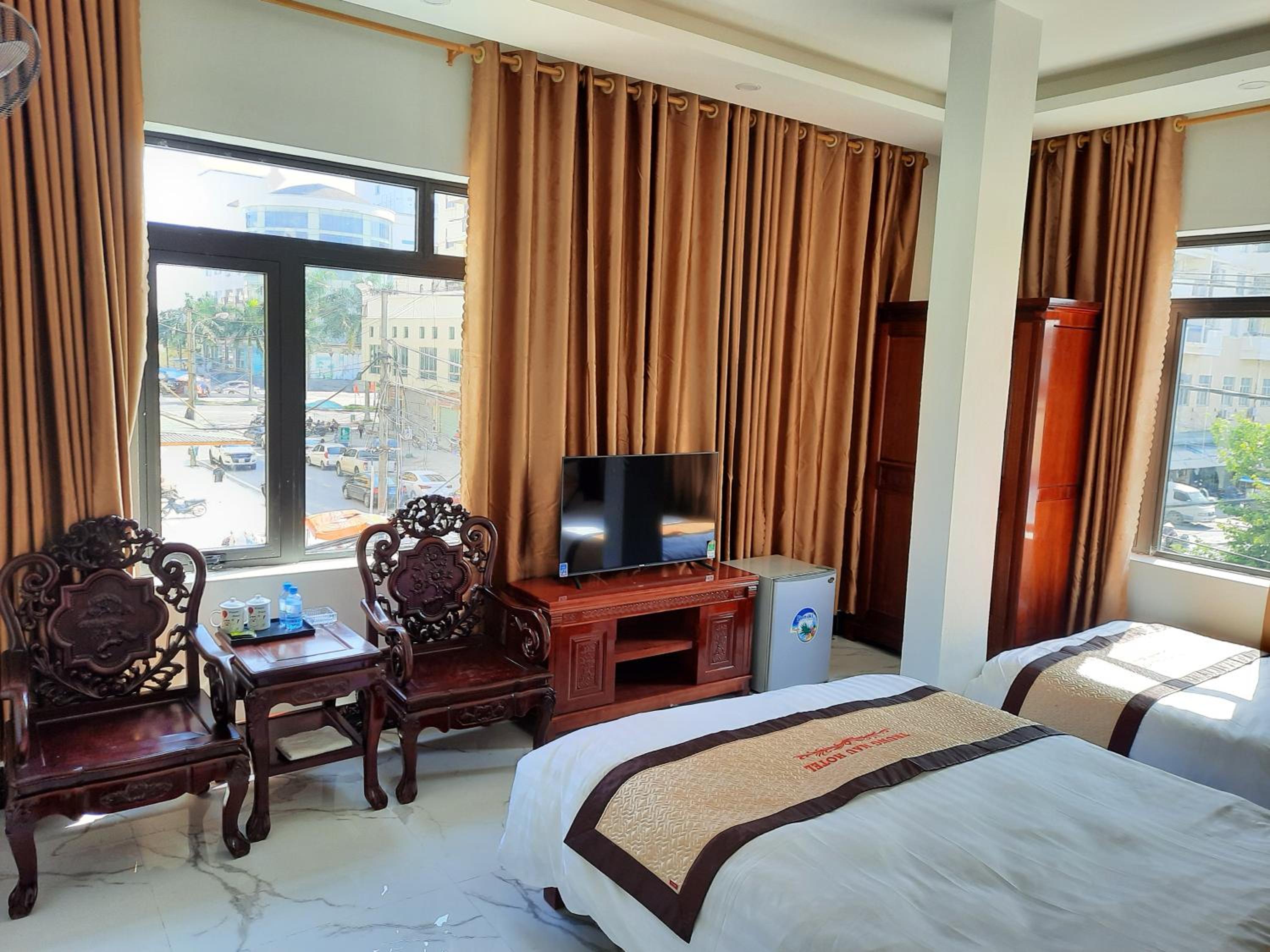 NHÀ NGHỈ TRUNG HẬU in Móng Cái offers well-equipped rooms with kettles, air conditioning, and flat-screen TVs for a comfortable stay.