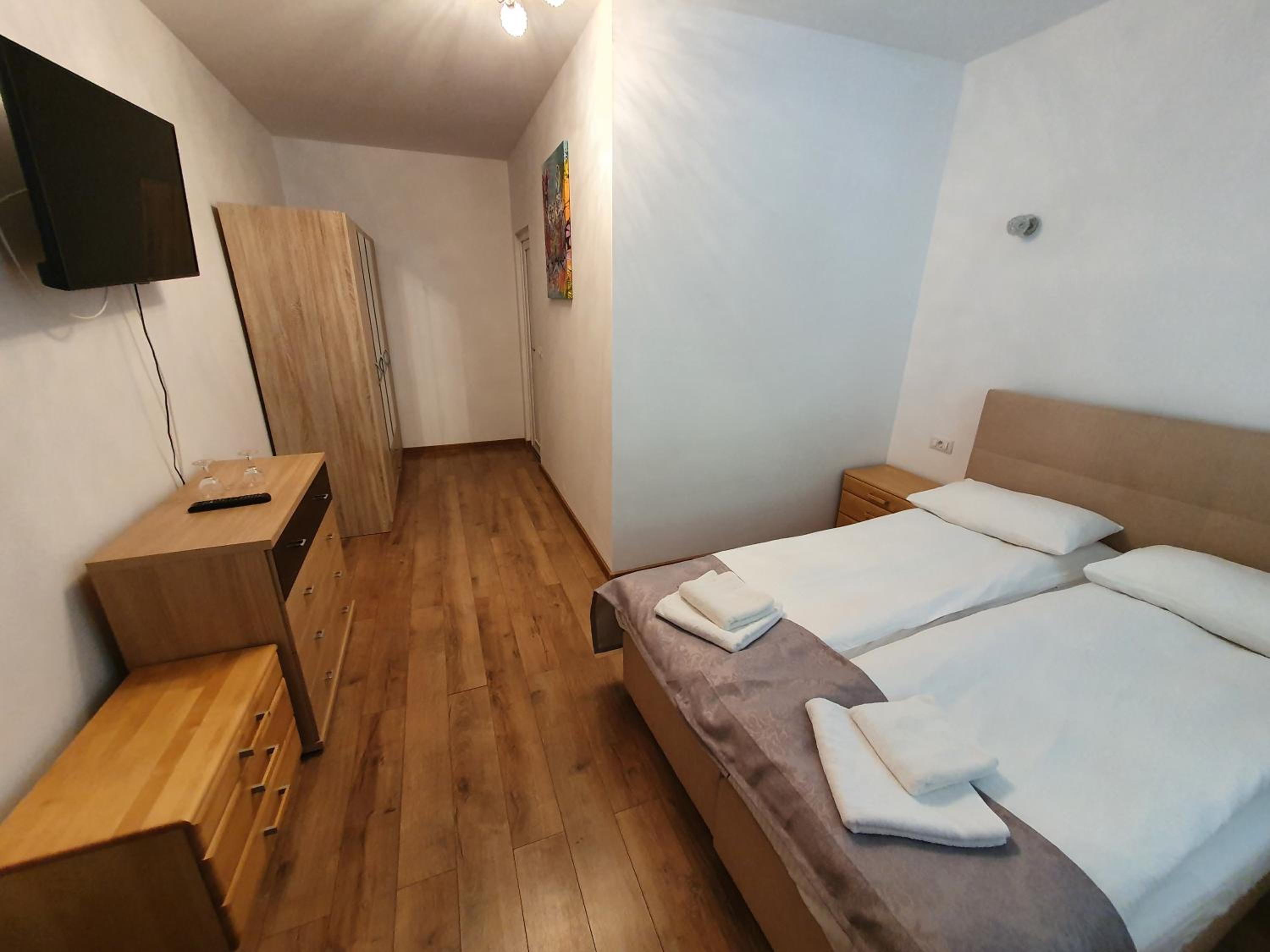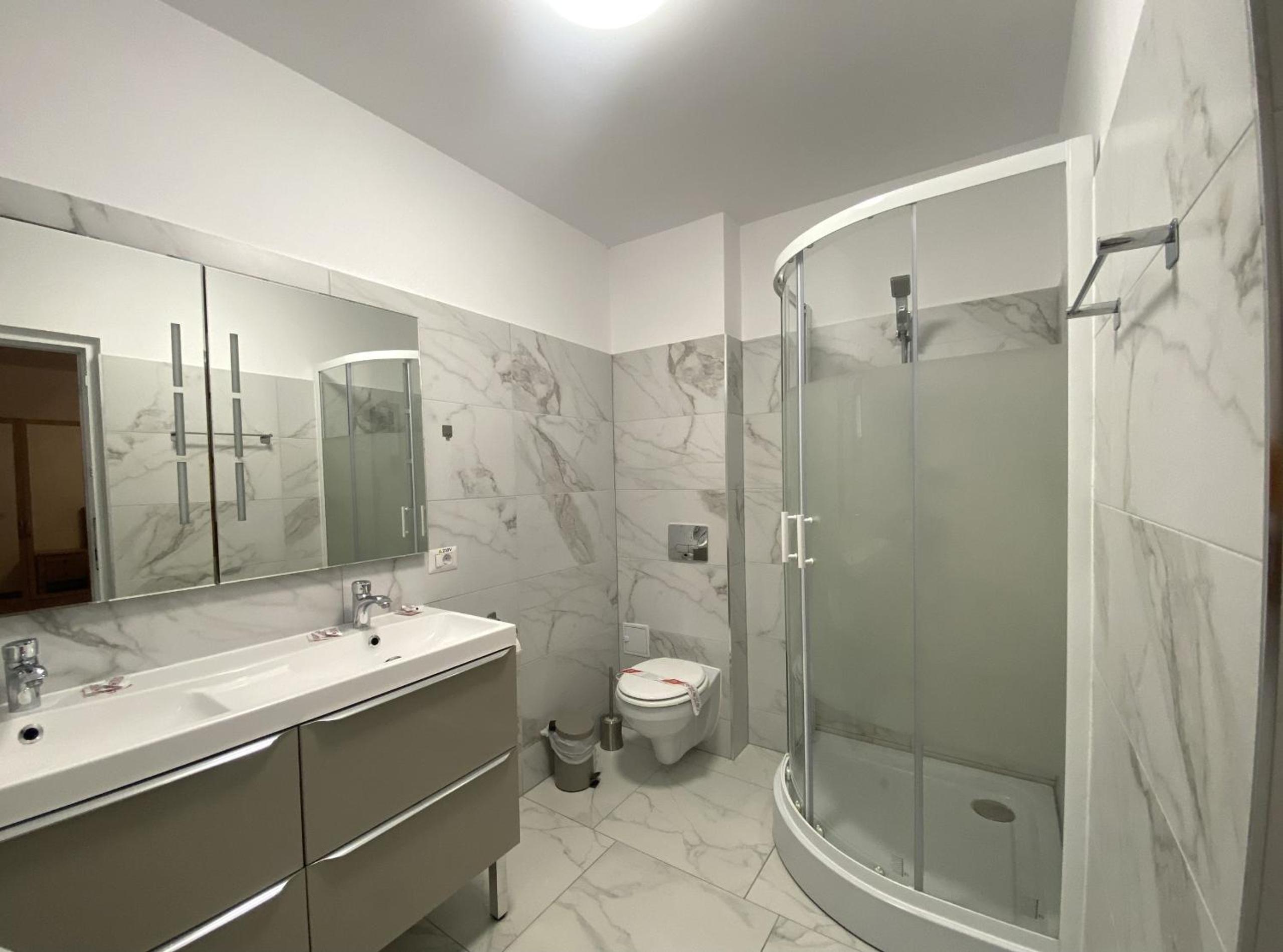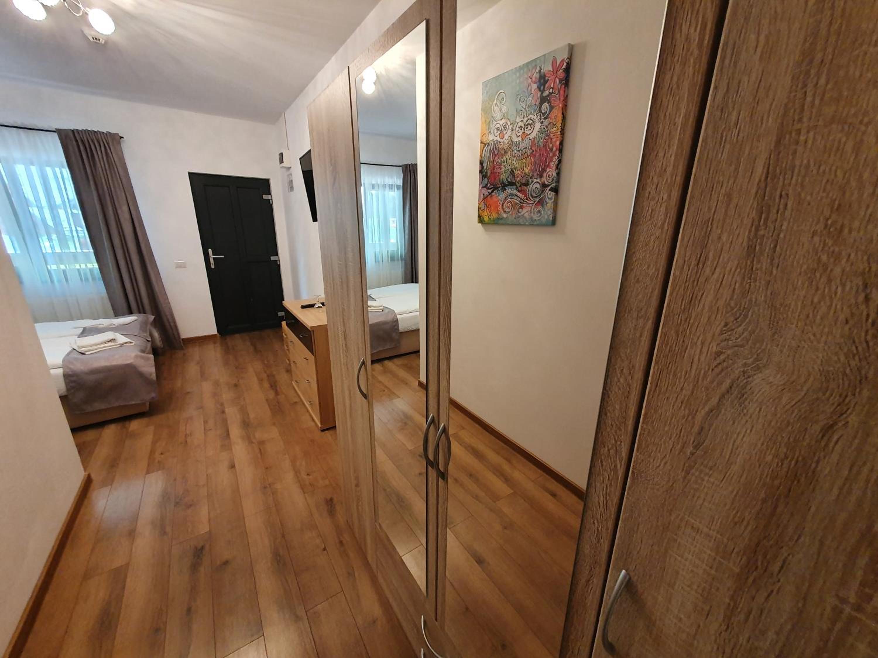 Mobilierul este puțin cam uzat , mai ales patul , cabina de duș. Mirosul de la baie poate deveni neplăcut și să fie mai pregnant chiar și în camera