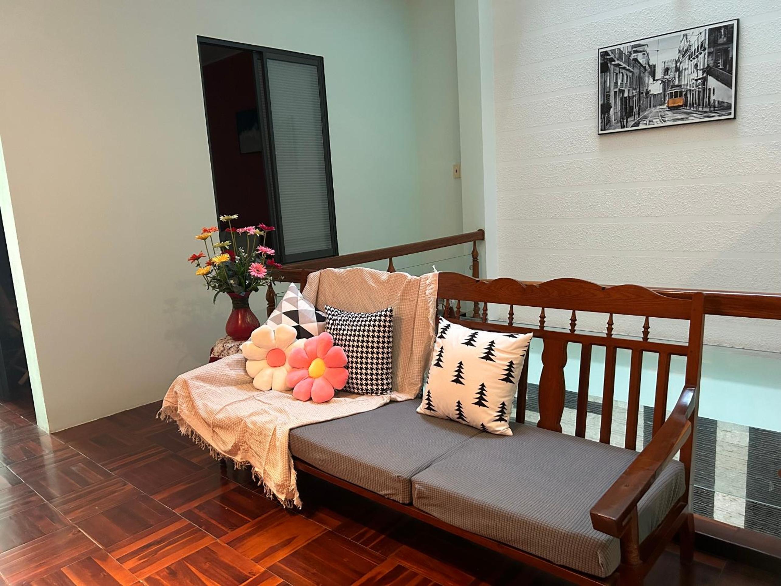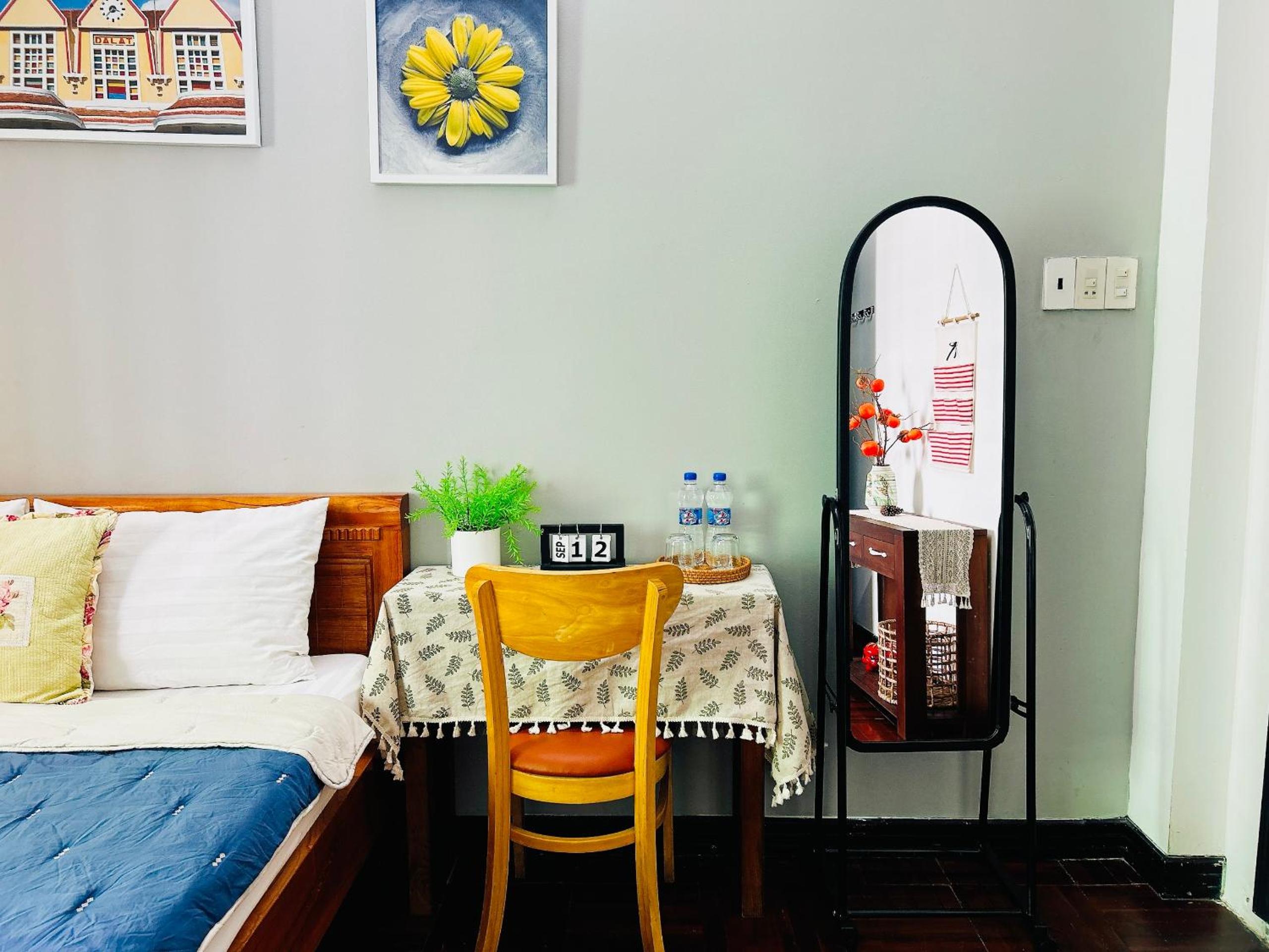 The whole house and rooms are nicely decorated making it a cute and cozy place to stay. We booked the bigger deluxe room with a big window and a little couch which was super nice! The normal double room (got it for a few days when the deluxe was not available) was nice too. The one we were in had a window facing a well-lit hall, but some rooms don't have one. Bathroom is clean and hot water works great. Shared kitchen a bit cluttered since it's a homestay but it has everything including a drinking water filter. Owners don't speak much English but they are really nice and helpful, just use Google translate. Bike rental for a good price. Location is perfect - 10 mins to the beach, 5 mins to V Mart and other shops, plenty of cafes and food around, a quick cheap ride from the train station.