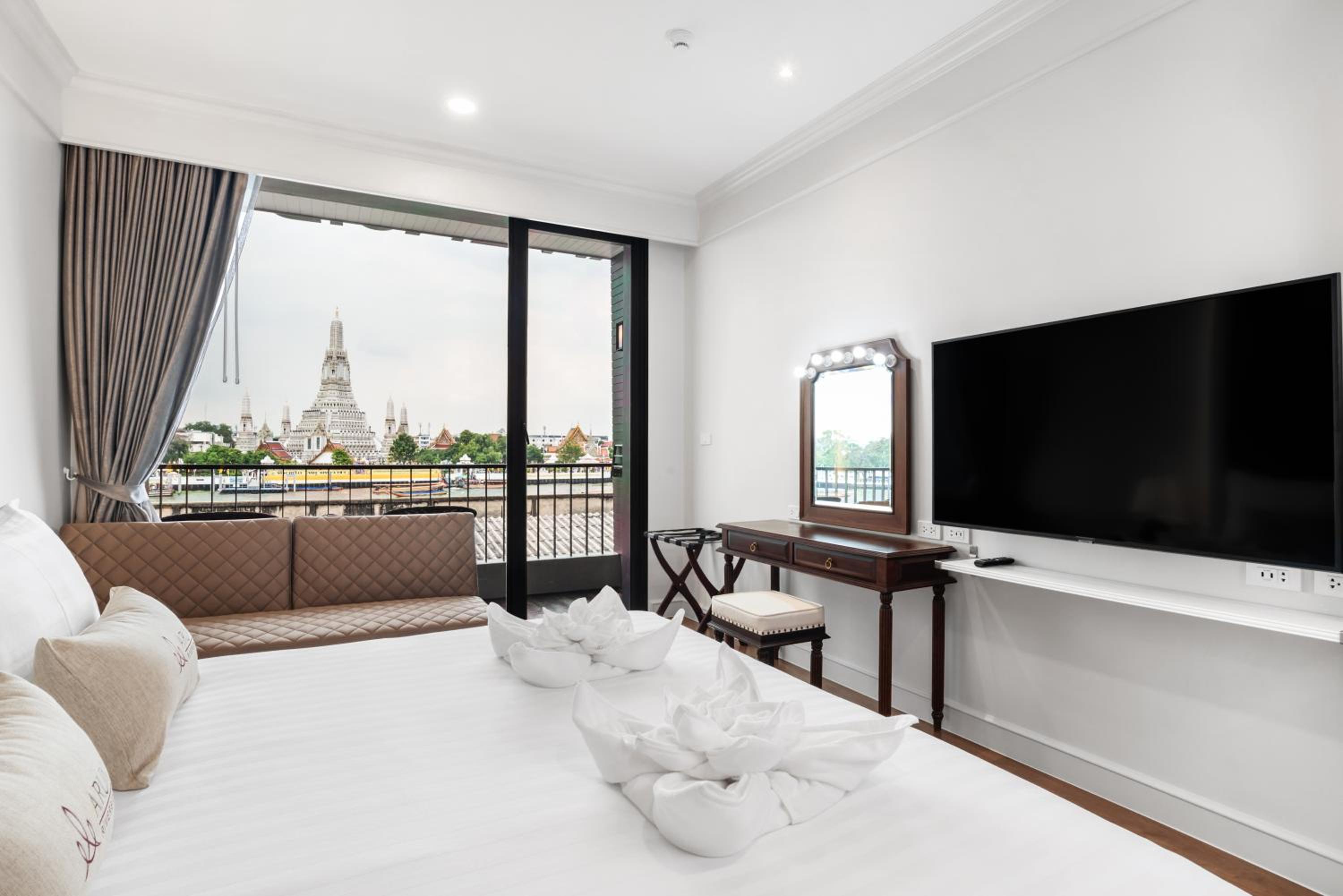 ARUN Riverside Bangkok offers air-conditioned rooms with modern amenities like a flat-screen TV, minibar, and private balcony. Each room is elegantly furnished with comfortable bedding and a spacious private bathroom.