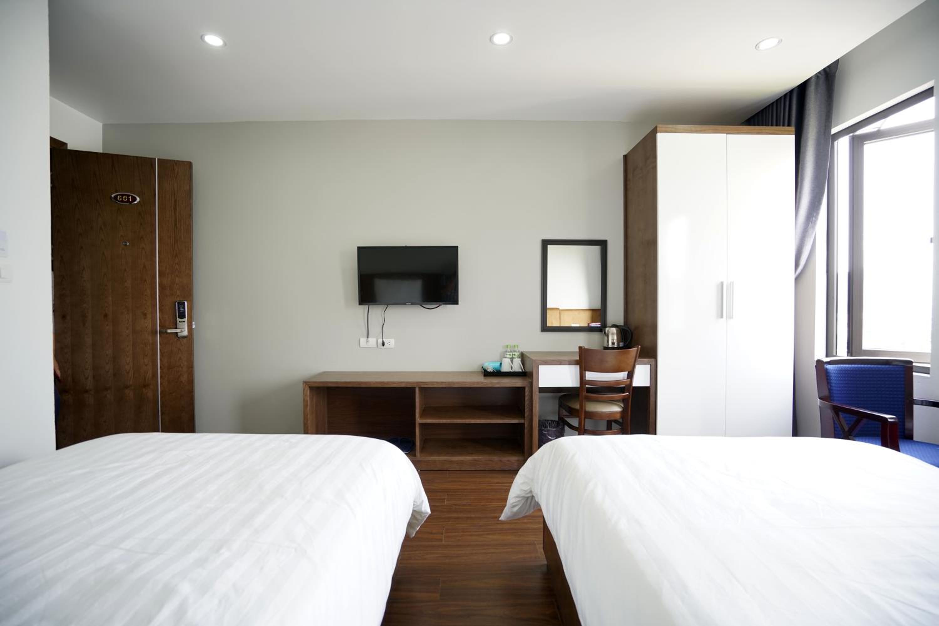 The receptionist Thao helped us a lot with arranging tour and our transport. She was very kind and helped us with a list of locations to explore locally as well. The hotel is neat and clean. Location is also good if you want to do the halong bay tour from here.