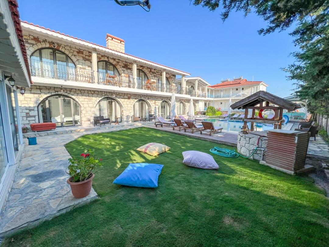 Serene Surroundings: Gonulhan Hotel, just a short stroll from Alacati's bustling town centre, boasts an outdoor pool and hot tub nestled in a spacious garden, perfect for relaxation.