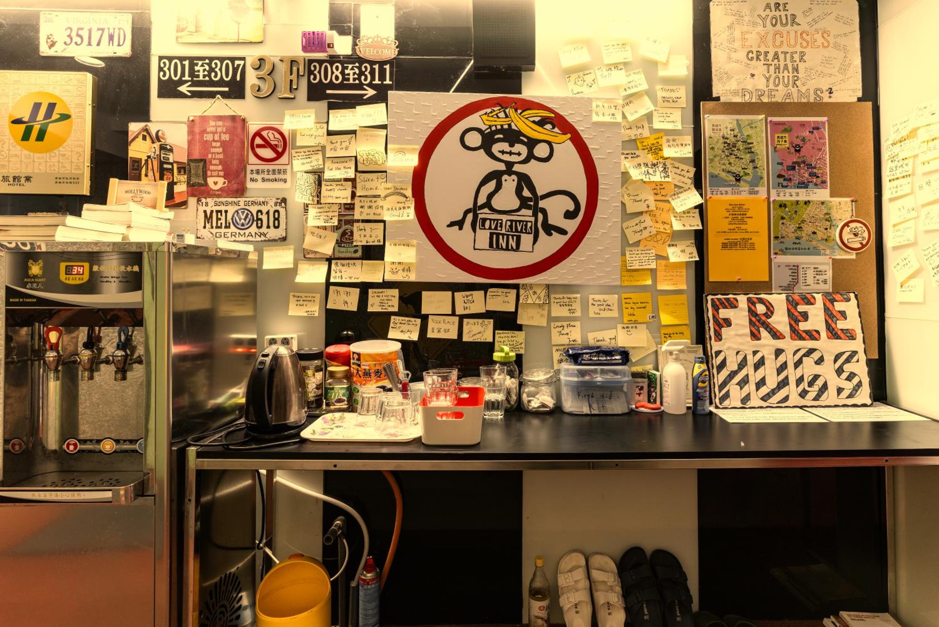 The Love River Inn is situated next to its namesake (Love River) and a peaceful part of Kaohsiung. It has self check-in so you do not need to feel pressured to arrive within a certain time of day just in case plans change. There is also a pantry in the common area outside the rooms for access to hot water, etc. There are two 24-hour laundromats right beside the concierge at the ground floor, so you do not need to worry about having access to laundry services.