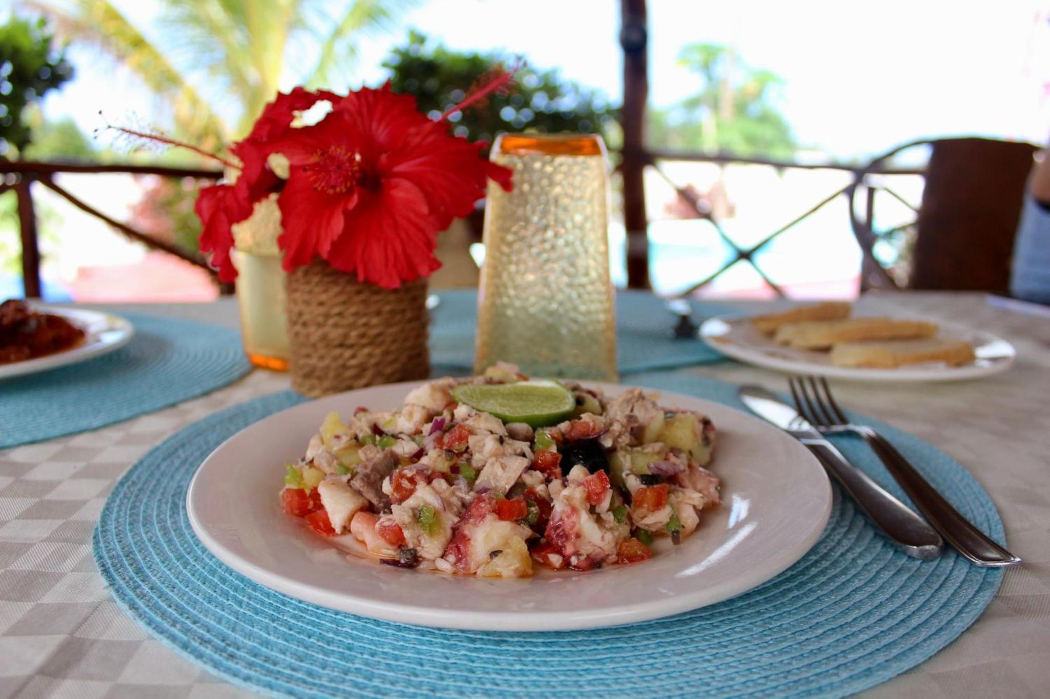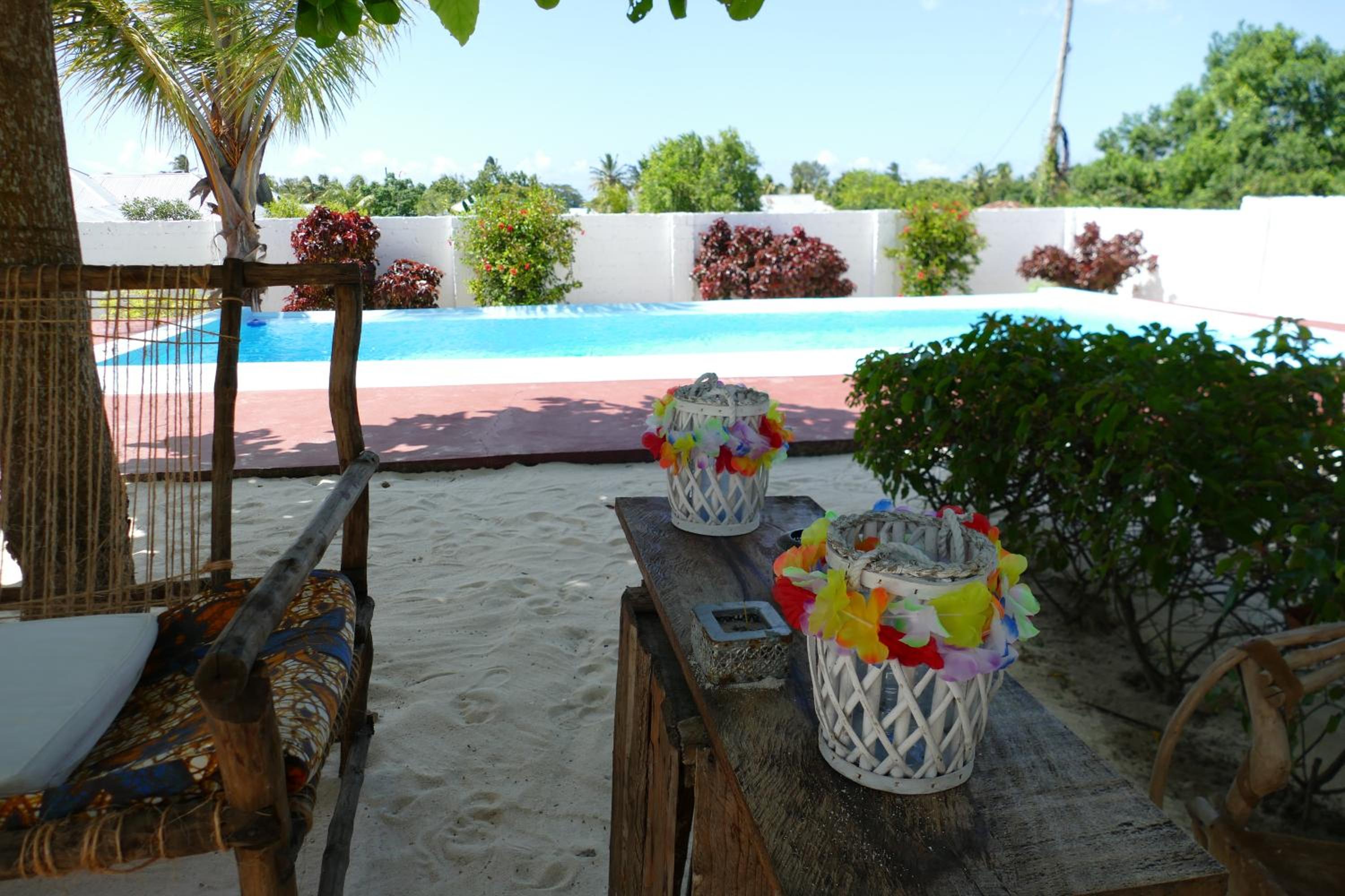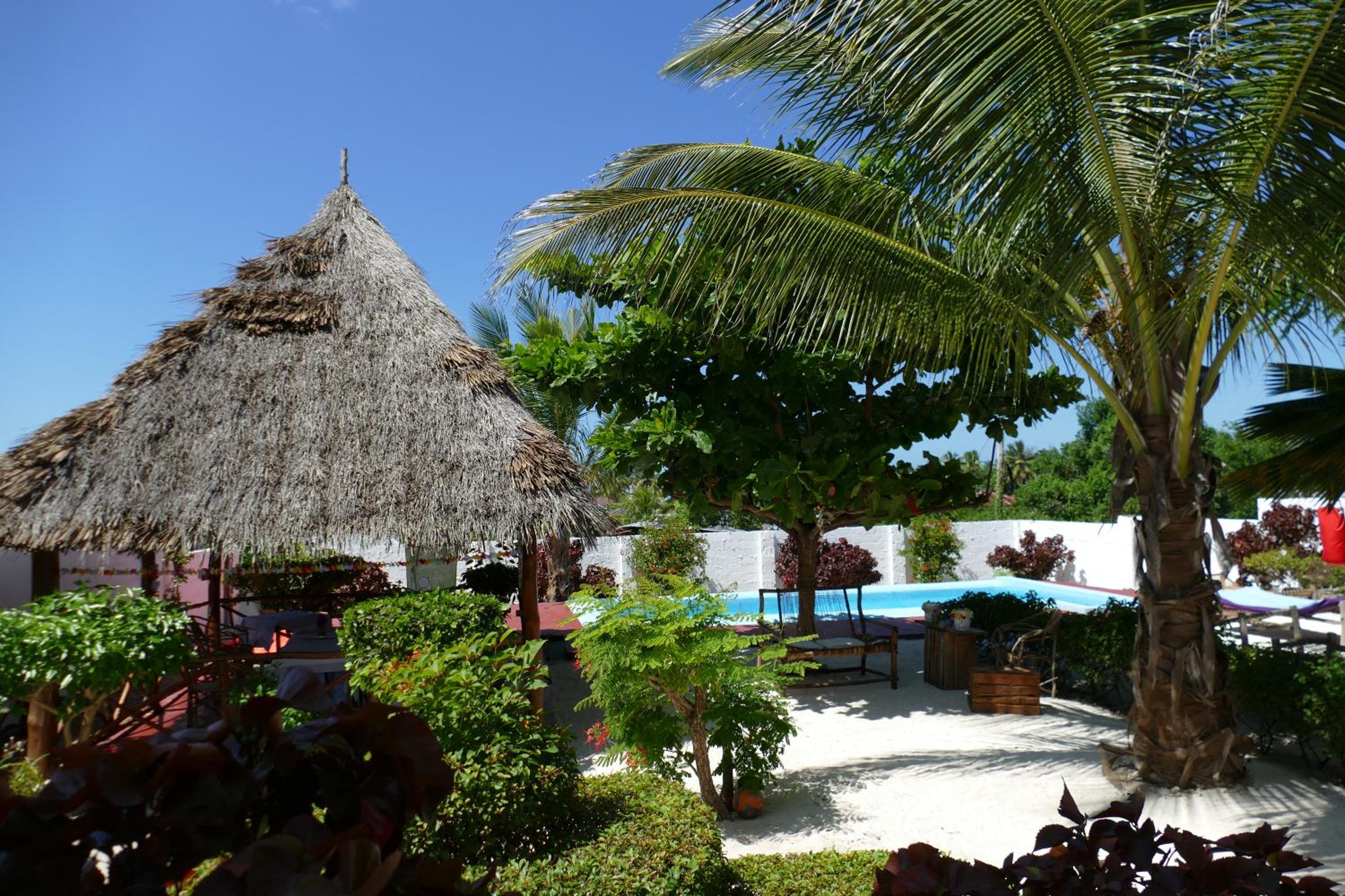 Le petit-déjeuner inclus est composé de fruits frais et de jus de fruits pressé maison, accompagné selon les jours : de chapatis (crêpes locales), beignets, pain grillés ou omelette. Pour les autres repas, il y a la possibilité de passer commande via un menu (exemple : spaghettis à la sauce tomate pour 8€, assiette de frites maison à 3€). 2 petits supermarchés sont disponibles dès la droite sur la route principale (environ 15/20 min à pieds) + restaurant pizzeria (accès à la piscine possible également pour 10 Dollars/personne et avec un bar). Nous avons séjourné là-bas début décembre pour 2 semaines et nous avons eu la chance d'avoir la Villa pour nous seuls! La piscine est sympa et l'endroit est calme. Assez rustique, ne vous attendez pas au confort des grands hôtels. Emplacement : la villa est placée au cœur du village d'Uroa (env 45 en voiture de Nungwi). Pour la plage il faut traverser la route principale et continuer dans le village (moins de 2 min). Ne vous attendez pas à l'eau cristalline que l'on voit partout sur internet : beaucoup d'algues dans l'eau et sur le sable + marée basse la plupart du temps (plus belles plages sont au Nord). Cela reste agréable malgré tout : très très peu de monde début décembre. Nous avons pu organiser des excusions à d'Abrahama (Otello) : visite dauphins près de Mnemba + snorkeling en mer + Banc de sable (fruits frais servis là-bas) + retour à la plage avec repas (fruits de mer/frites) pour 150 Dollars US (2 adultes + 2 enfants) - transferts inclus. Cela reste un bel endroit pour souffler au calme peu de jours avant de visiter d'autres spots. 2 mosquée sont présentes c'est super! (env 5 min à pieds) avec appel à la prière qui retentit dans le village.