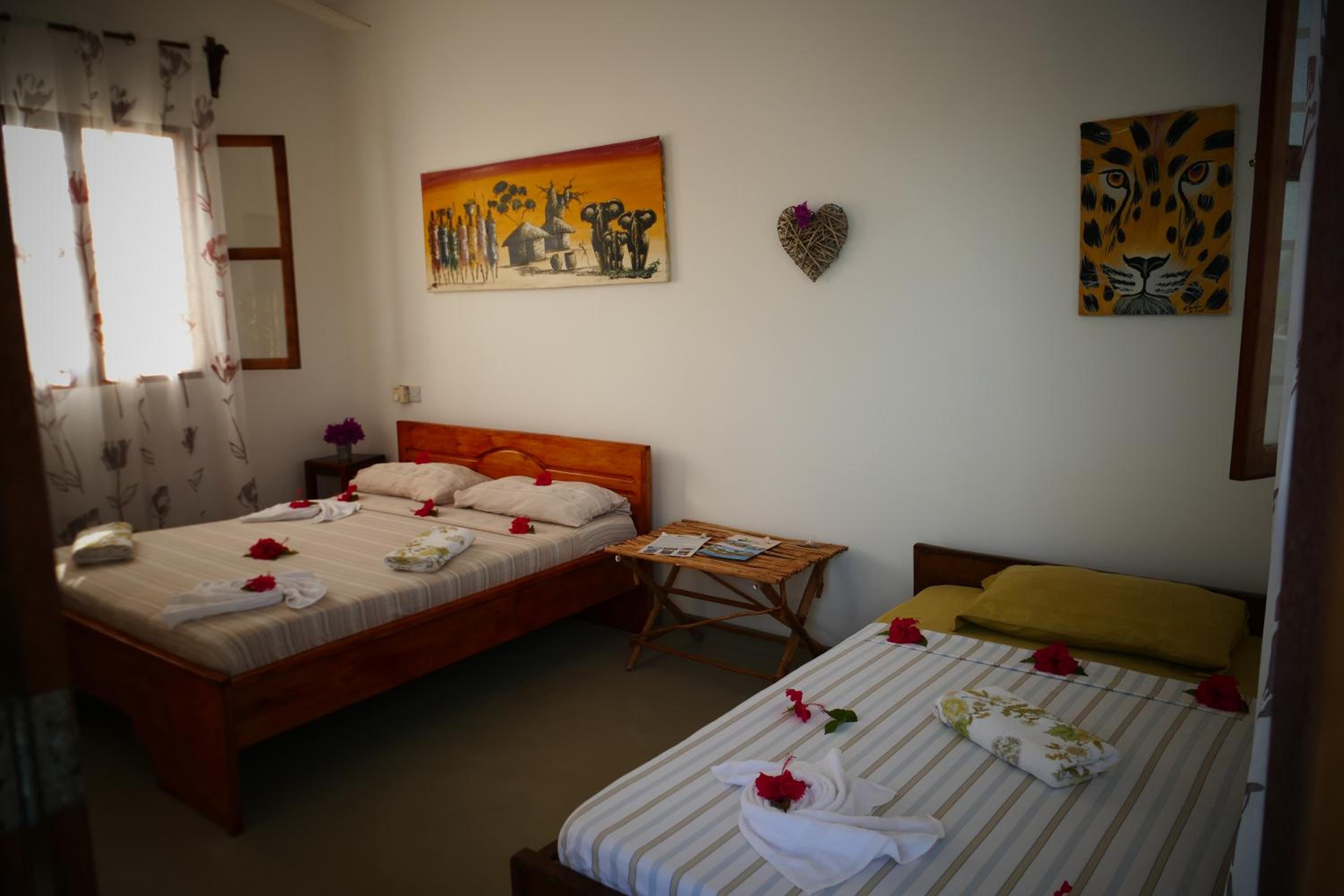 Dommage que le menu à la Villa ne propose pas de repas locaux (principalement des pâtes et frites). Les prix varient entre 8 et 13€ max - paiement en Euros uniquement (pas de change). La bouteille d'eau de 1,5L est facturée 1,50€ alors qu'il est possible d'en acheter directement au village (moins d'une minute à pieds) pour 1.000 Shilling Tanzanien. La piscine n'est pas totalement propre. La robinetterie aurait besoin d'un bon rafraîchissement (à notre arrivée un soucis d'électricité statique ressenti sur le pommeau de douche et le robinet - un technicien est venu régler le problème). Pour ceux qui recherchent un endroit avec pas mal d'activités à faire : oubliez ! L'endroit est très calme et toutes activités nécessitera d'aller ailleurs. Chambres familiales assez petites. Une grande antenne est présente sur à côté de la villa (non visible sur les photos du site).
