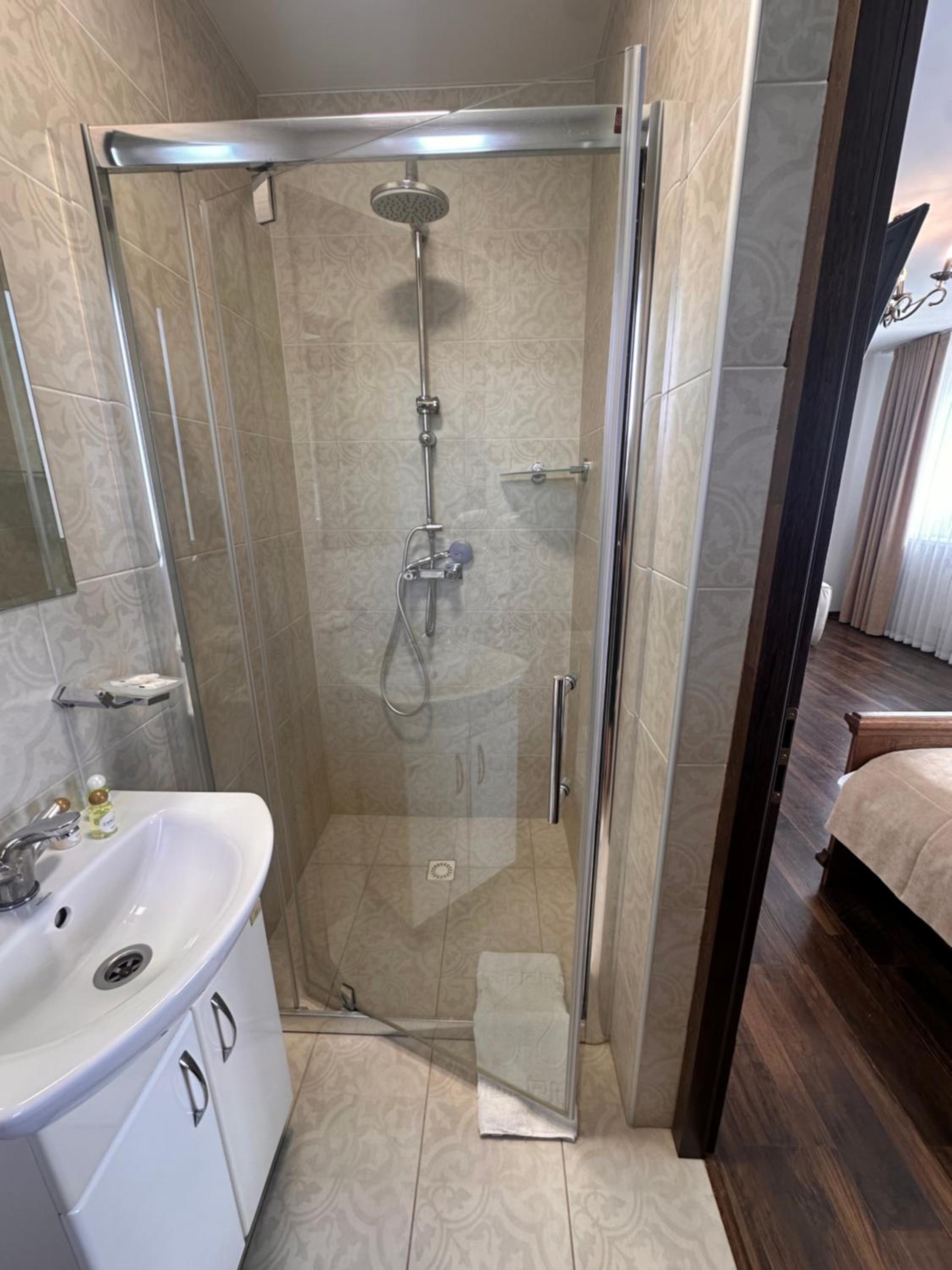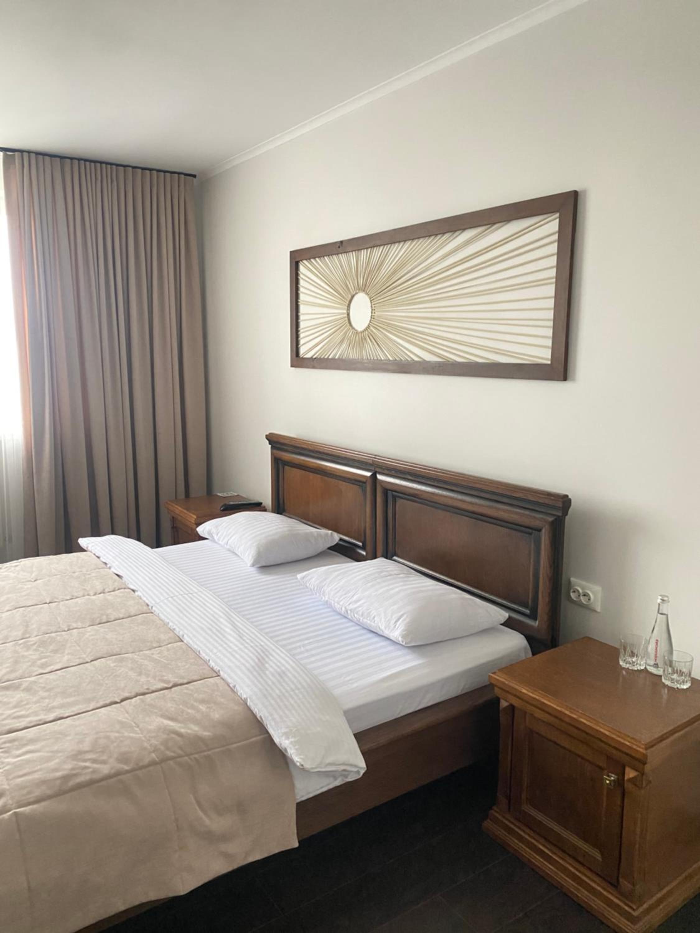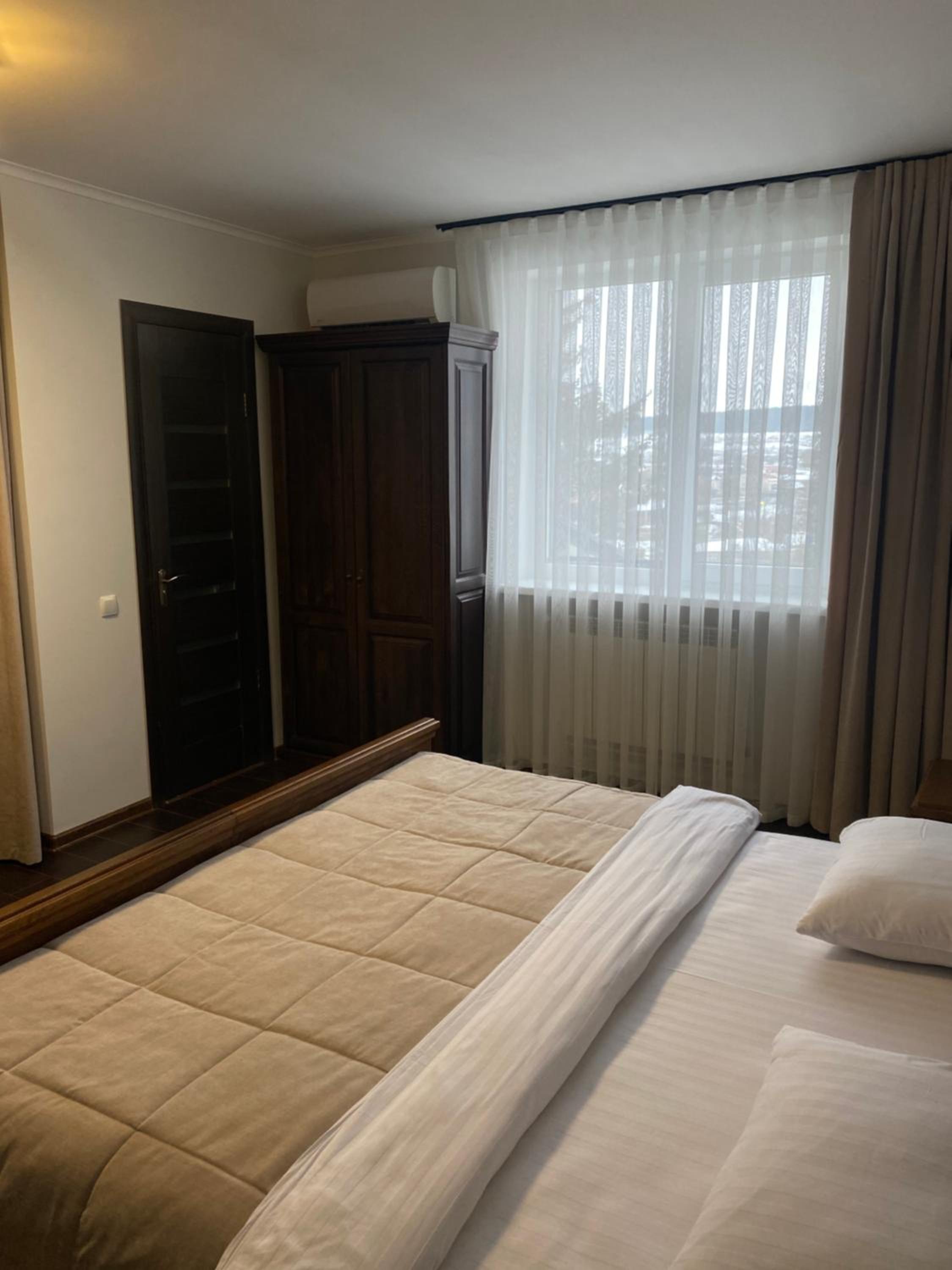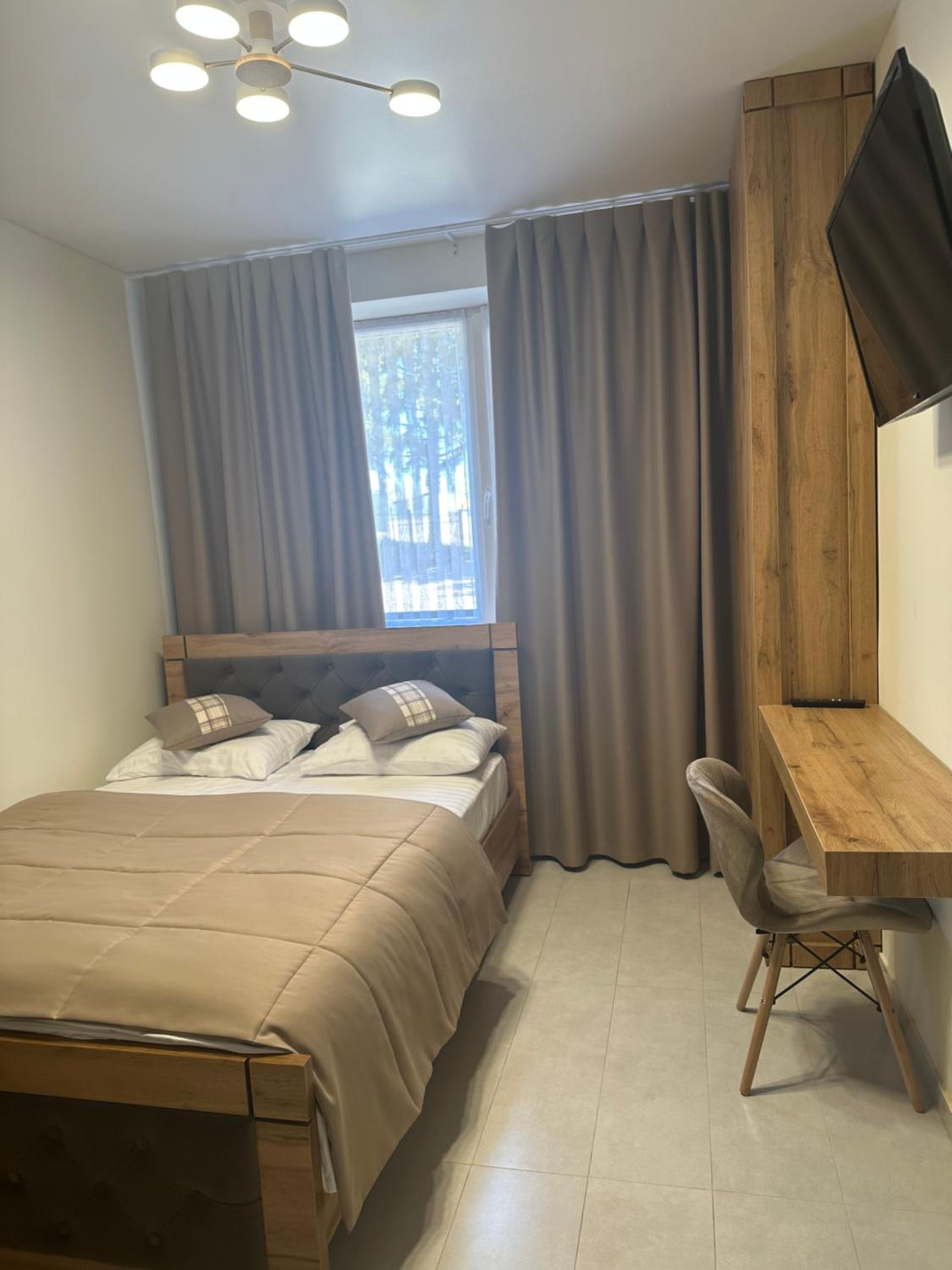 Дуже зручне розташування отелю, тихе місце. Зупинились в двомісному номері з 2 односпальними ліжками. Номер маленький, але для однієї транзитної ночівлі підійшов добре. Якщо зупинятись на довше, може бути не зручно в розміщенні, бо буде тісно. Краще взяти номер більший.
