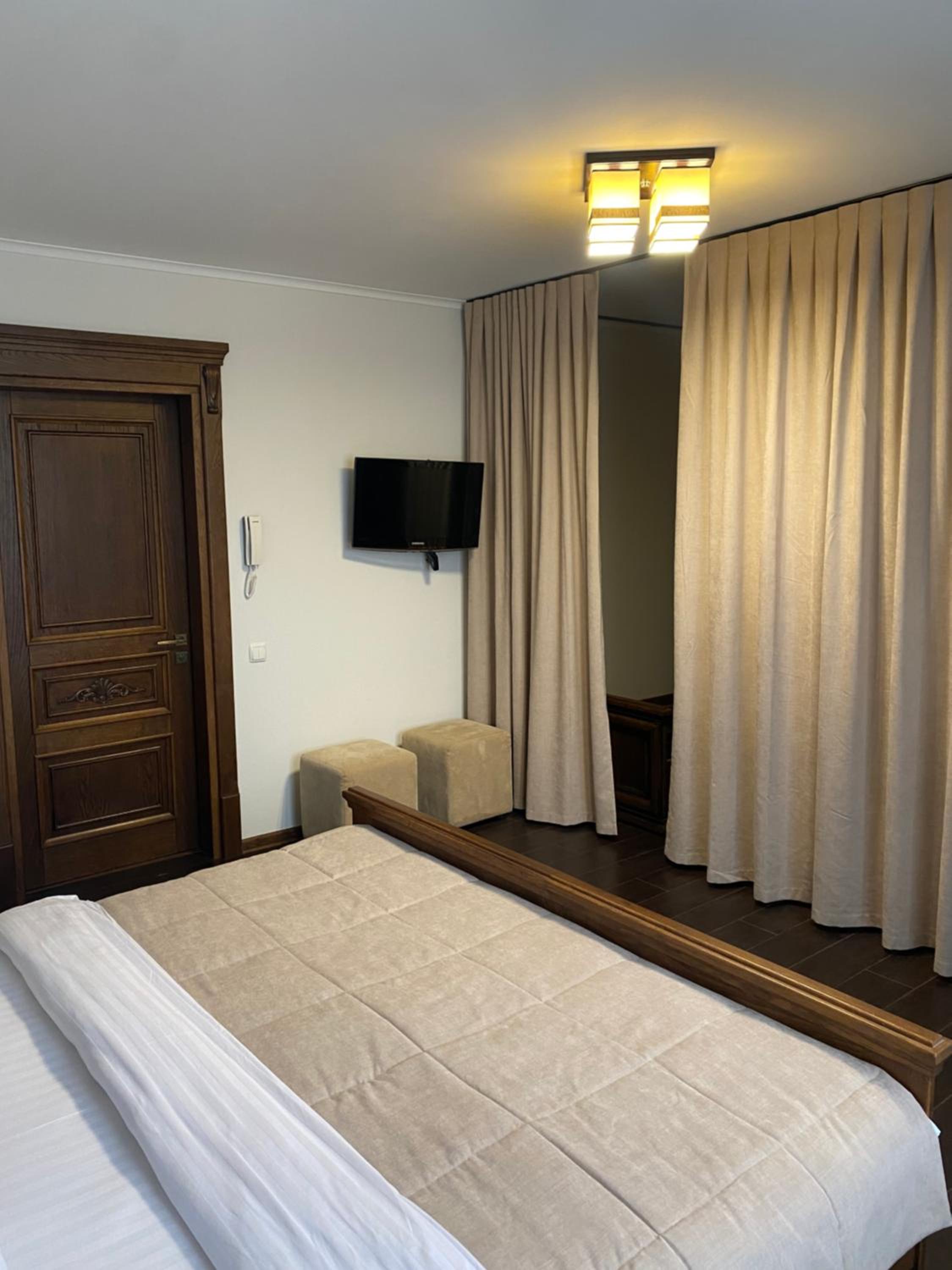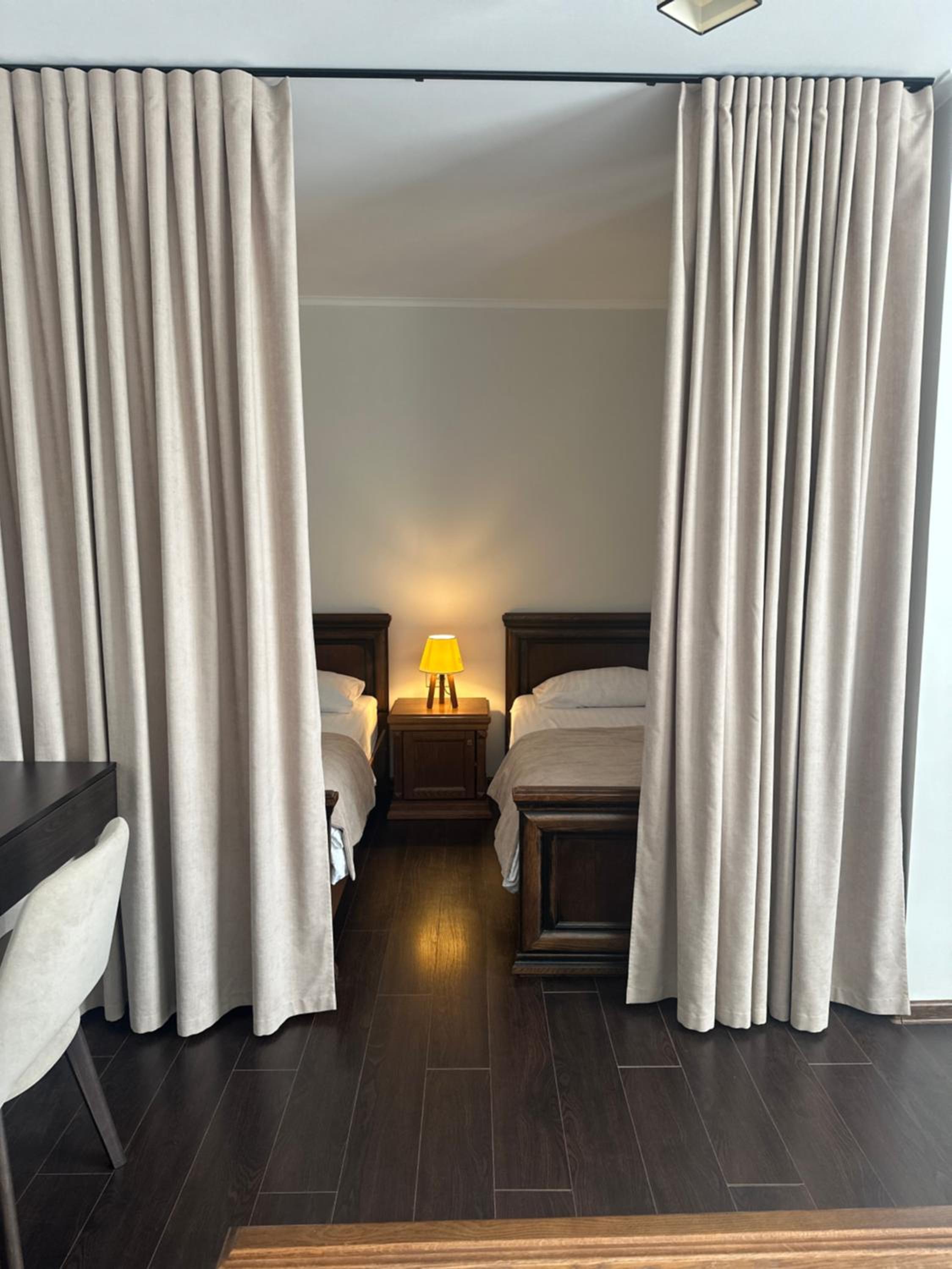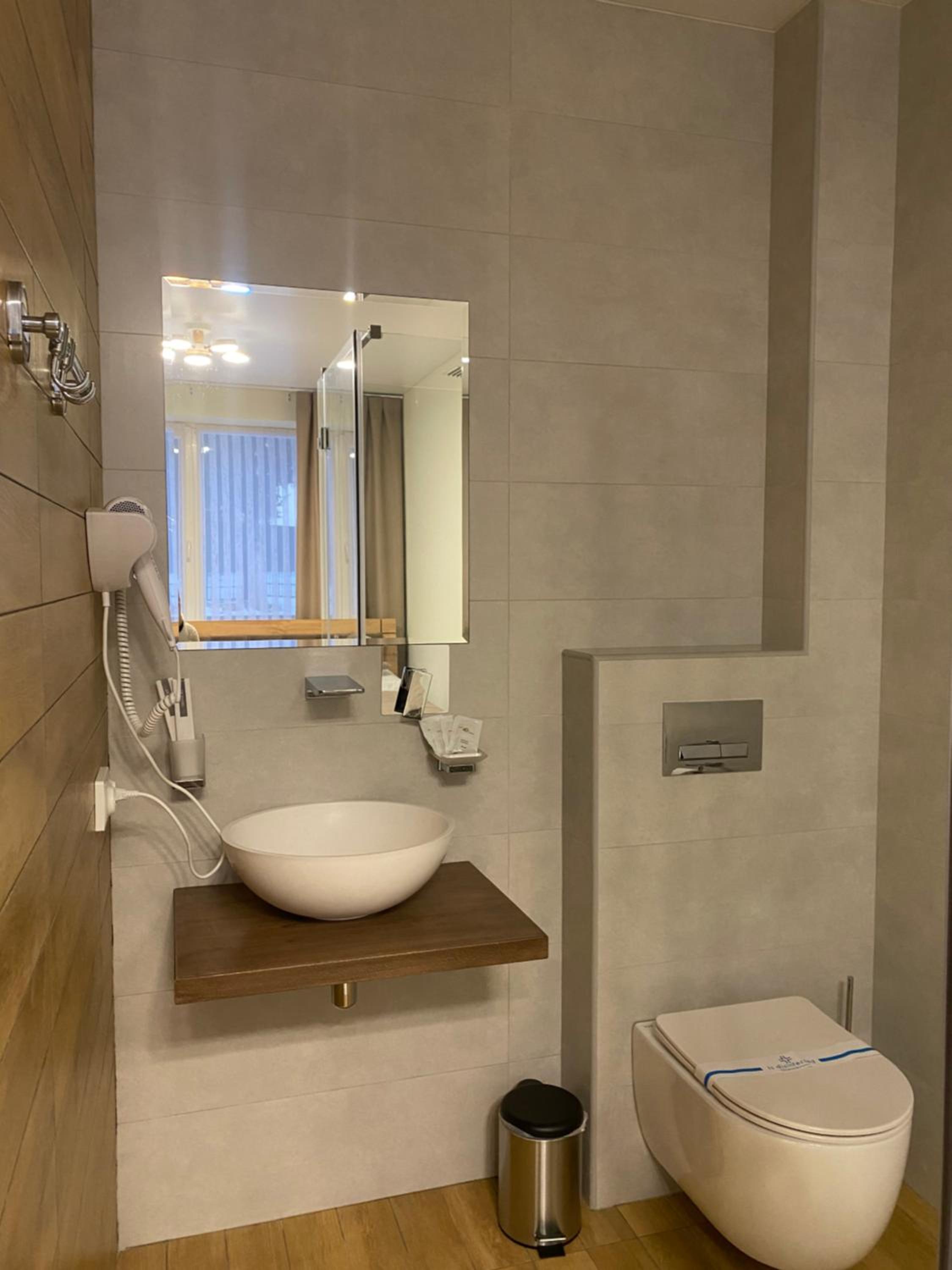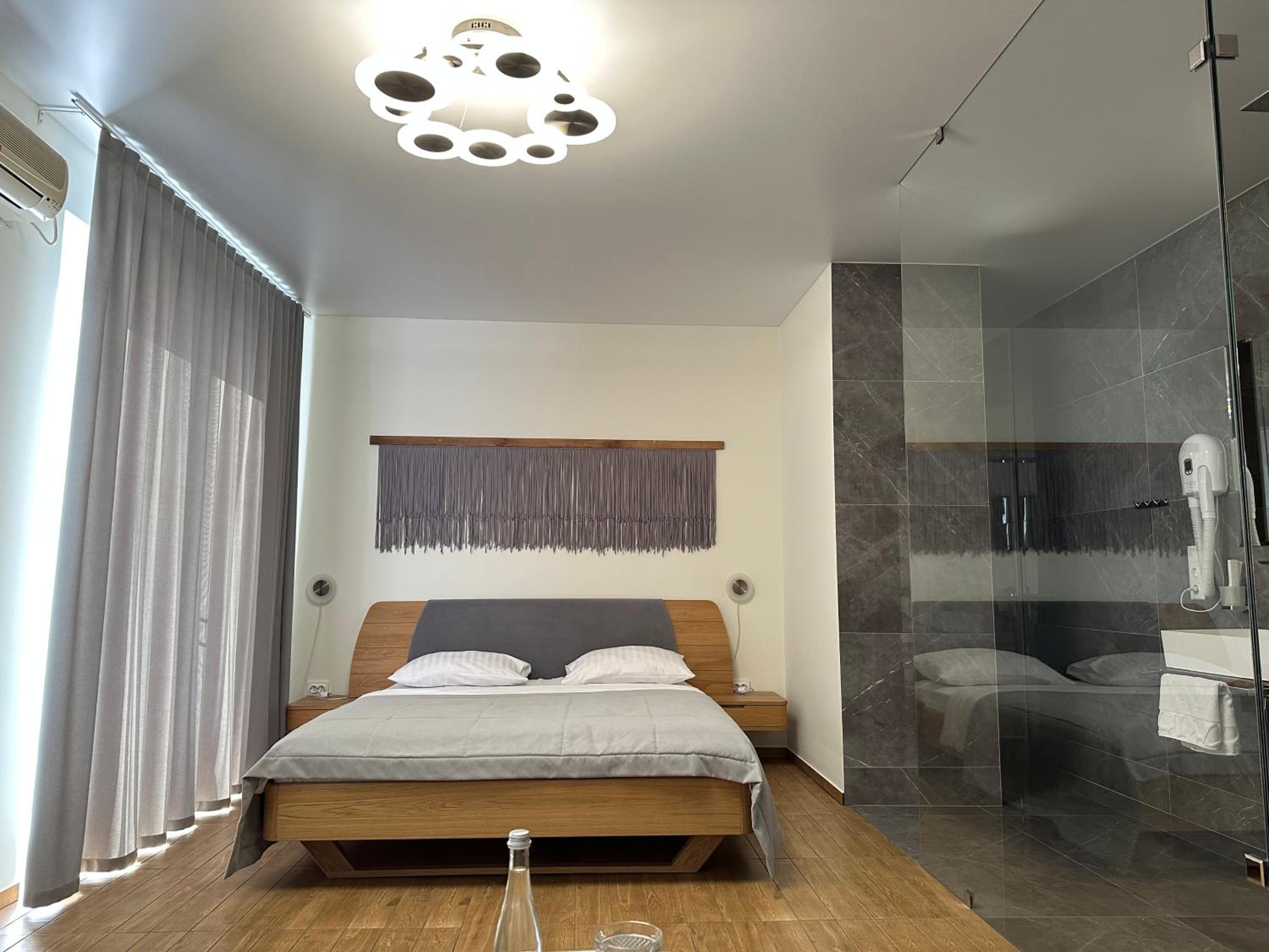 Дуже зручне розташування отелю, тихе місце. Зупинились в двомісному номері з 2 односпальними ліжками. Номер маленький, але для однієї транзитної ночівлі підійшов добре. Якщо зупинятись на довше, може бути не зручно в розміщенні, бо буде тісно. Краще взяти номер більший.