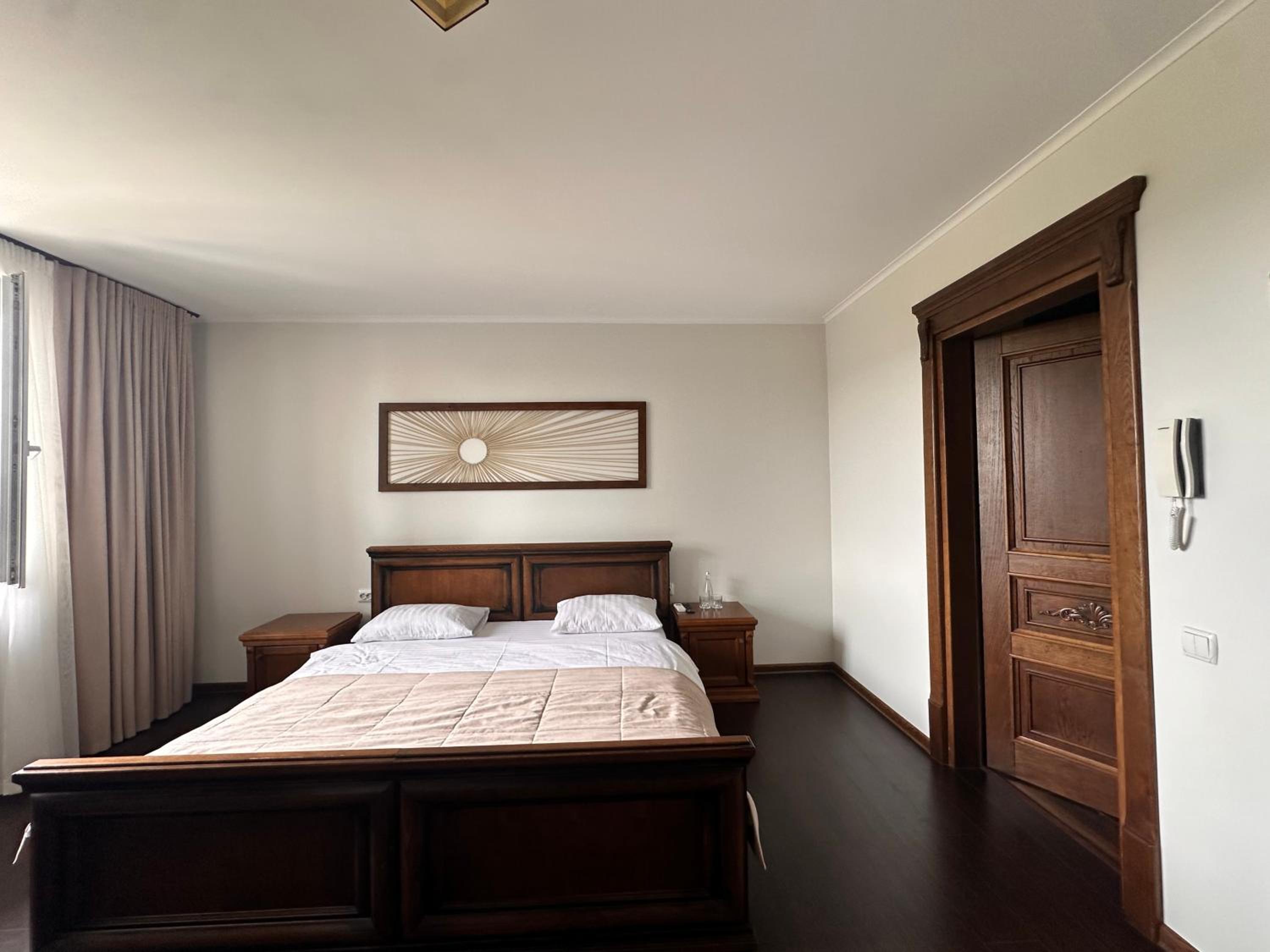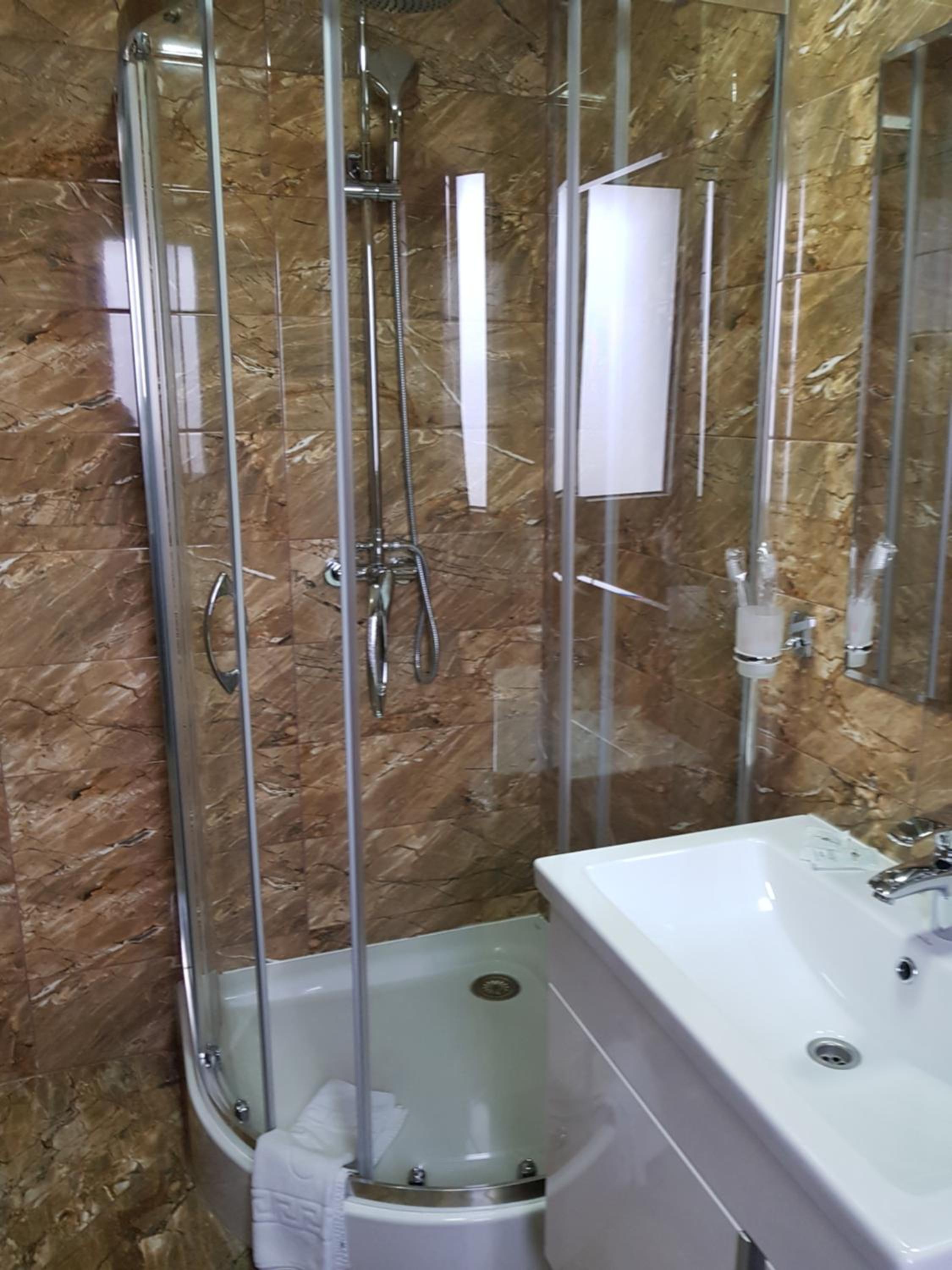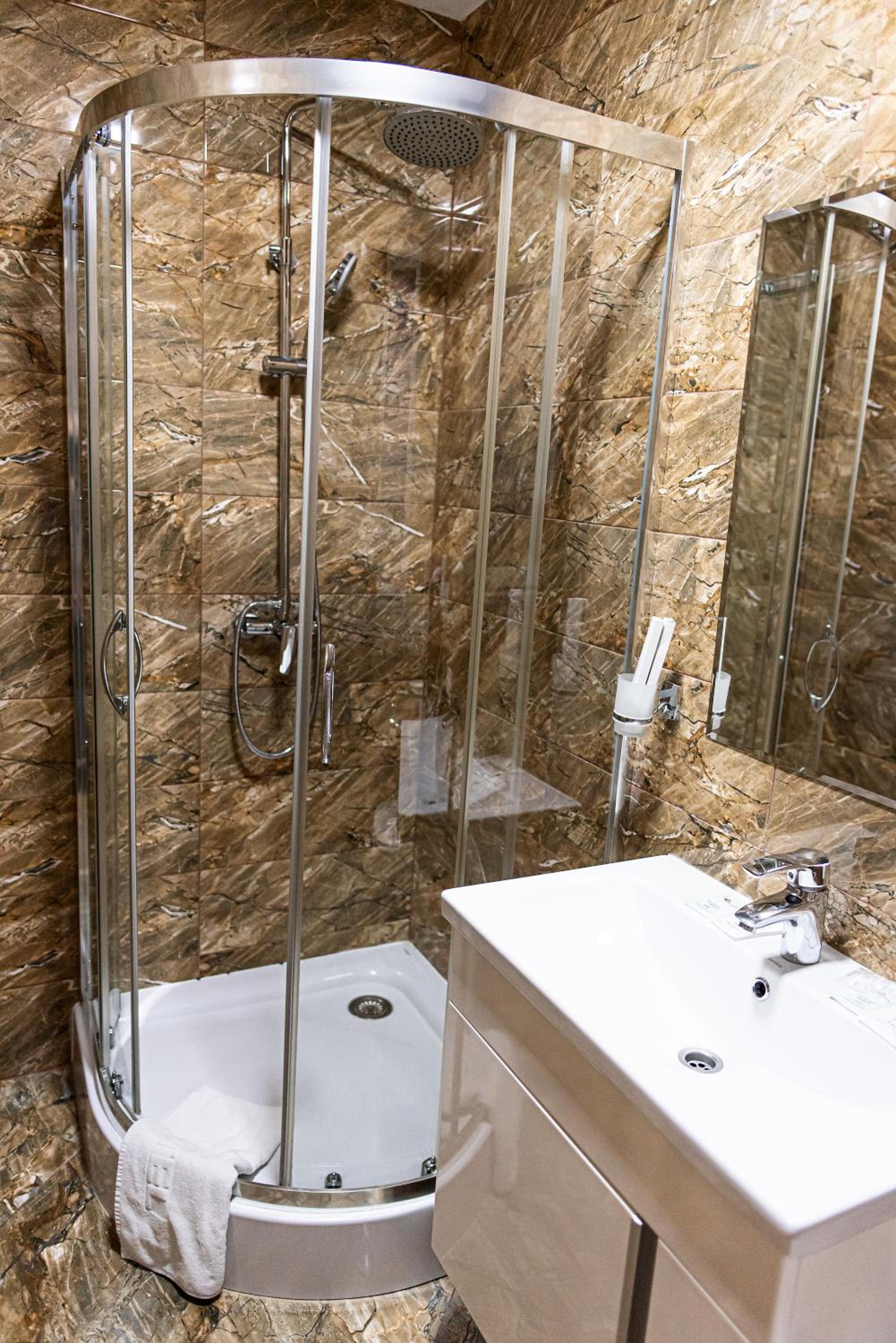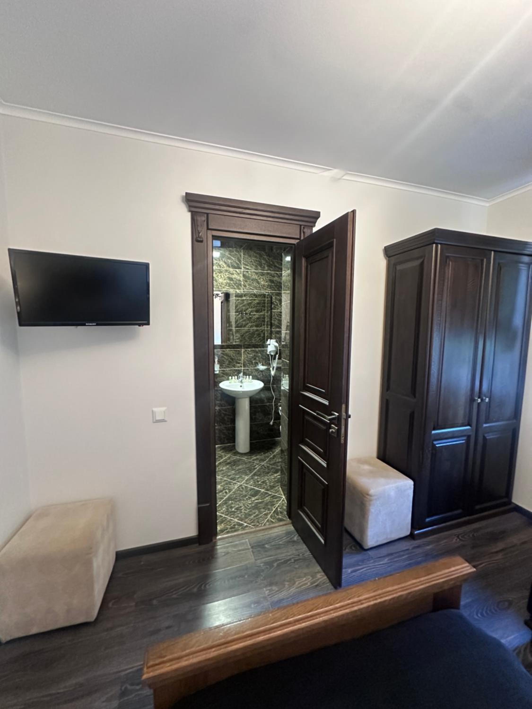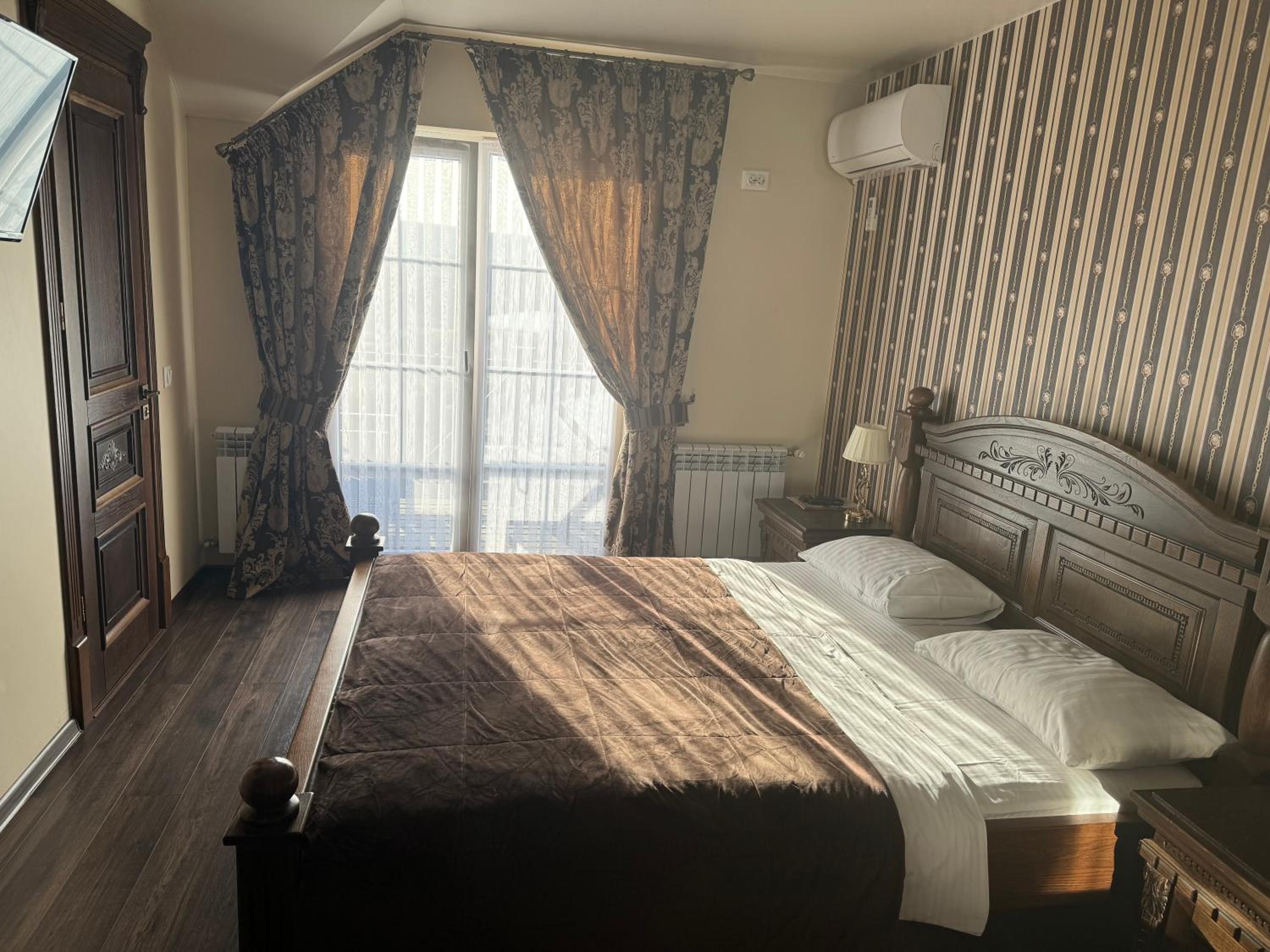 Дуже зручне розташування отелю, тихе місце. Зупинились в двомісному номері з 2 односпальними ліжками. Номер маленький, але для однієї транзитної ночівлі підійшов добре. Якщо зупинятись на довше, може бути не зручно в розміщенні, бо буде тісно. Краще взяти номер більший.