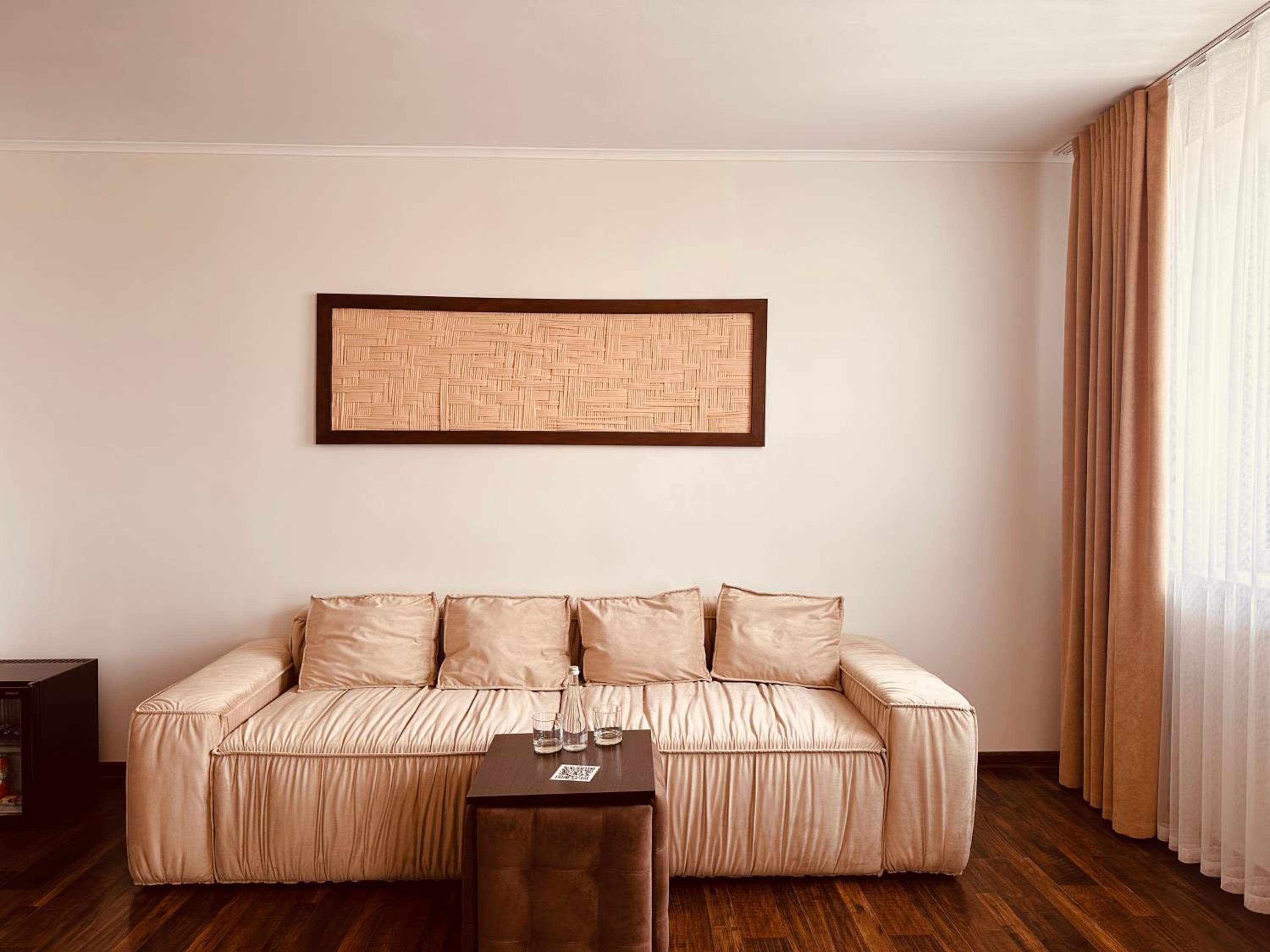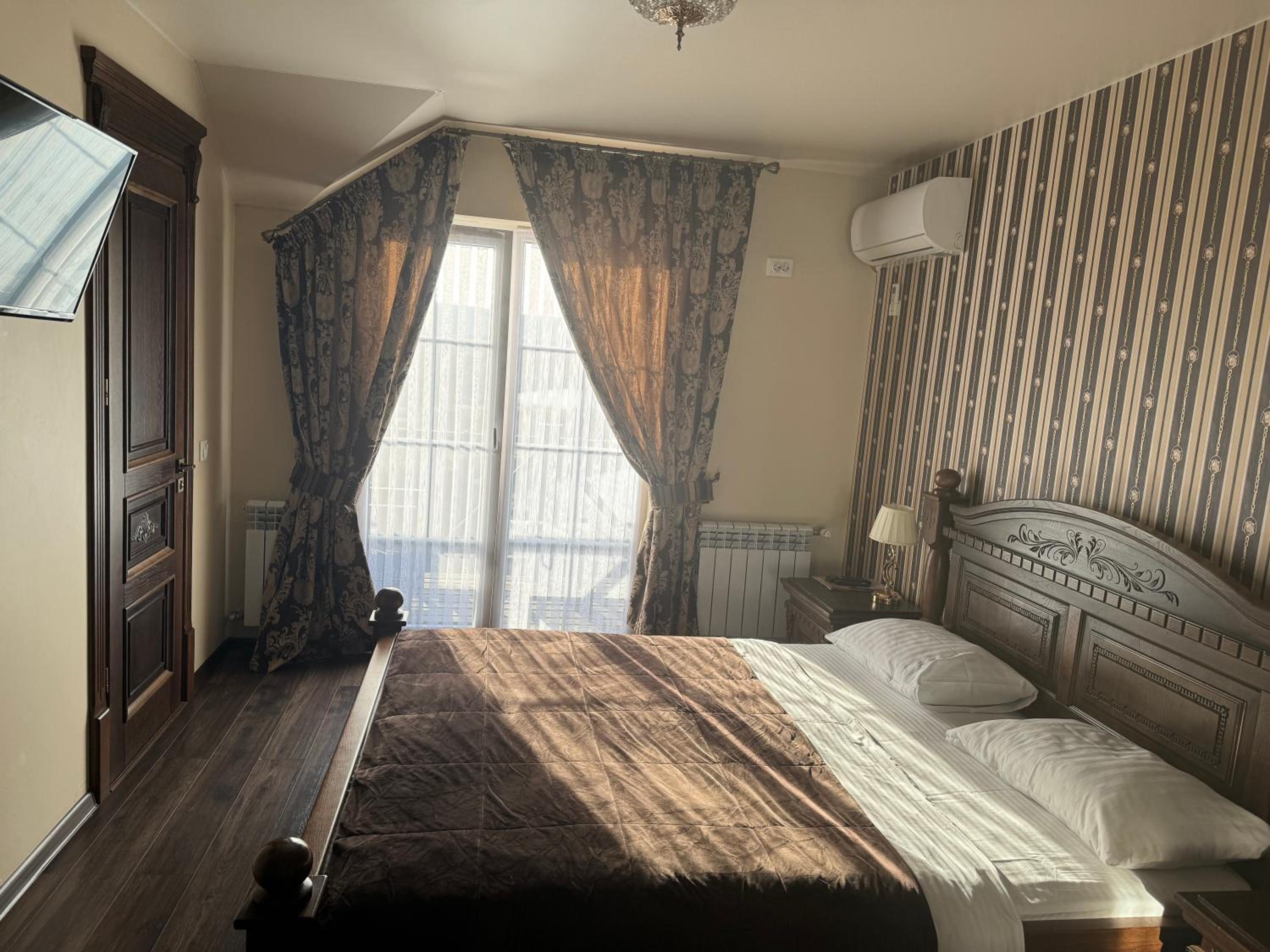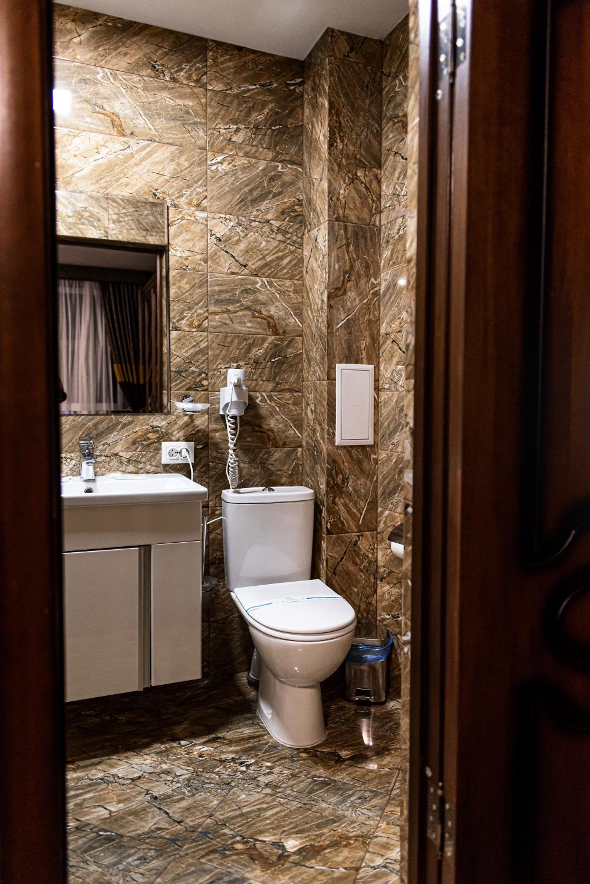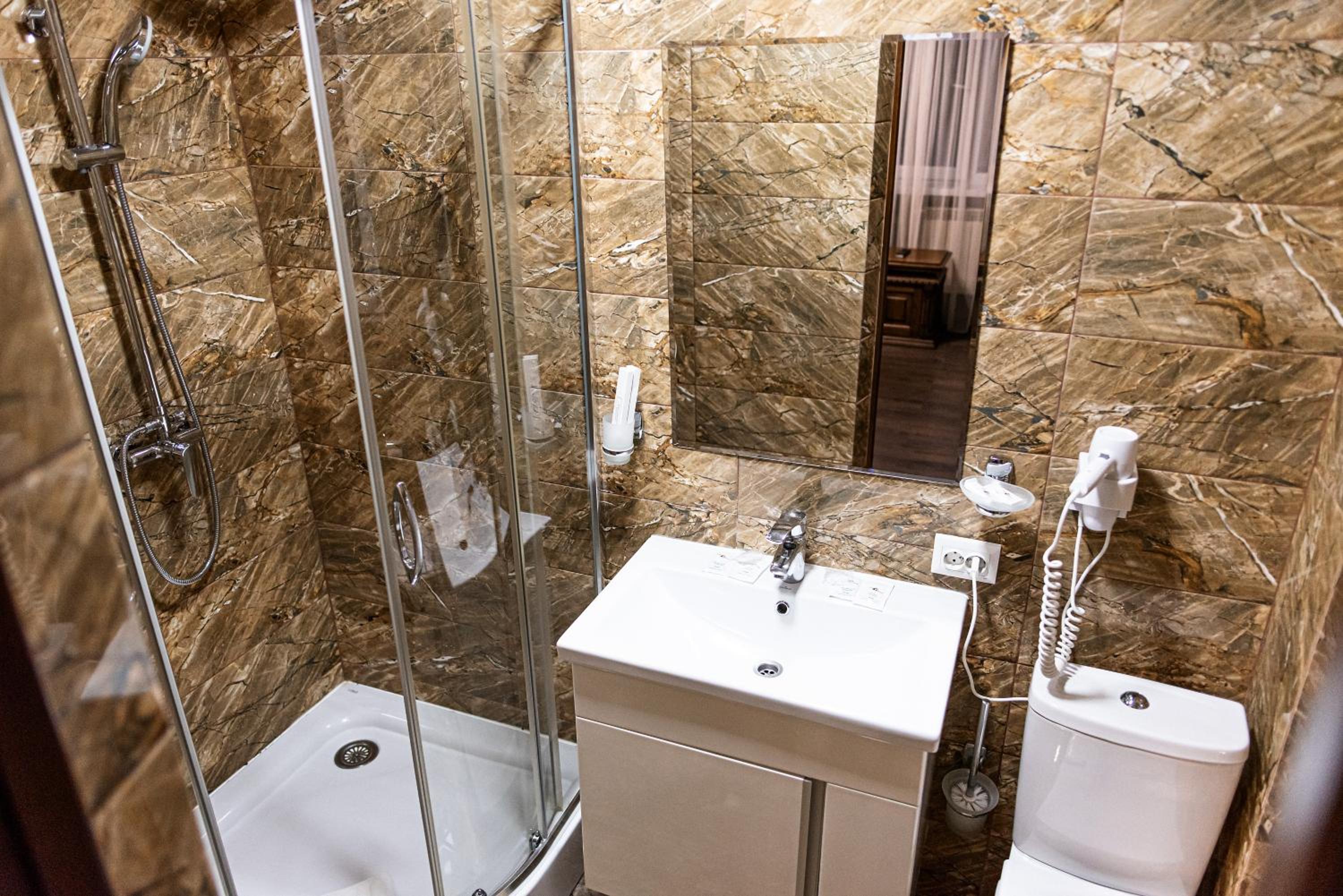 Дуже зручне розташування отелю, тихе місце. Зупинились в двомісному номері з 2 односпальними ліжками. Номер маленький, але для однієї транзитної ночівлі підійшов добре. Якщо зупинятись на довше, може бути не зручно в розміщенні, бо буде тісно. Краще взяти номер більший.