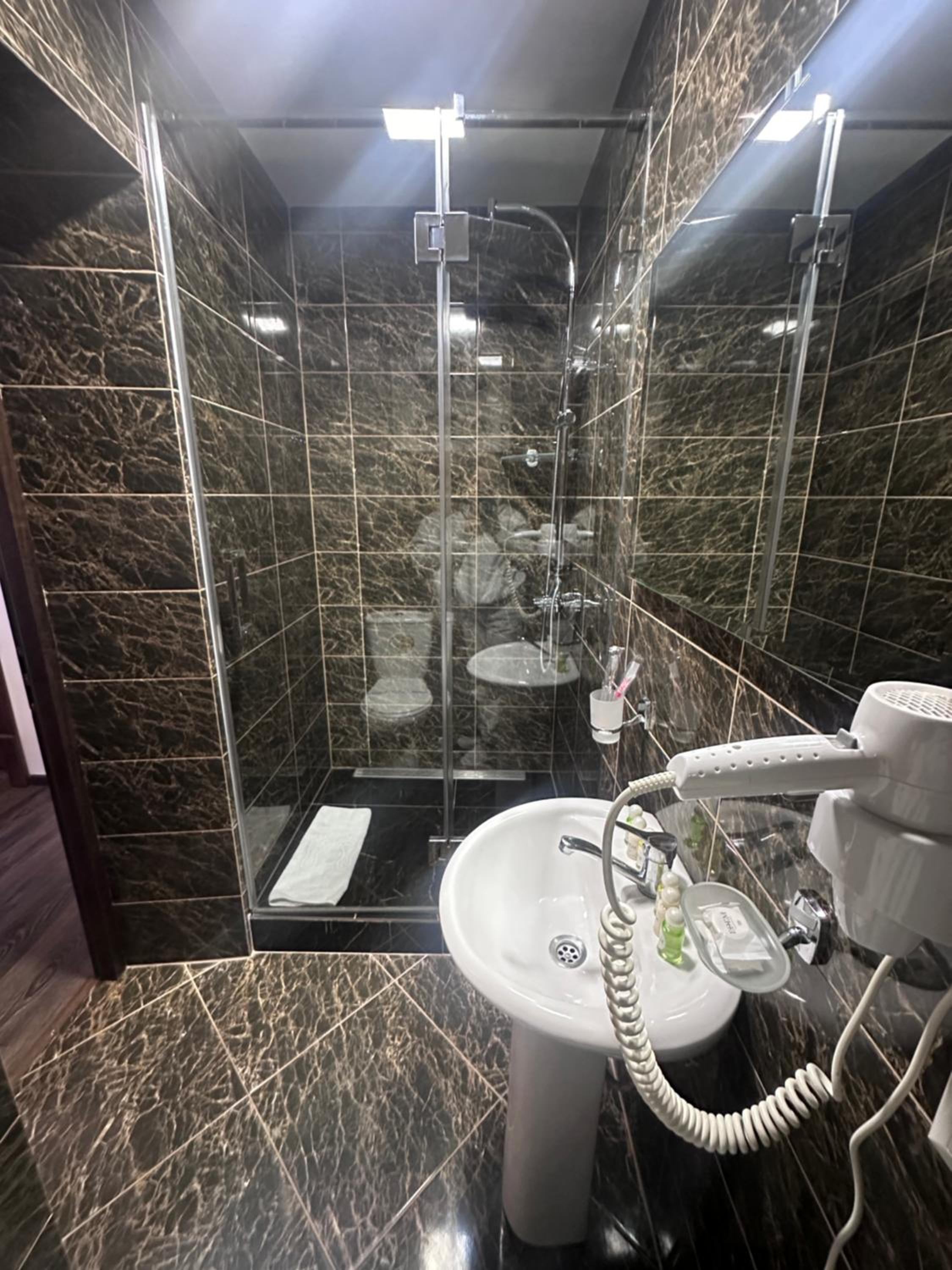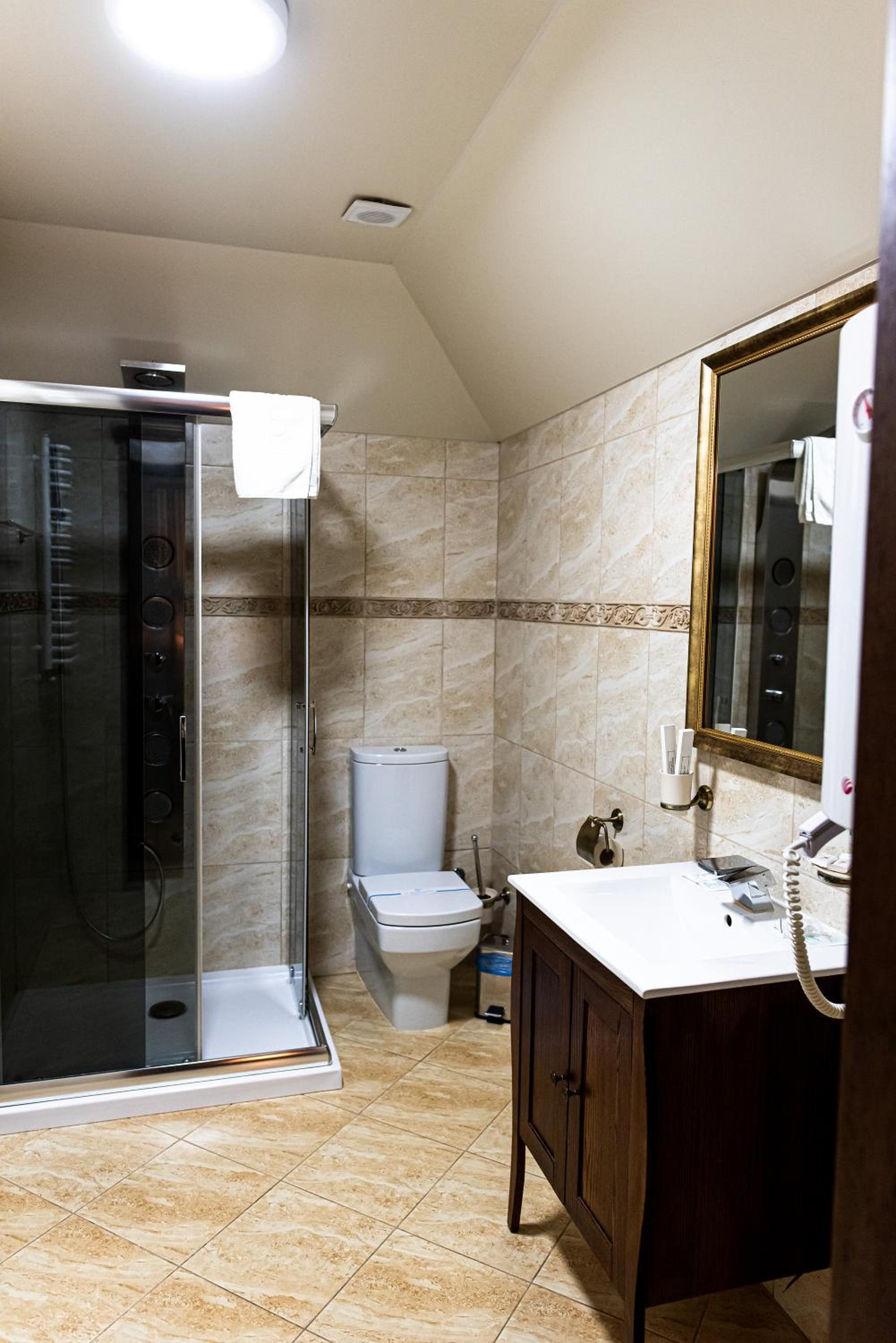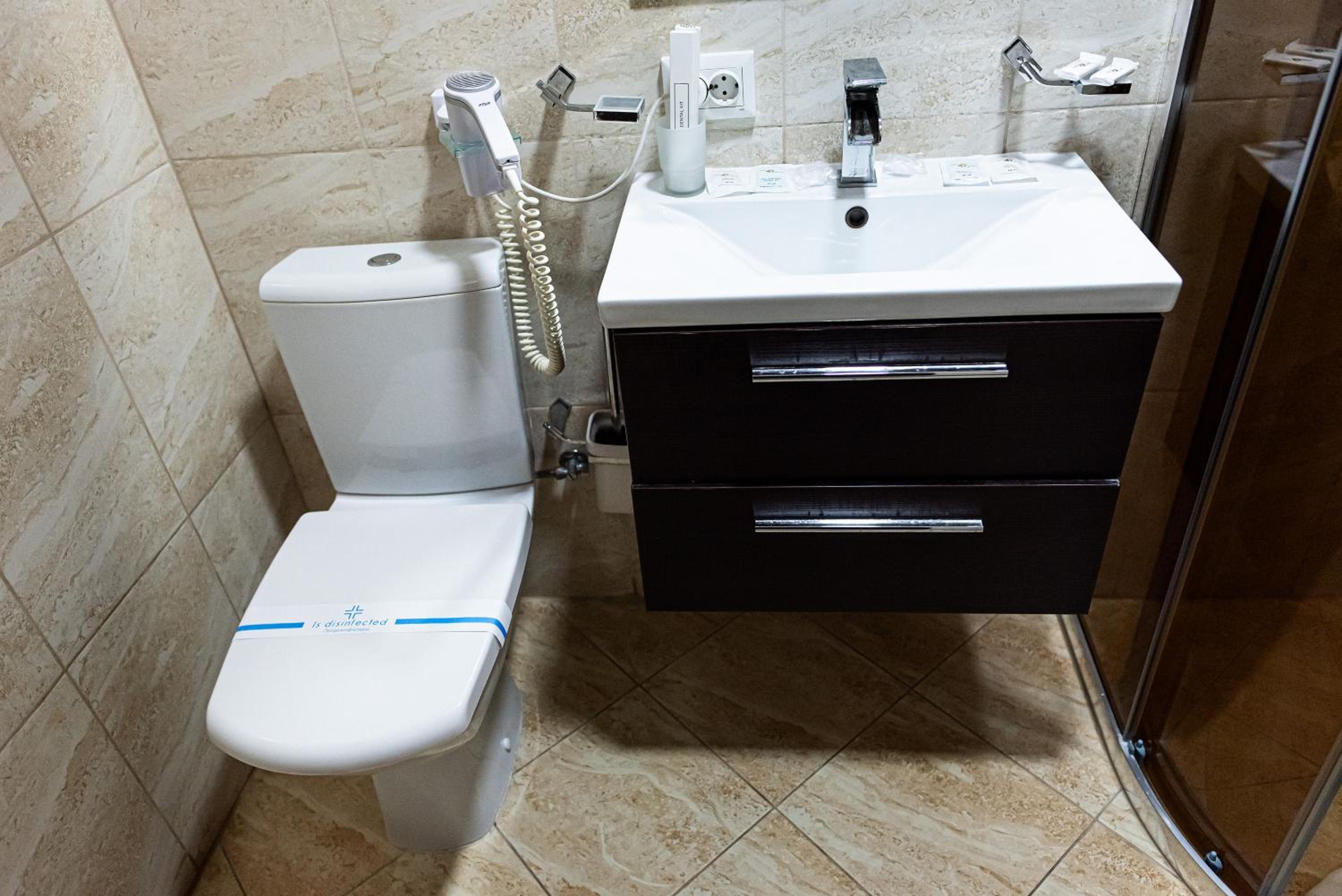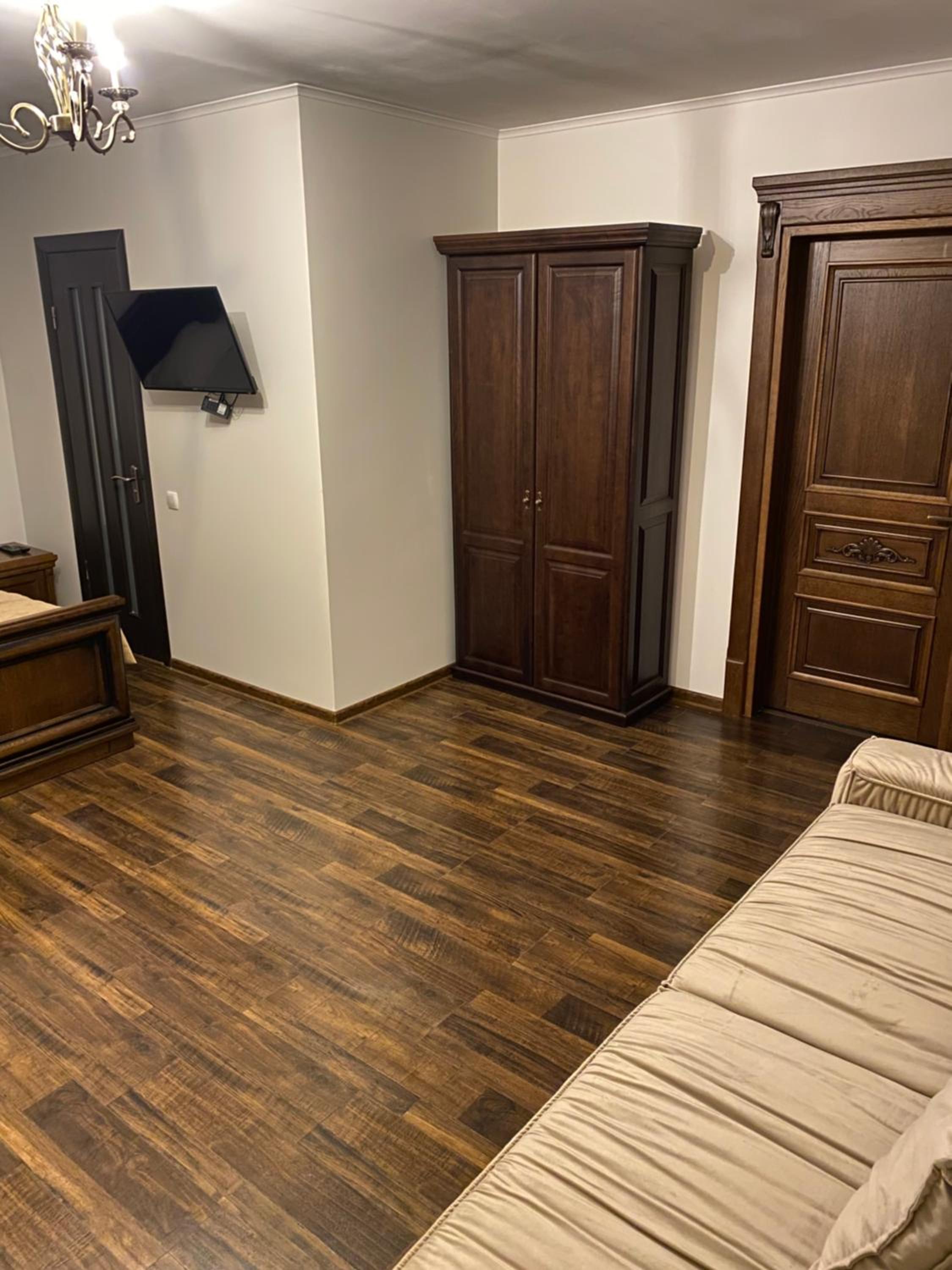 Дуже зручне розташування отелю, тихе місце. Зупинились в двомісному номері з 2 односпальними ліжками. Номер маленький, але для однієї транзитної ночівлі підійшов добре. Якщо зупинятись на довше, може бути не зручно в розміщенні, бо буде тісно. Краще взяти номер більший.