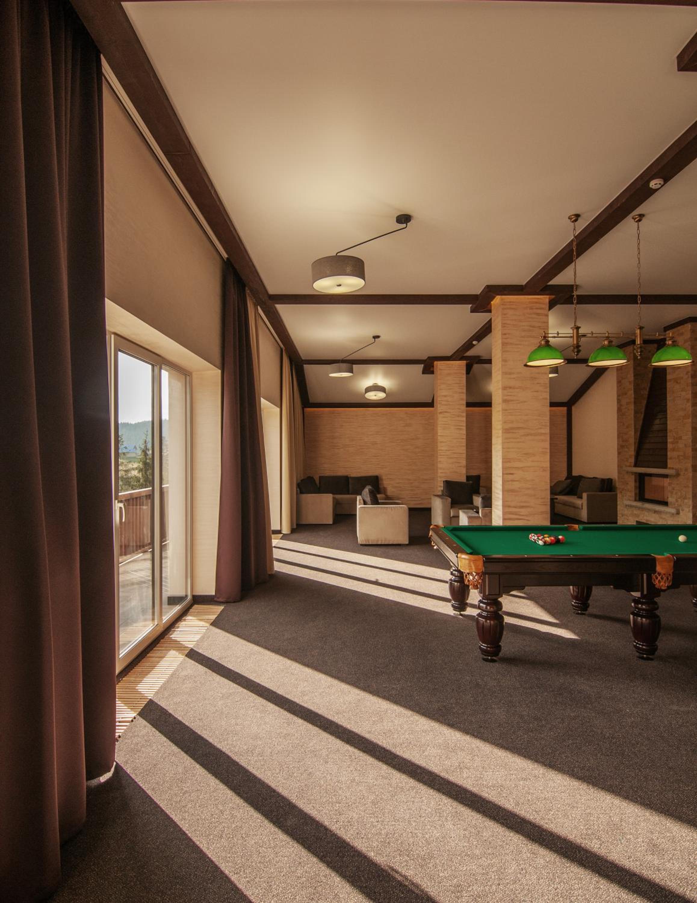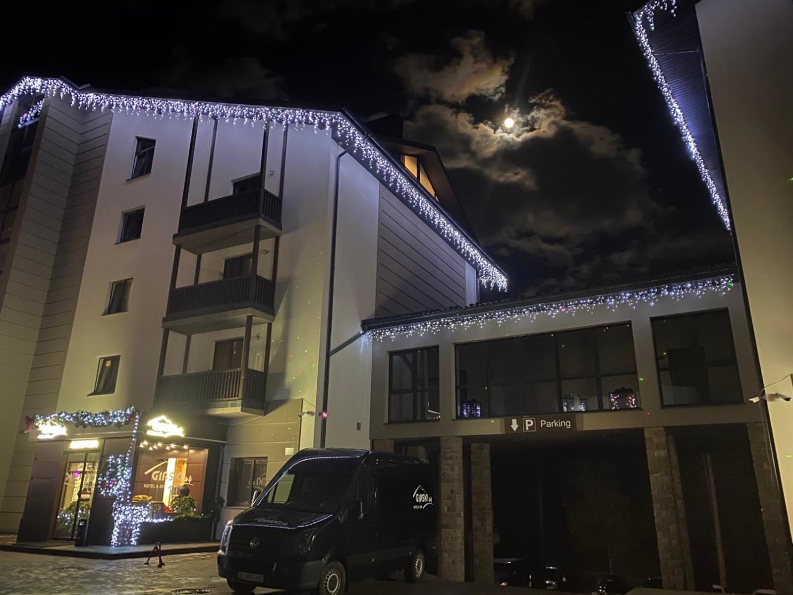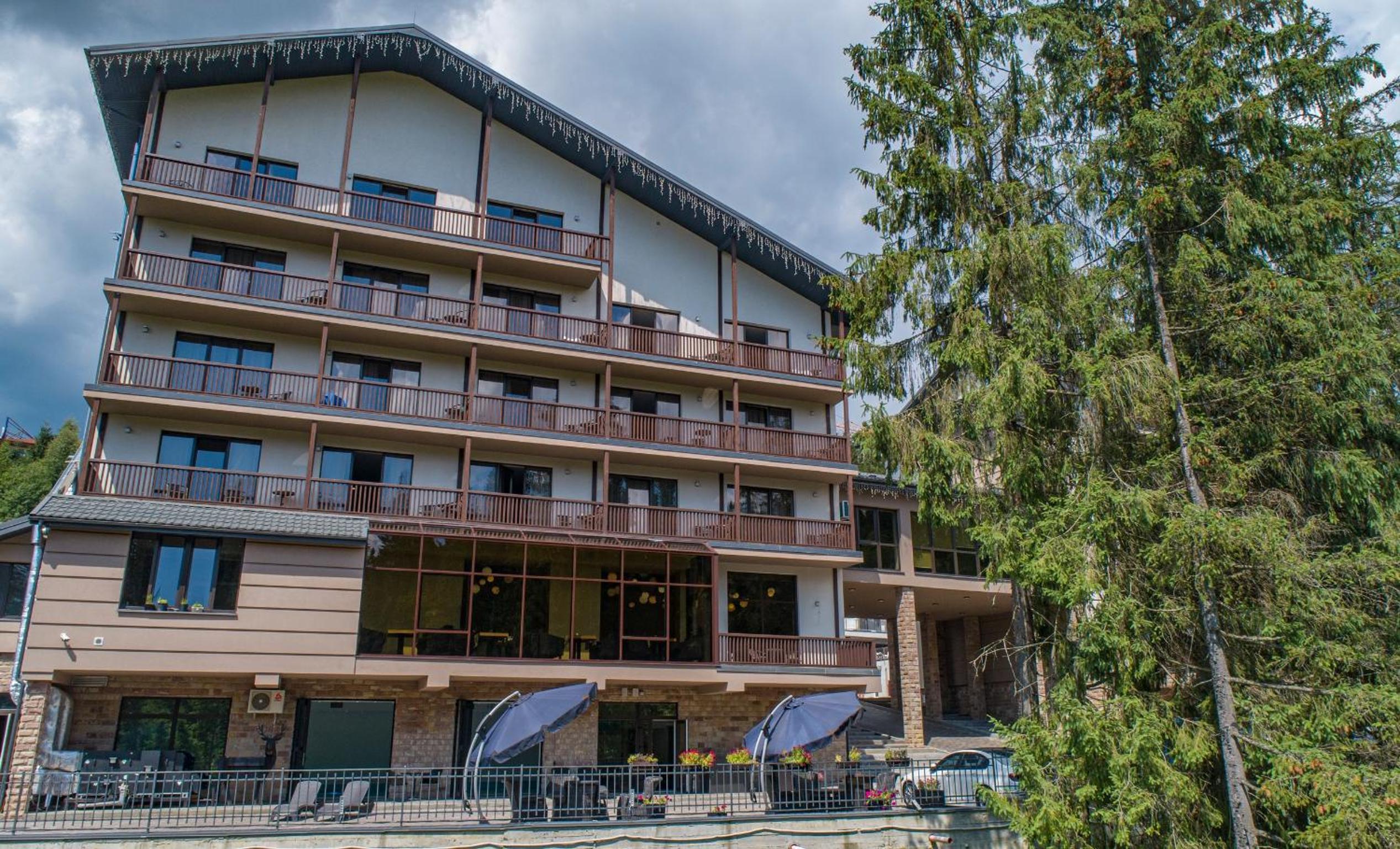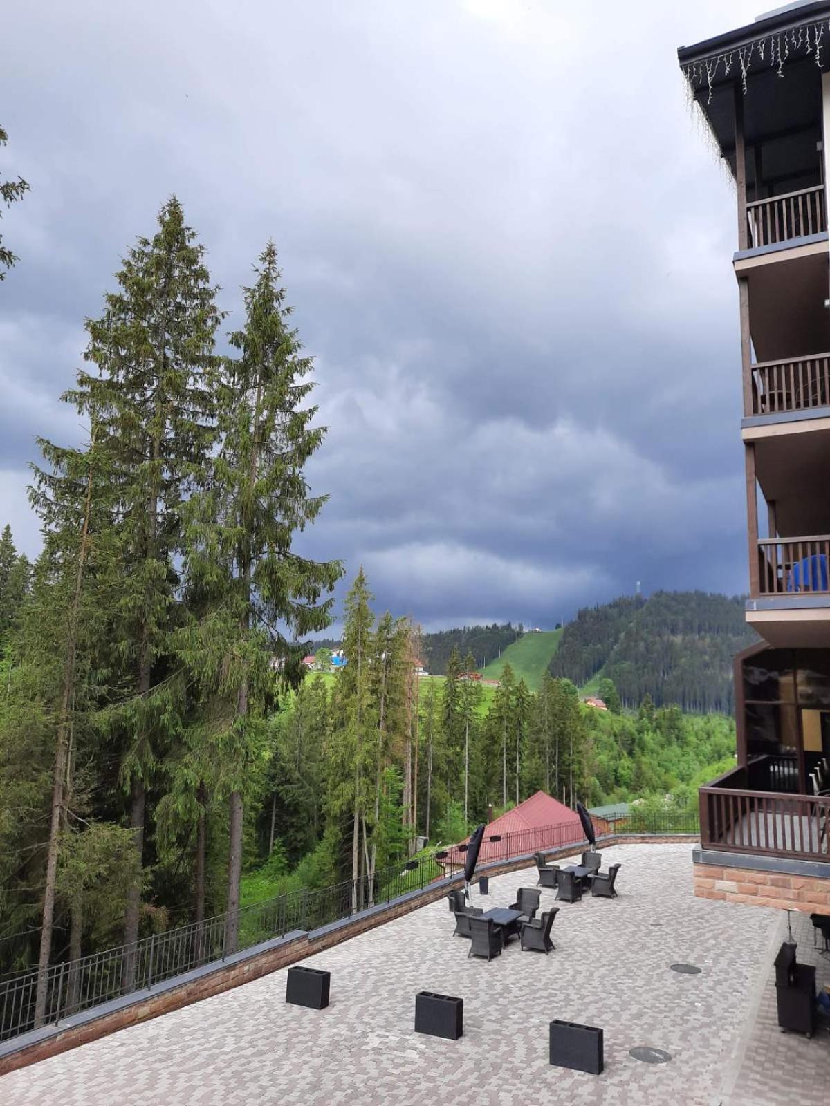 Girski Hotel&Spa in Bukovel offers elegant rooms with stunning mountain views, private balconies, and modern amenities like flat-screen TVs and plush bedding. Safety deposit boxes are provided for your peace of mind.